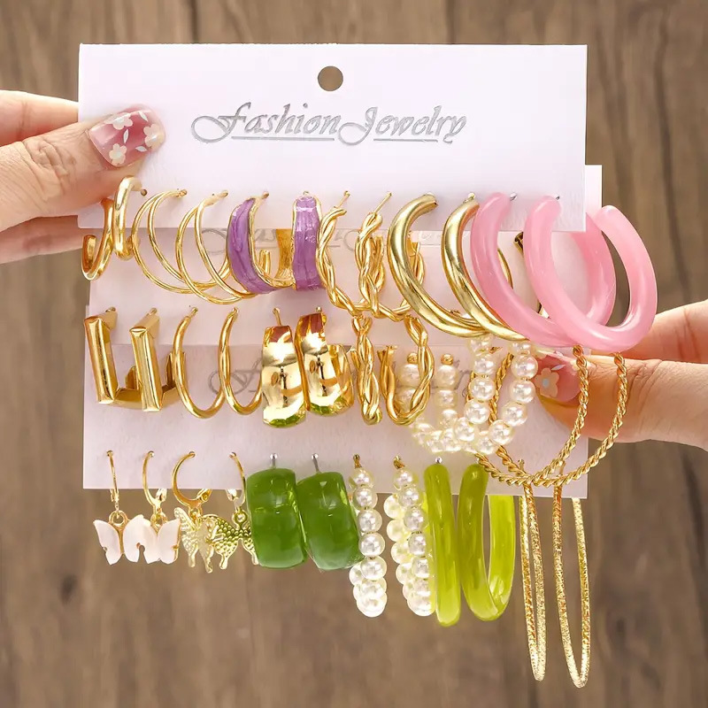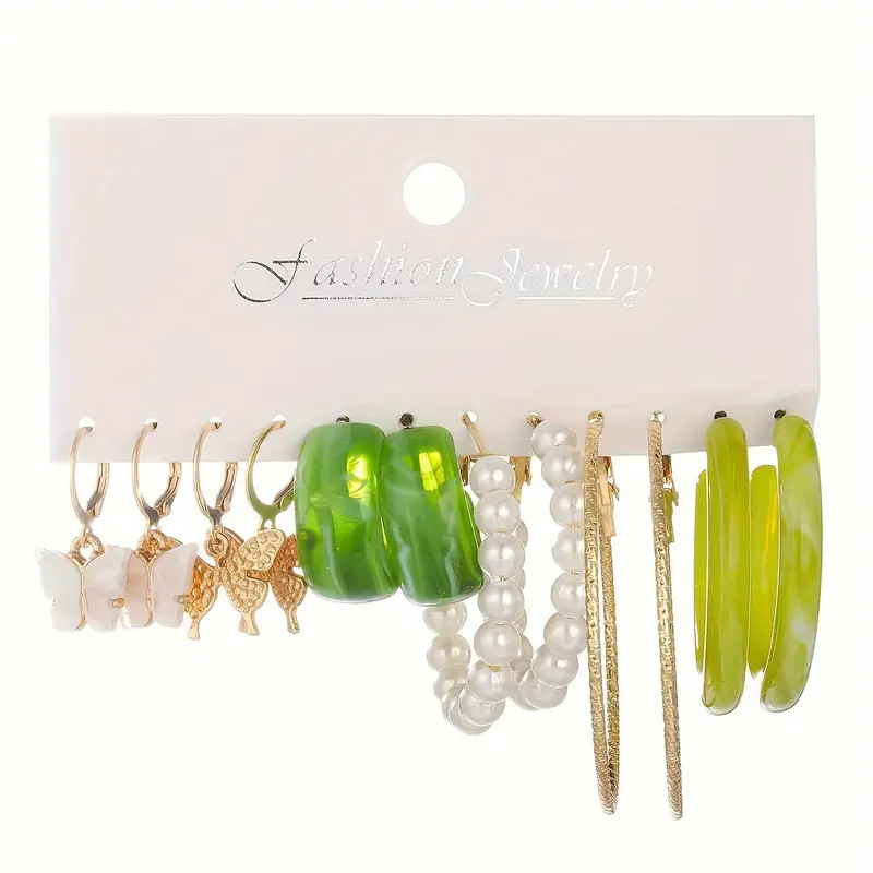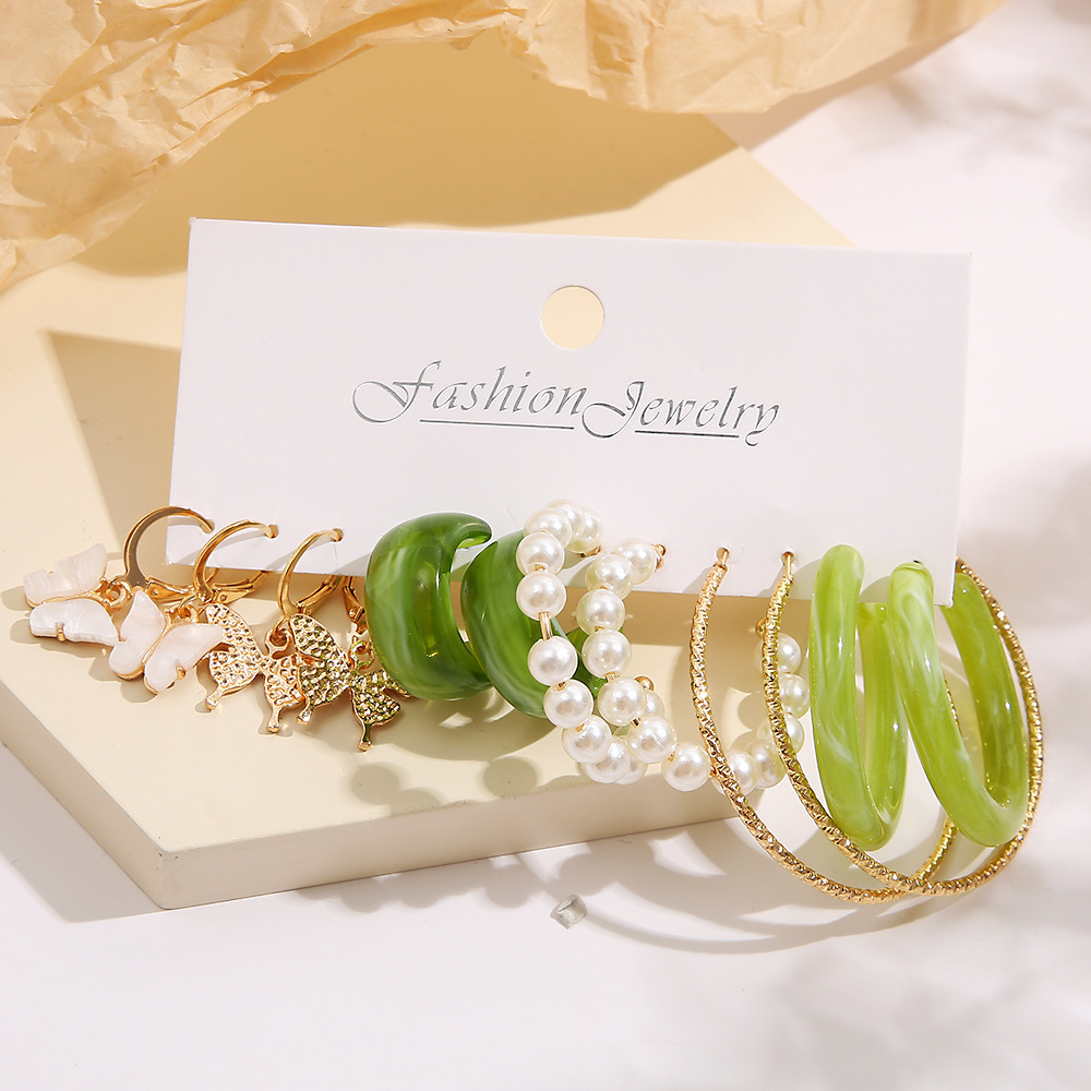欧美跨境合金耳圈方形几何耳环套装复古珍珠卡装耳环套装耳饰品