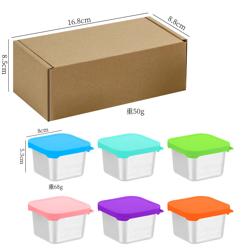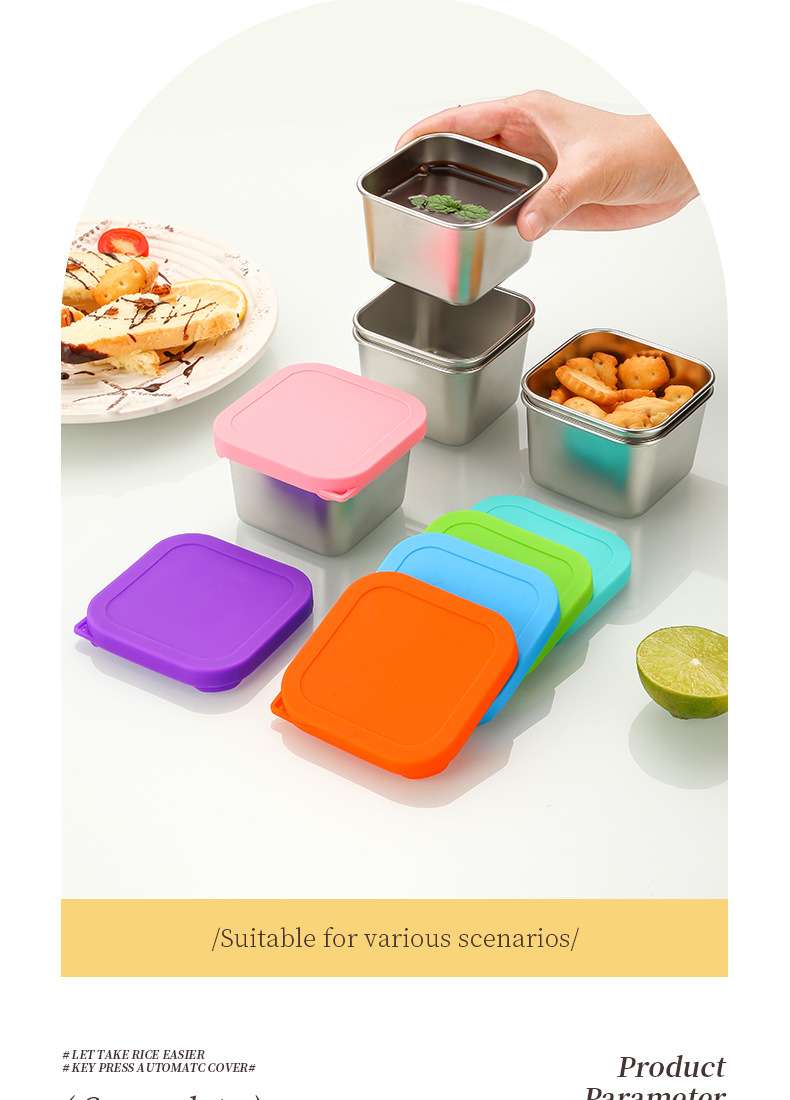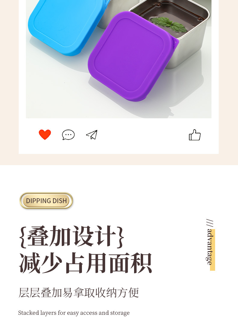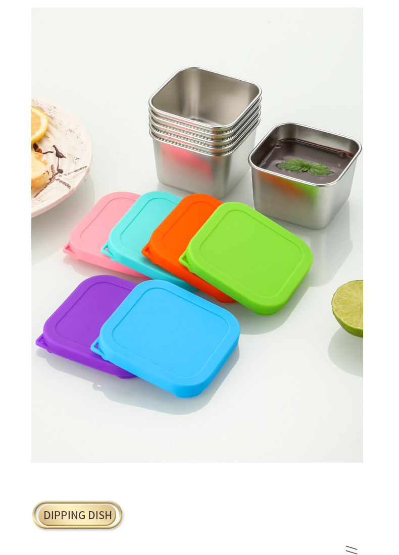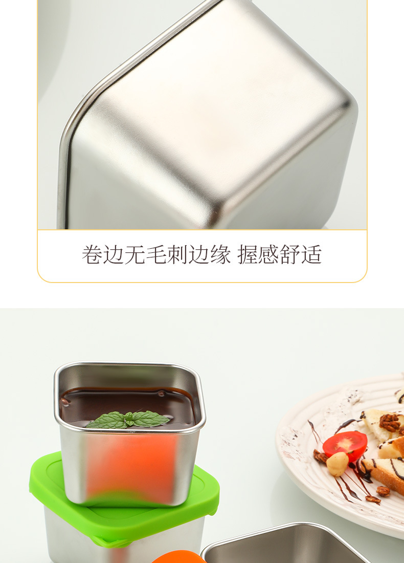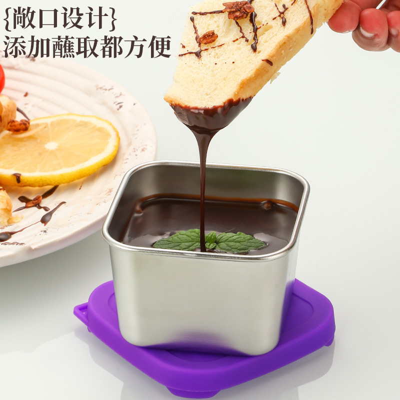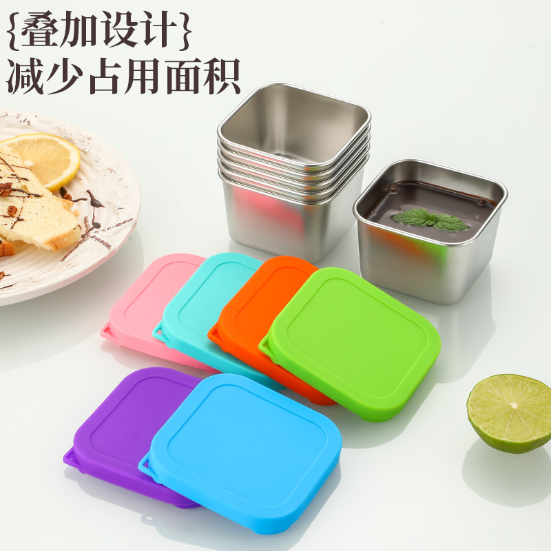 304不锈钢方形酱汁杯带硅胶盖家用番茄沙拉调味容器防漏蘸料碟子