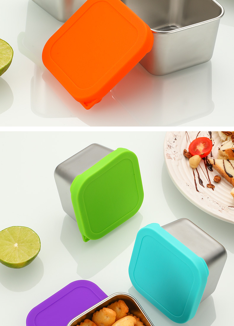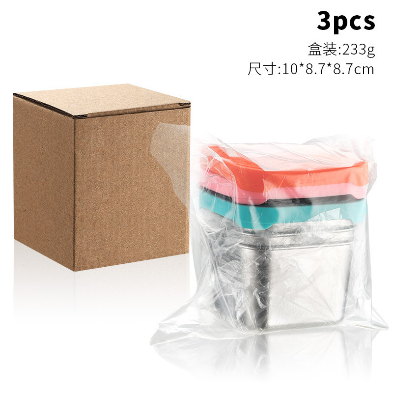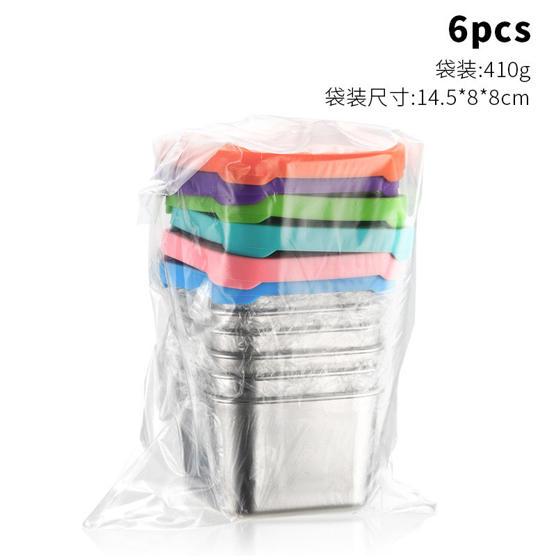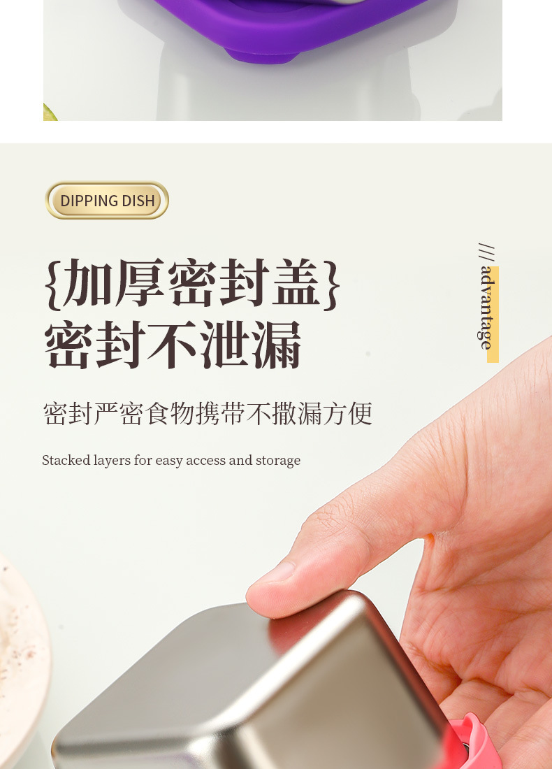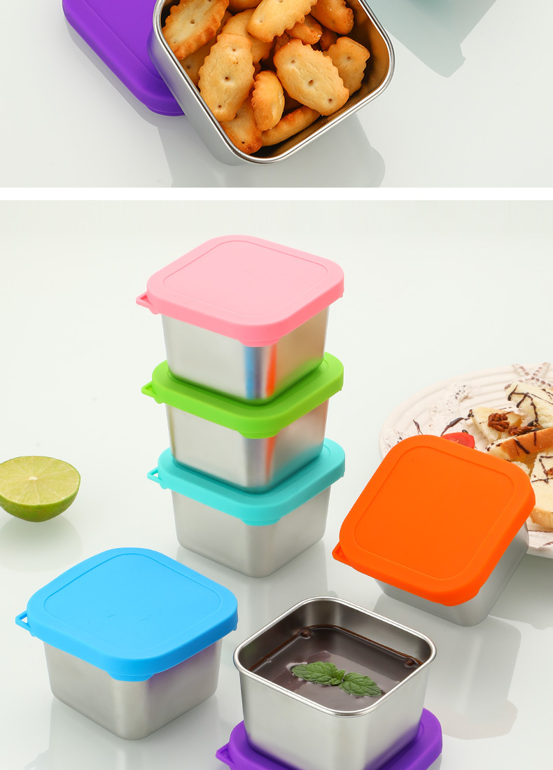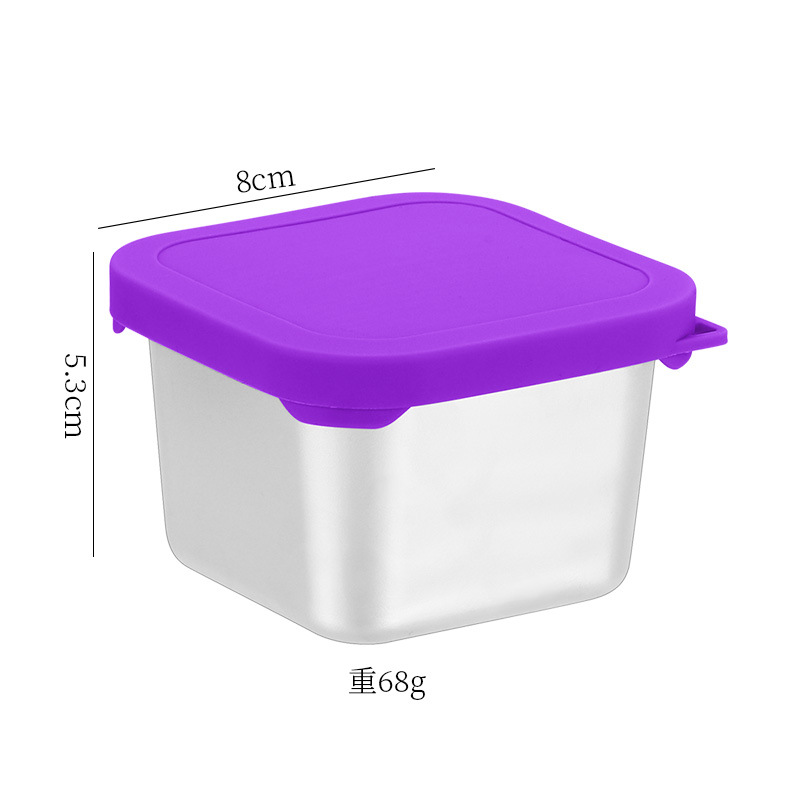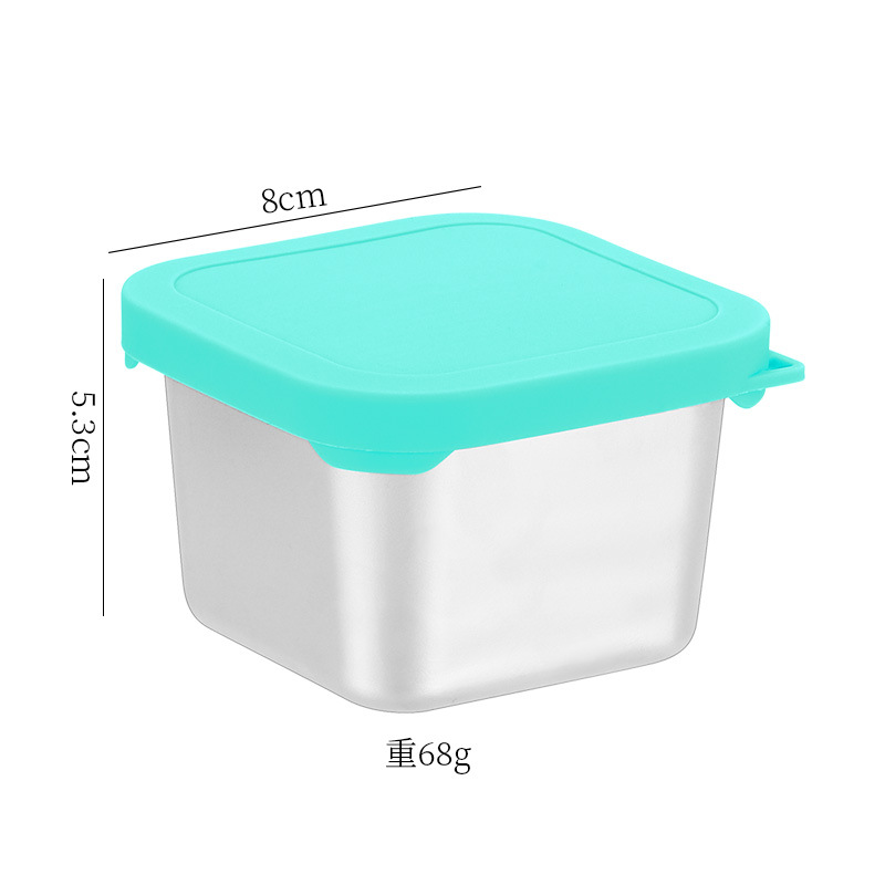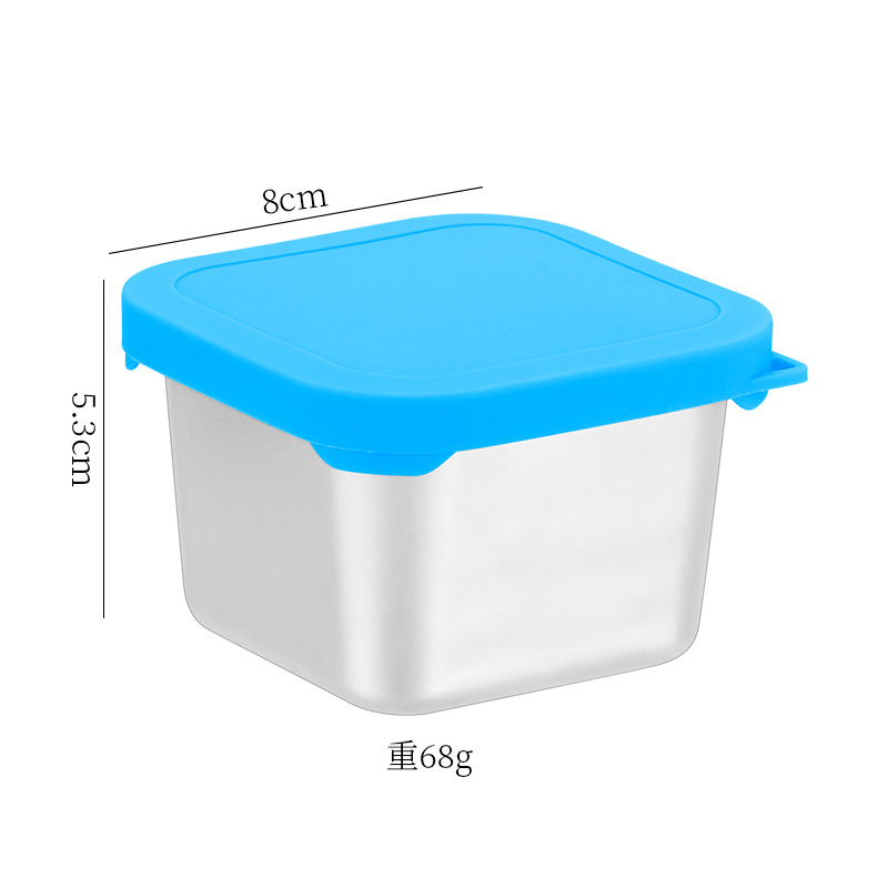 304不锈钢方形酱汁杯带硅胶盖家用番茄沙拉调味容器防漏蘸料碟子