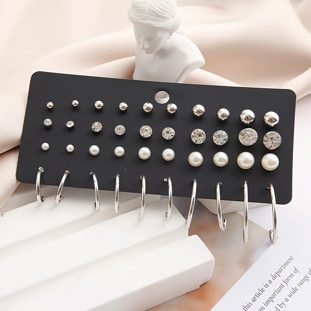 20对跨境热卖珍珠锆石耳钉套装创意个性简约气质耳圈女孩耳饰批发