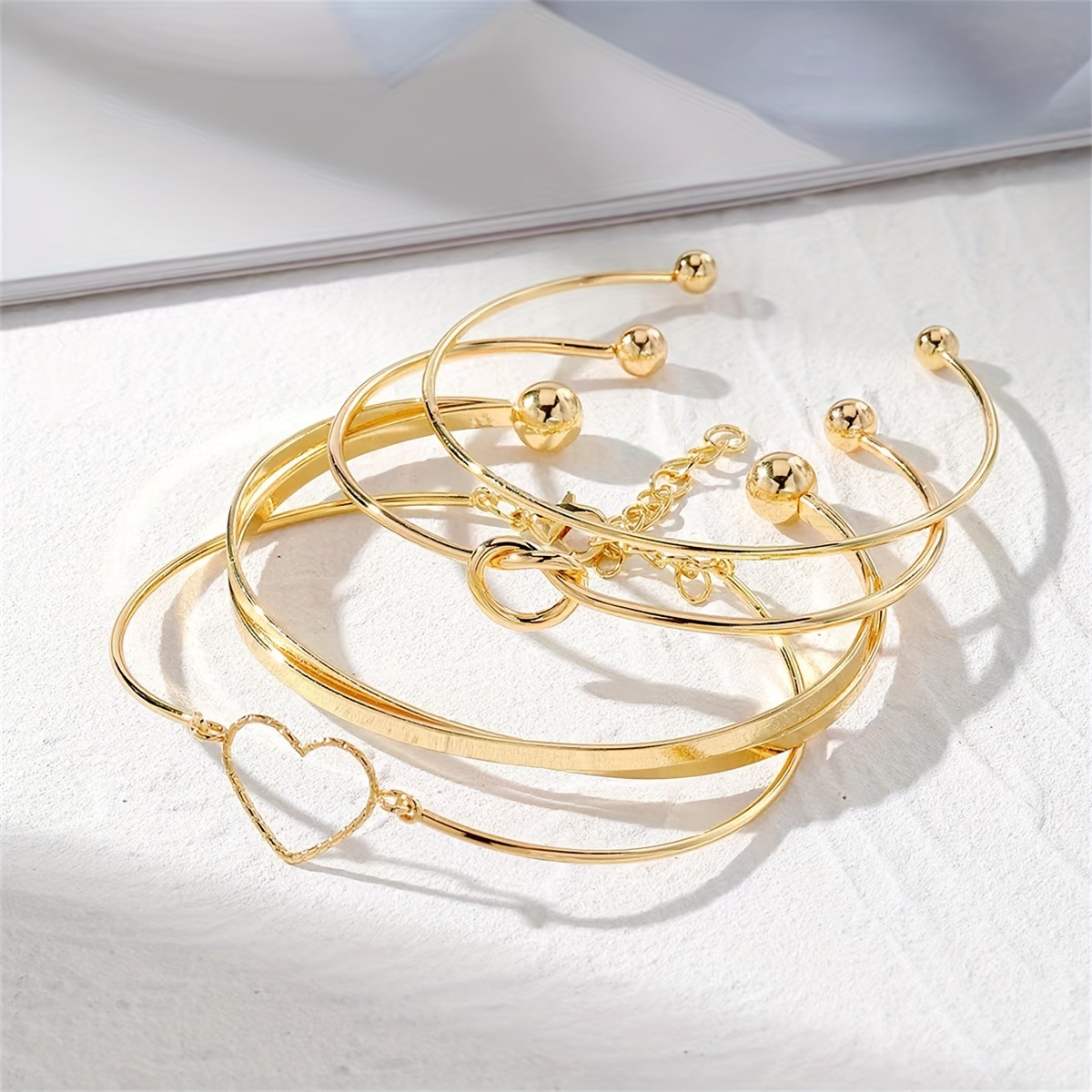 欧美热销打结心形开口手镯四件套手链个性风潮百搭穿搭设计饰品女