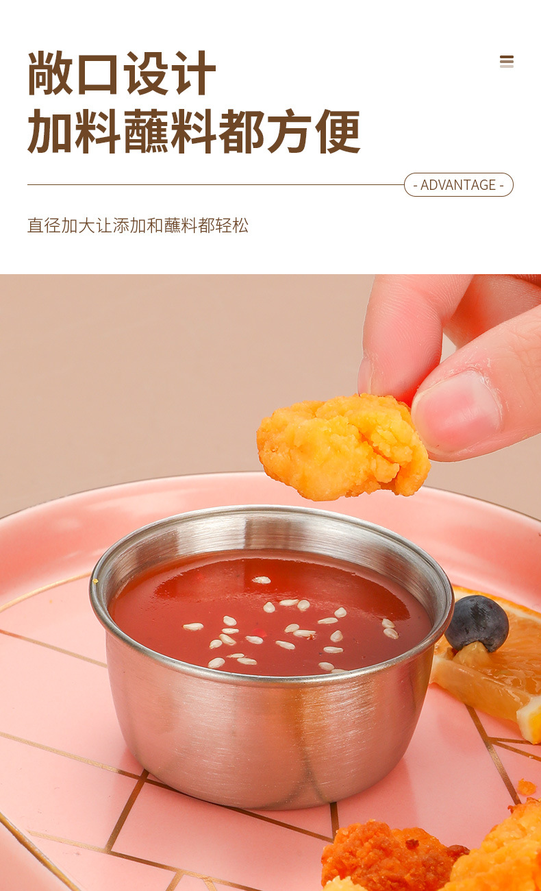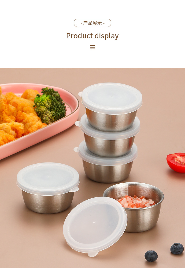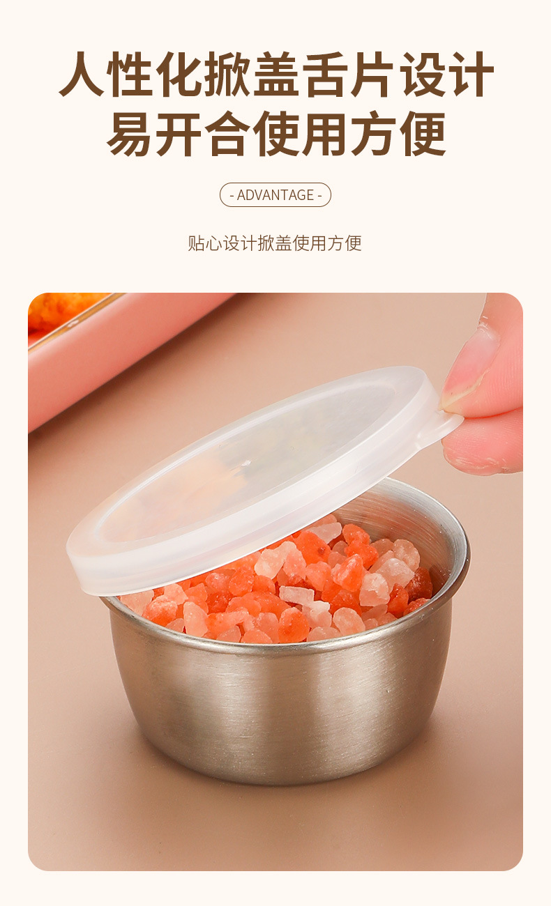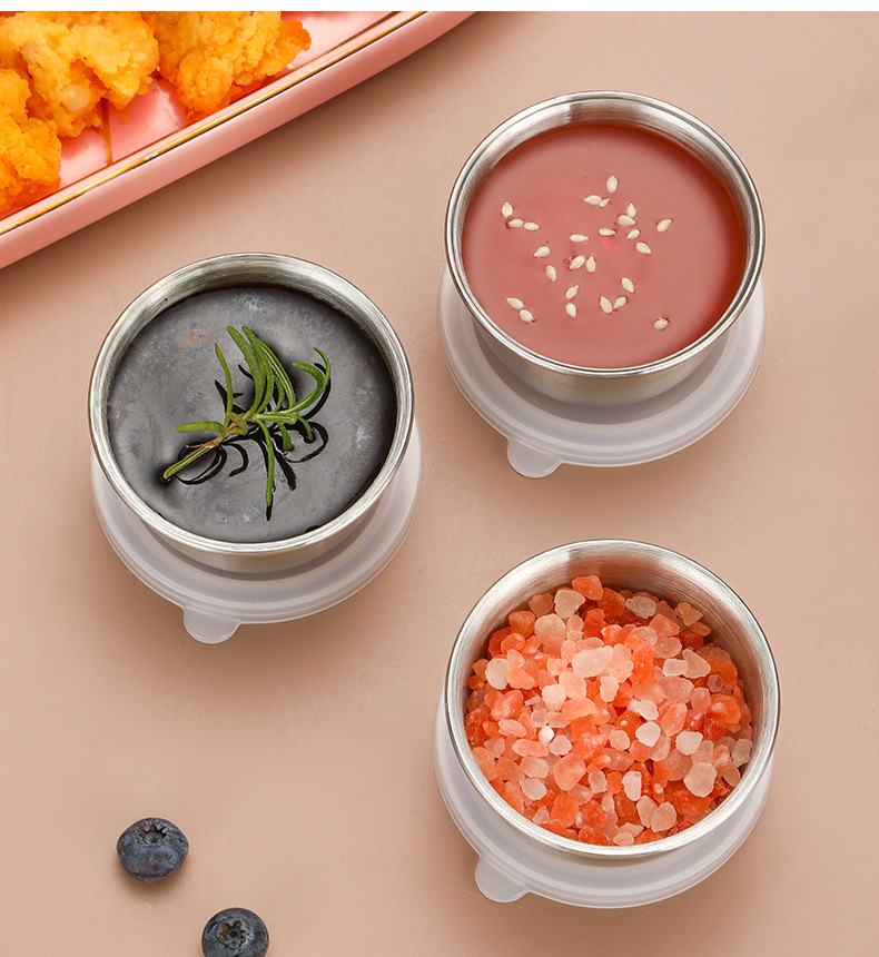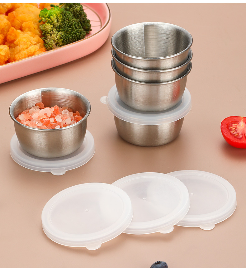跨境304不锈钢酱汁杯酱料杯40ml塑料盖密封防漏蘸料碟调味小碟子