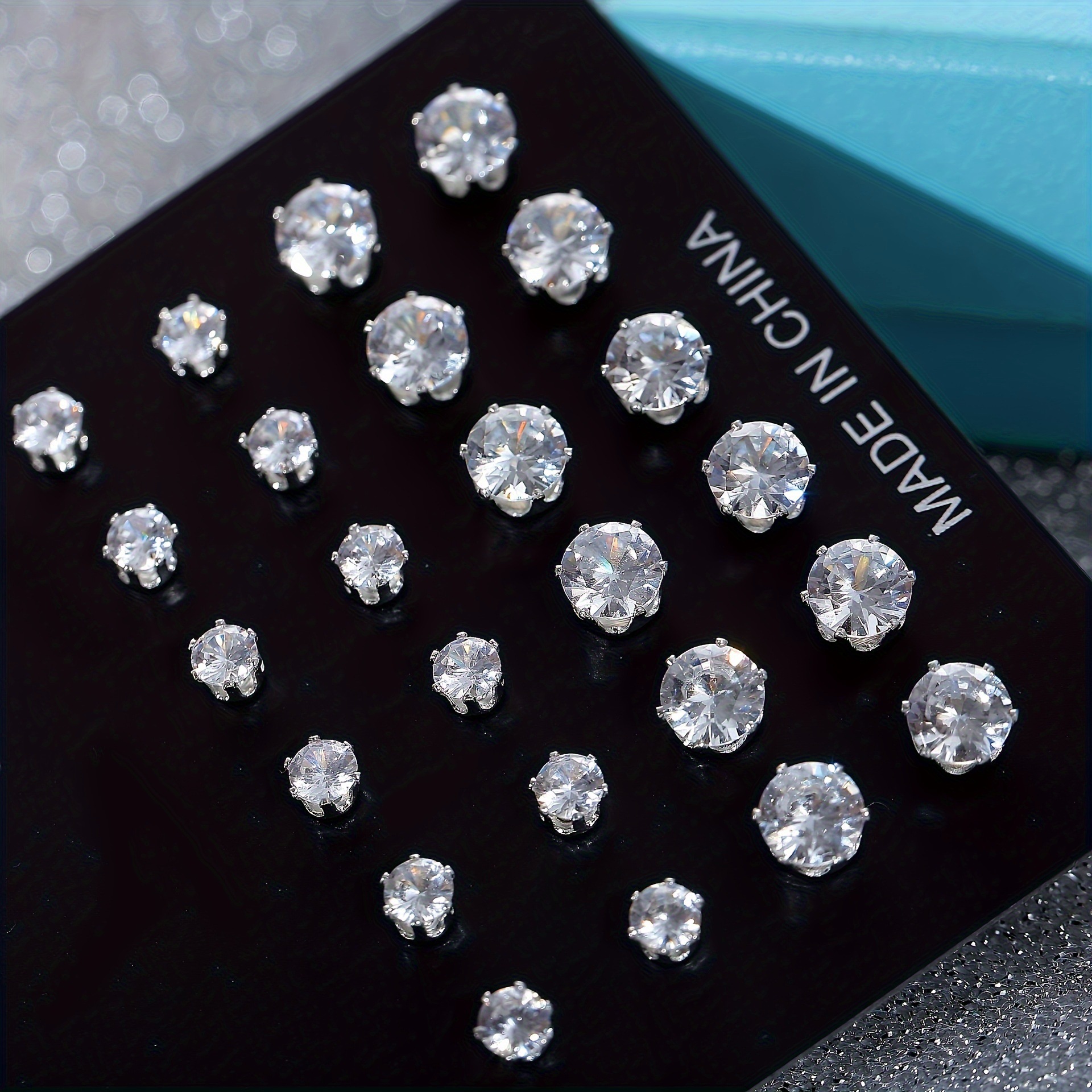跨境热卖简约白k方形女士耳钉套装镶嵌锆石款式时尚6爪耳饰12件套