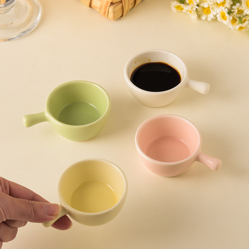 陶瓷蘸料碟奶油风餐具可爱带手柄迷你调味小味碟火锅酱油调料碟子