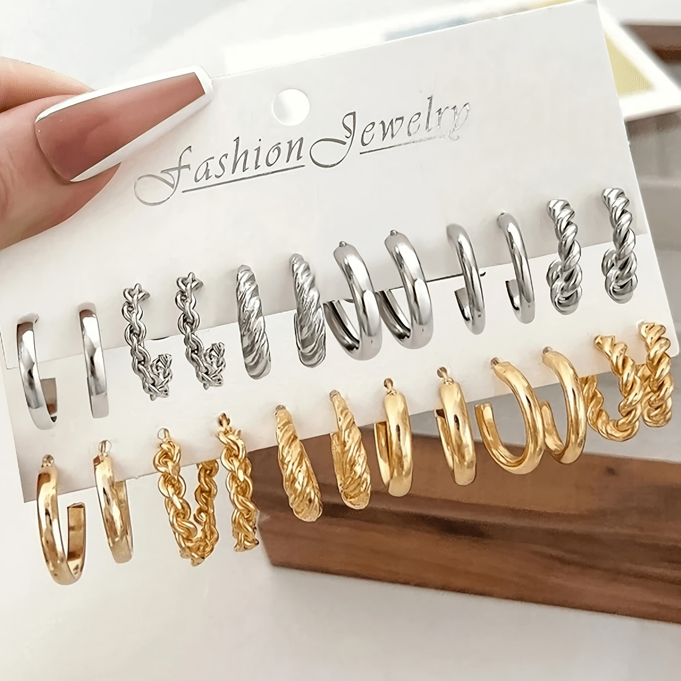 跨境热销创意个性简约耳环ins欧美风C型几何麻花金色合金耳环6对
