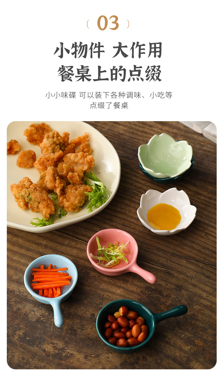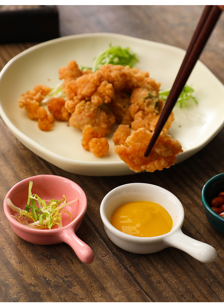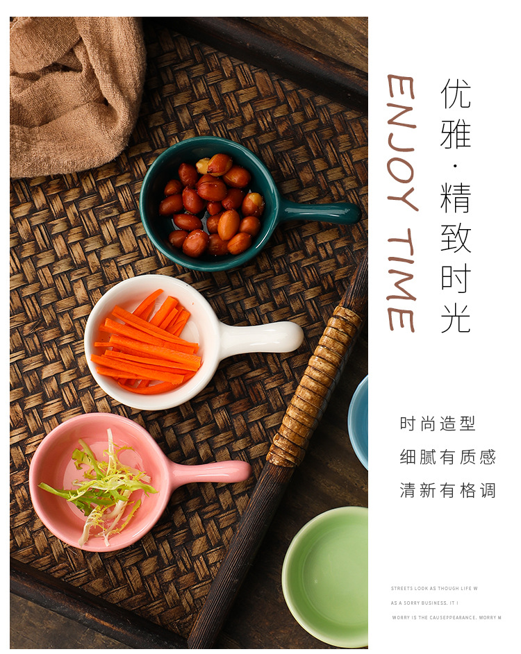 家用陶瓷酱料碟酱油碟味碟 网红带把厨房ins小碟子可爱醋碟调味碟