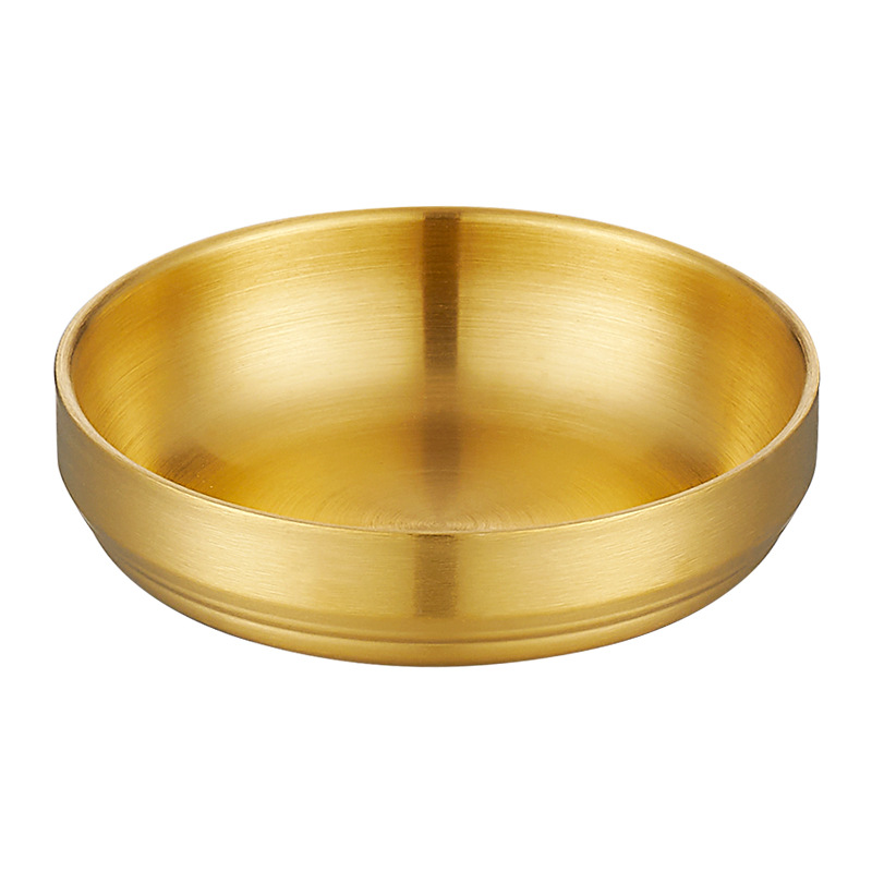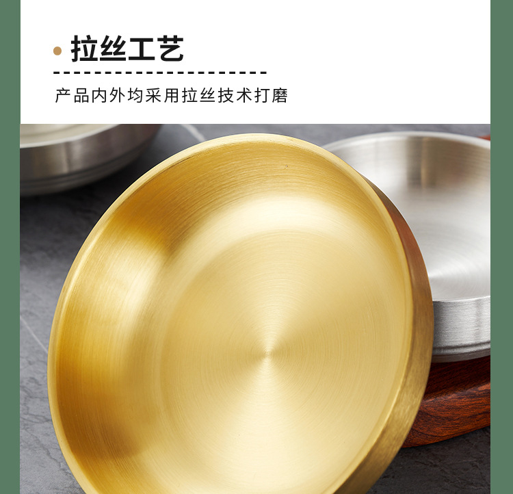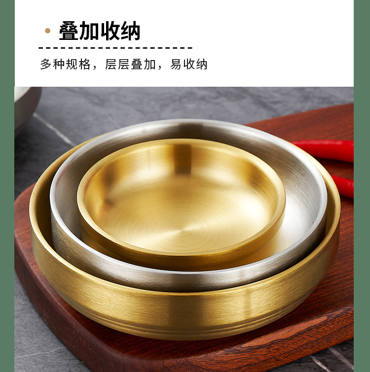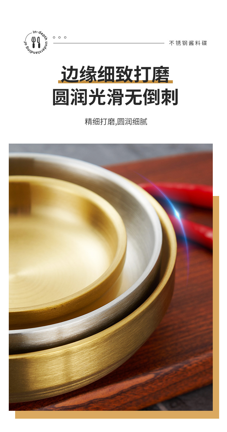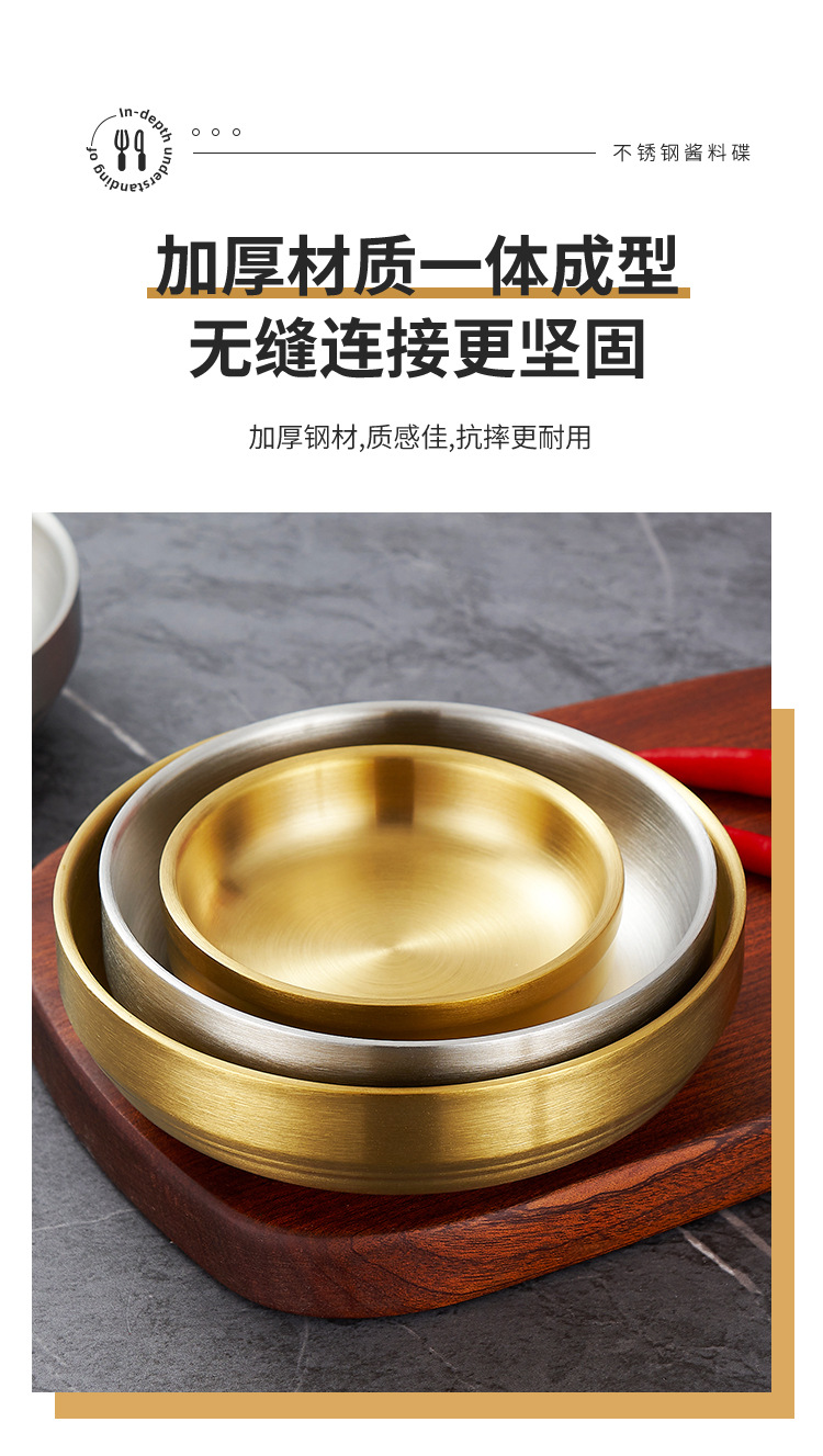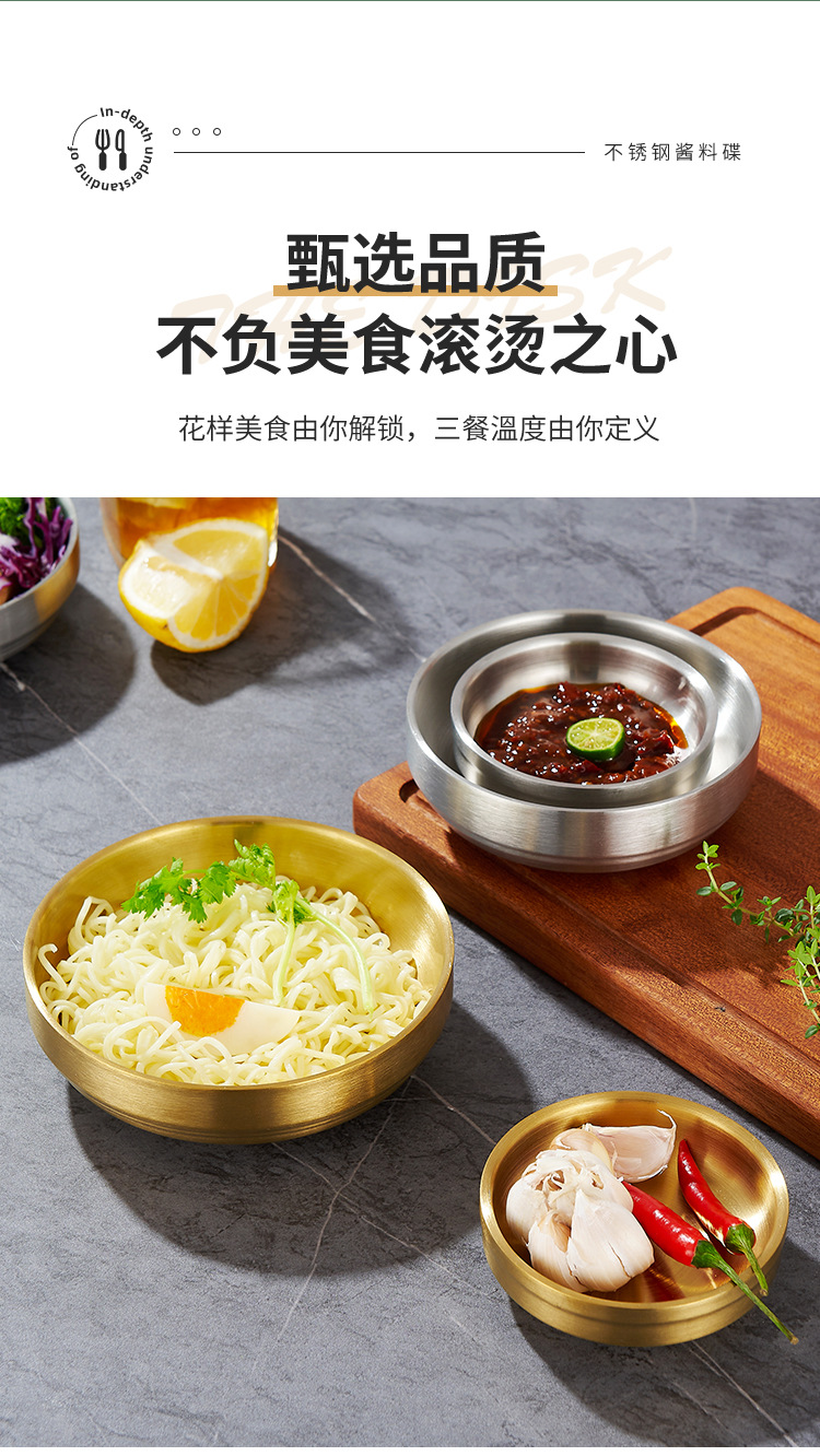 304不锈钢泡菜碟子餐厅凉菜料理餐碟金色米饭小碗韩式双层调料碟