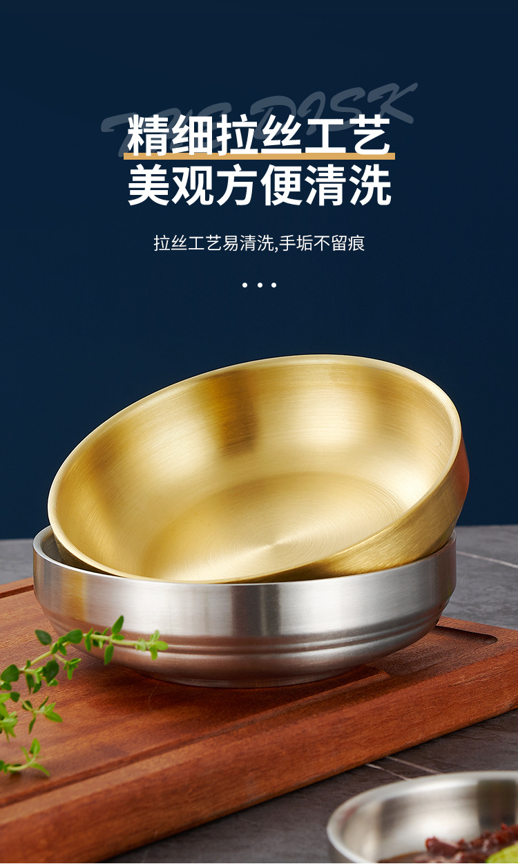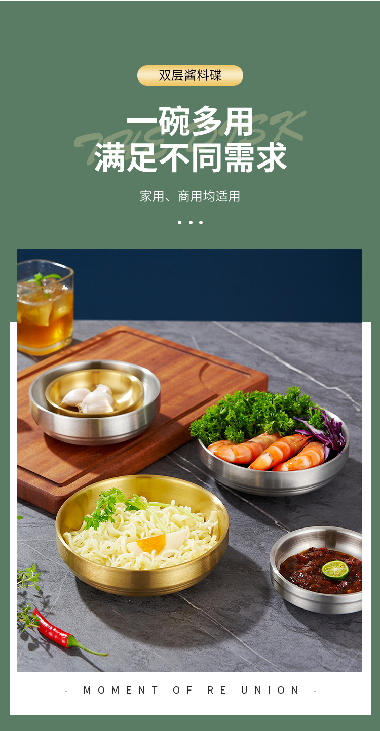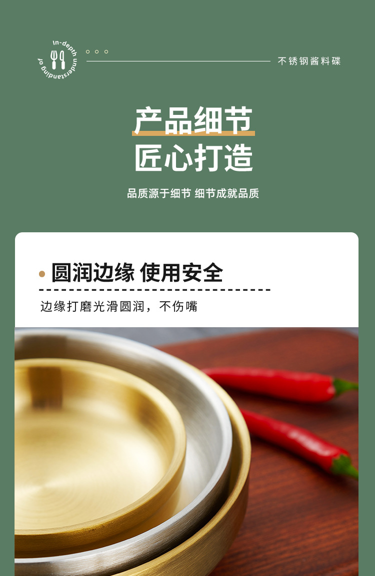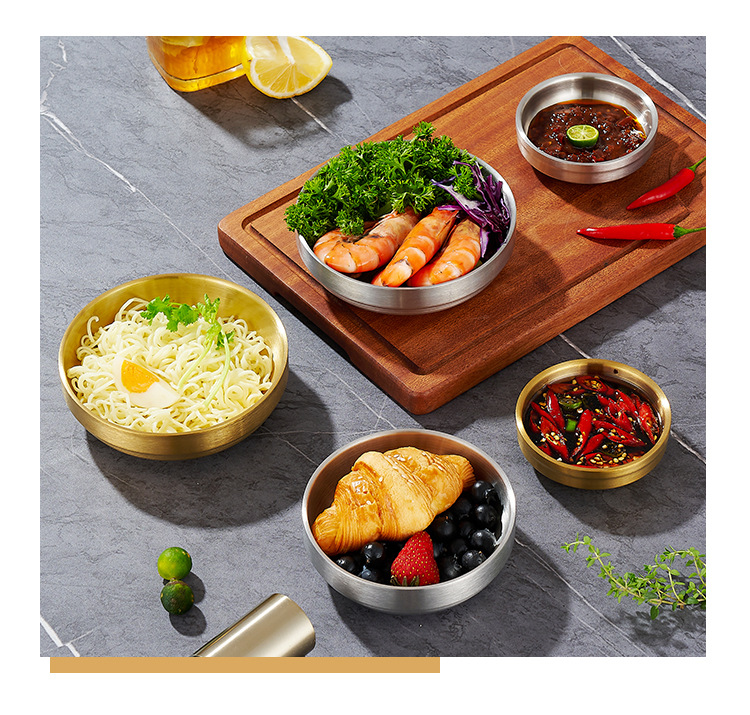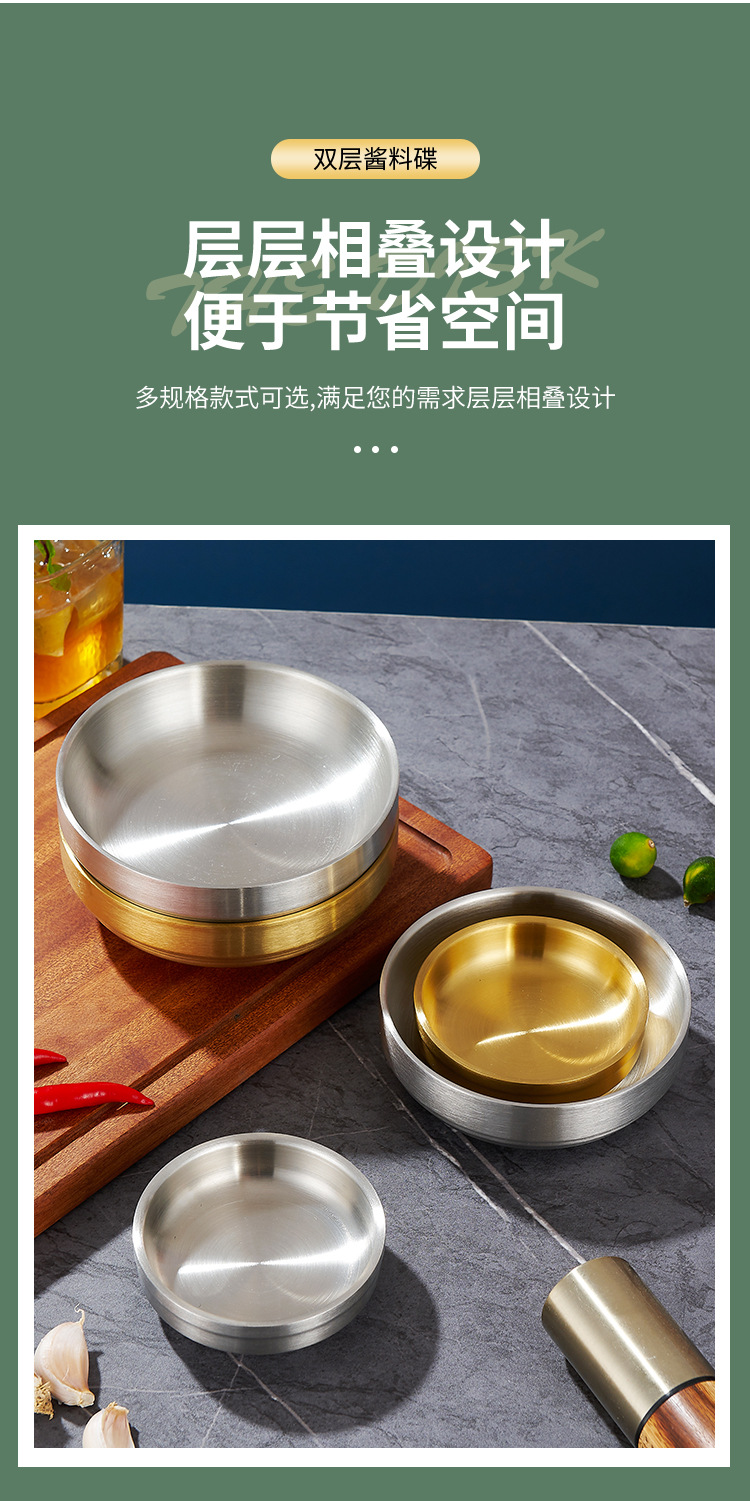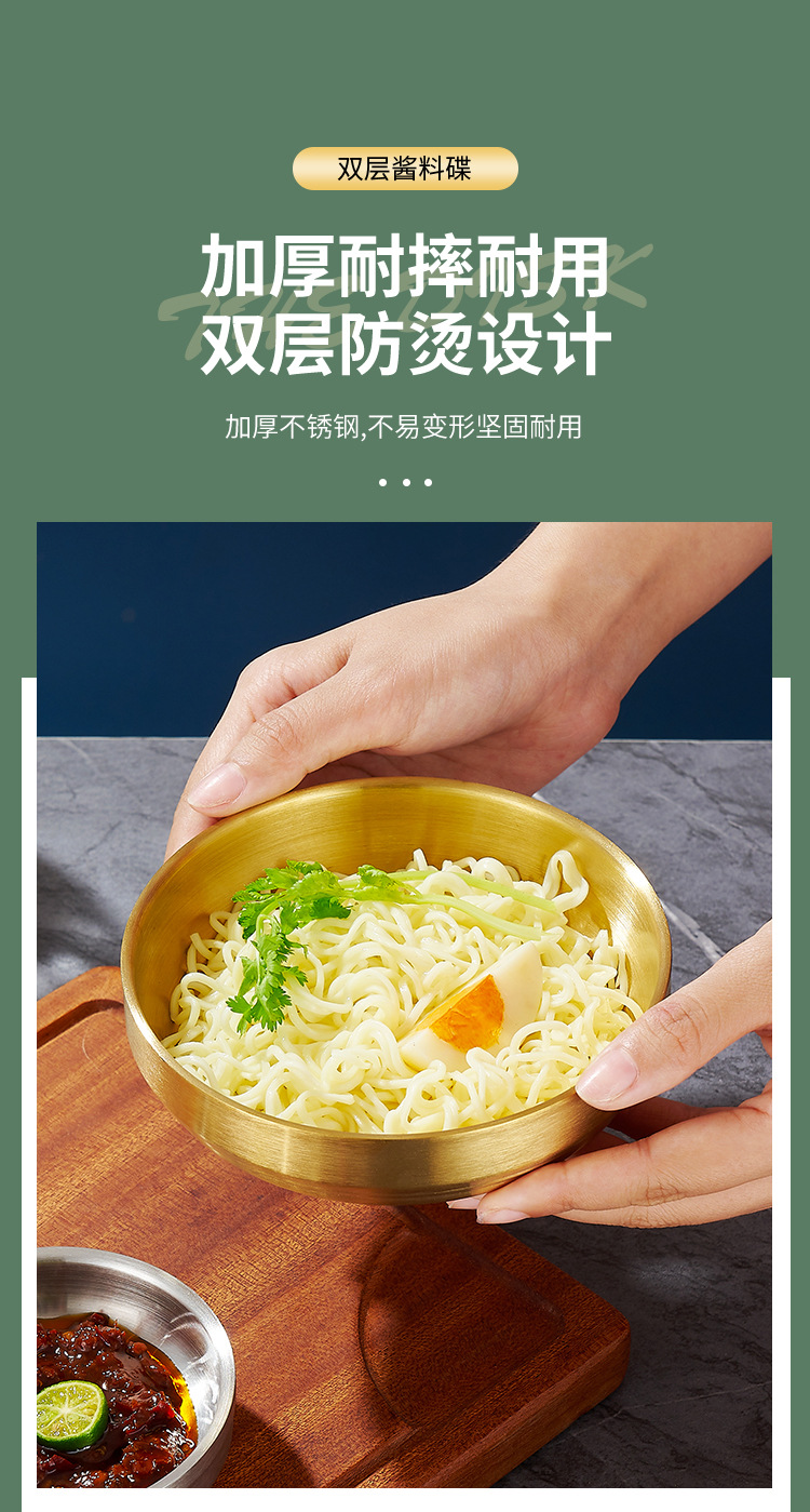 304不锈钢泡菜碟子餐厅凉菜料理餐碟金色米饭小碗韩式双层调料碟