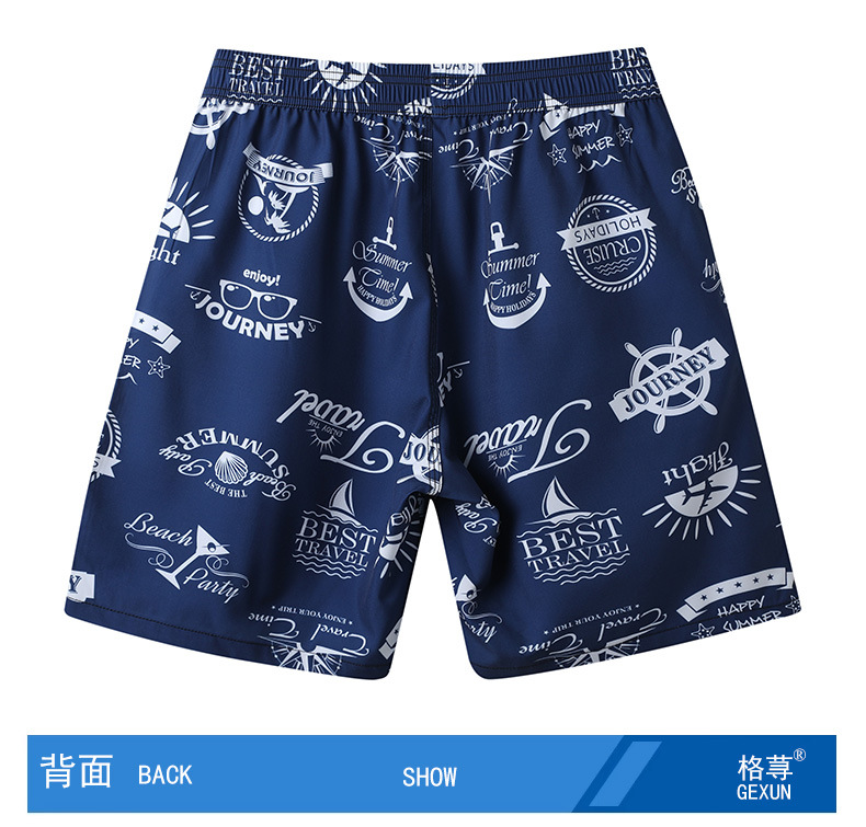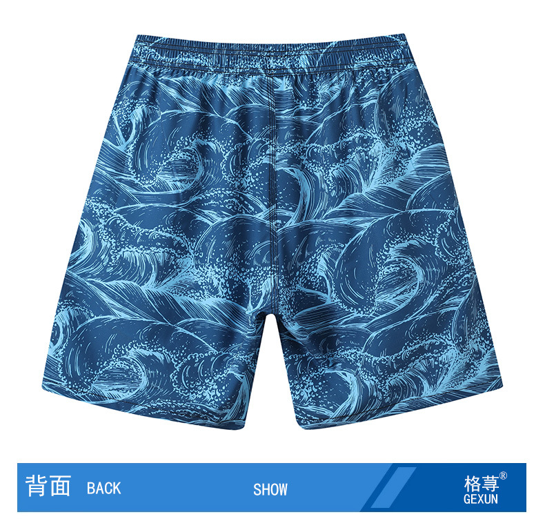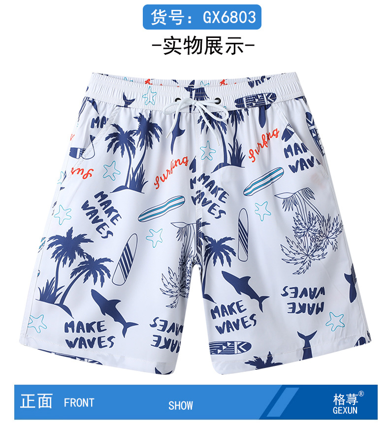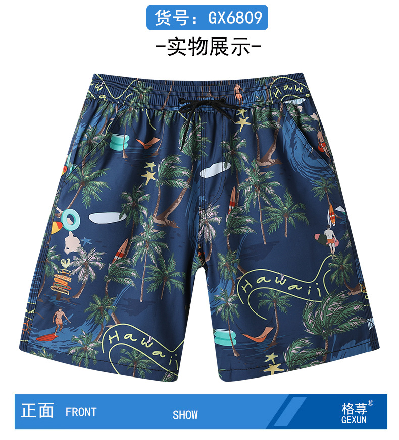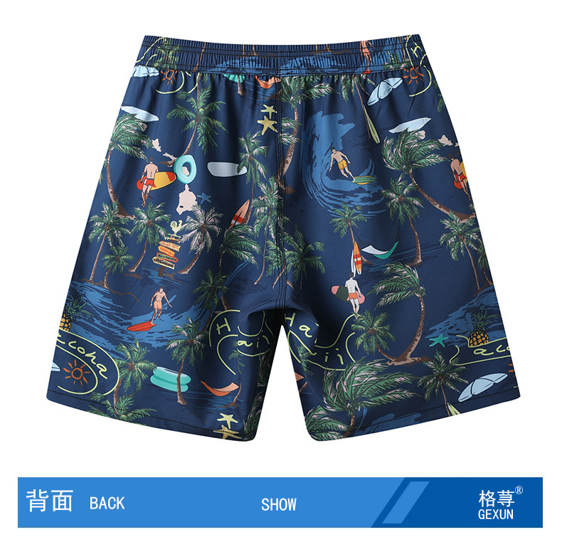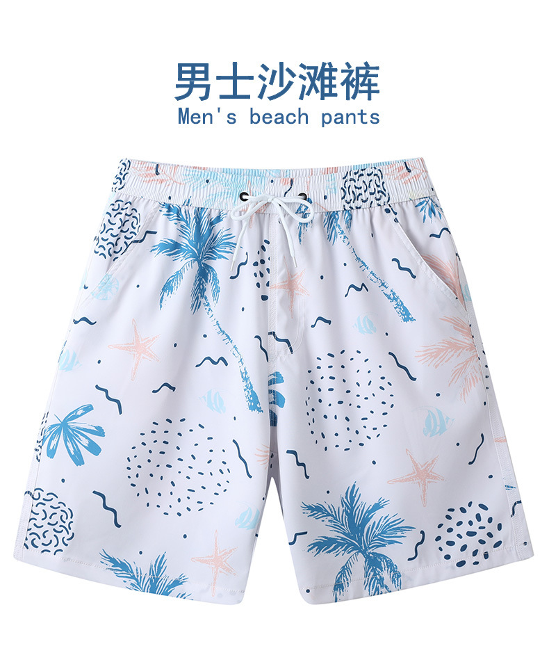 现货速干男士沙滩裤冲浪运动五分裤度假宽松男短裤印花温泉大裤衩