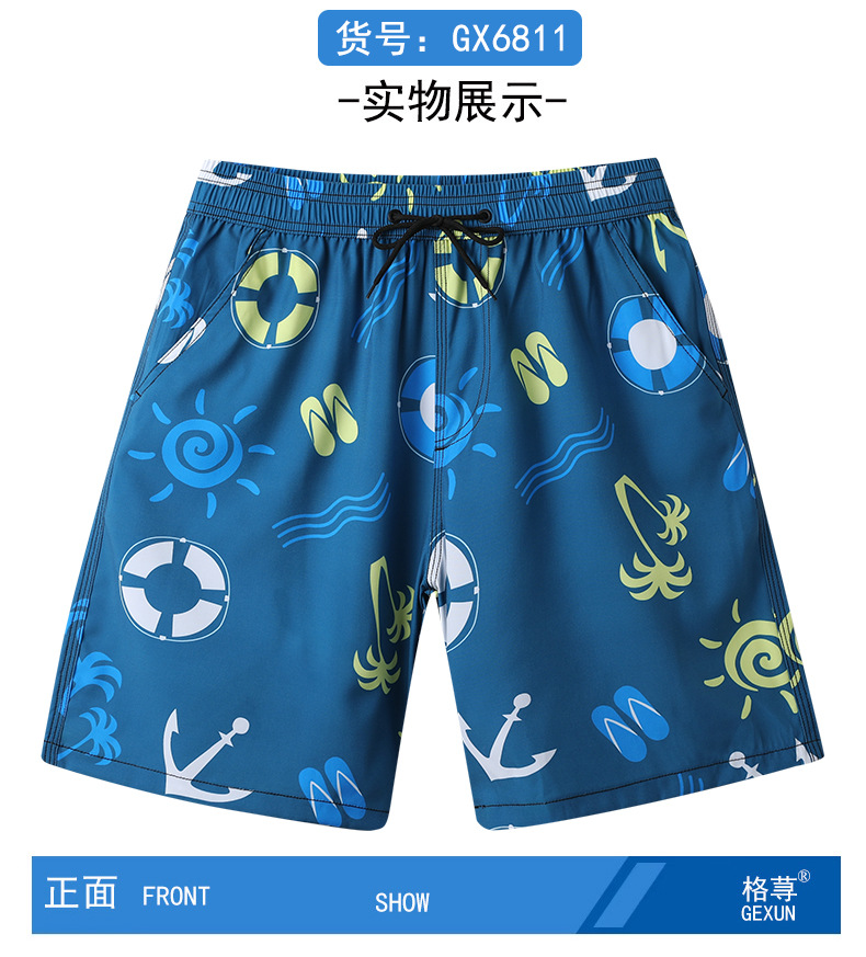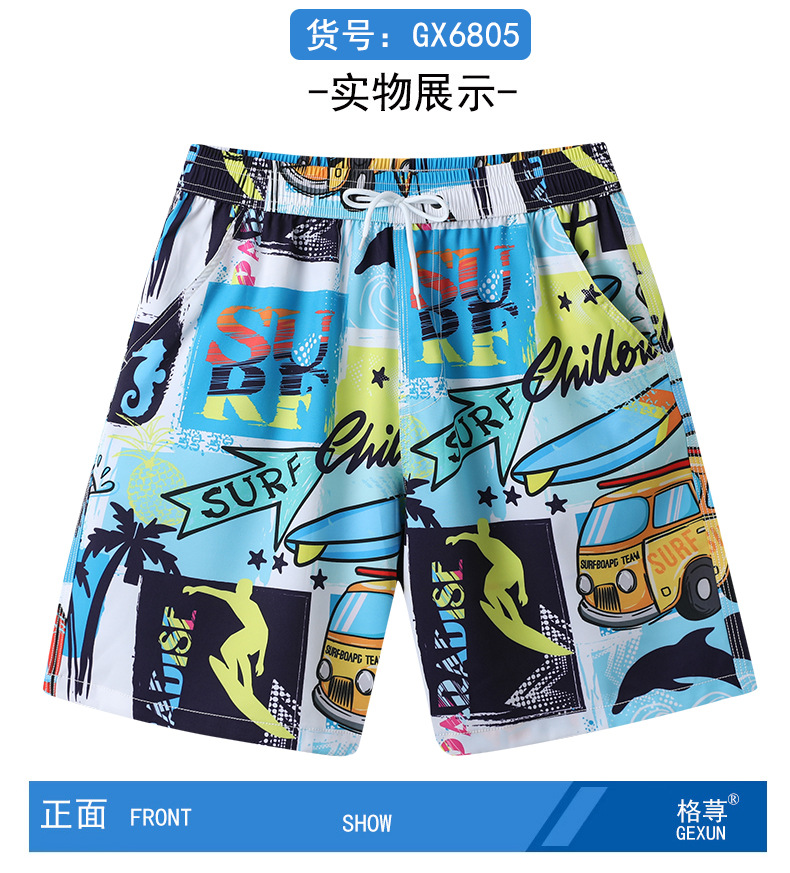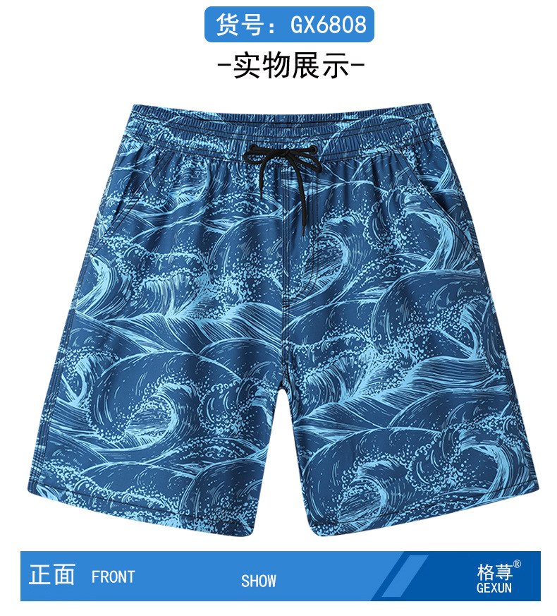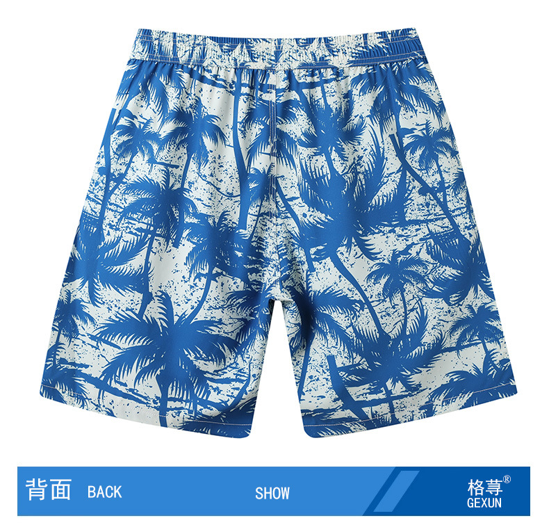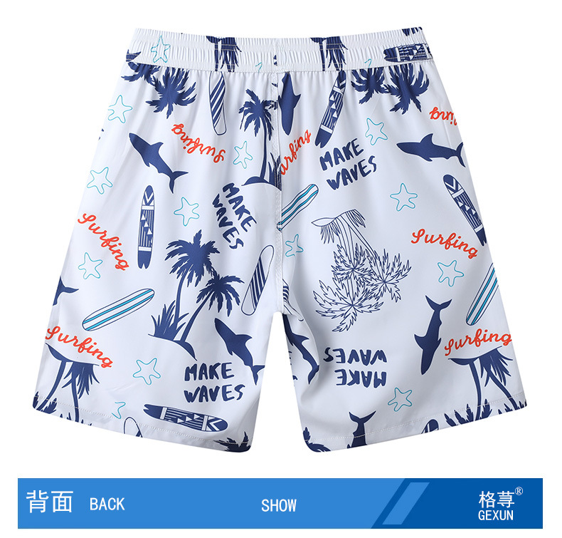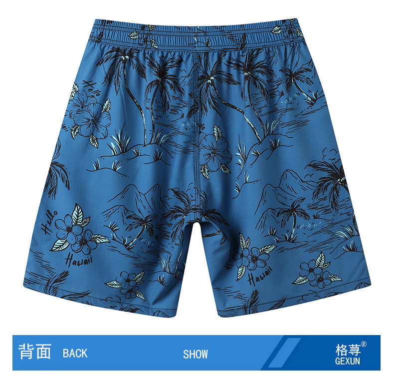 现货速干男士沙滩裤冲浪运动五分裤度假宽松男短裤印花温泉大裤衩