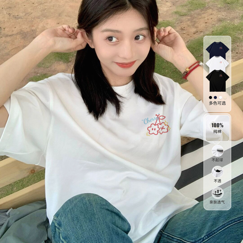 t恤上衣女2025新款爆款夏季白色纯棉宽松短袖今年流行漂亮小衫