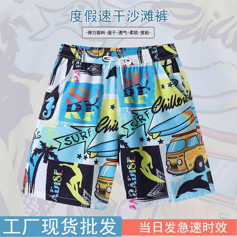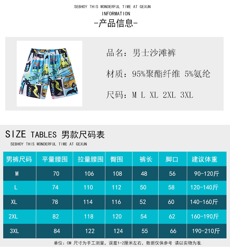 批发沙滩裤男款跑步运动休闲居家旅游五分短裤可下水冲浪沙滩短裤