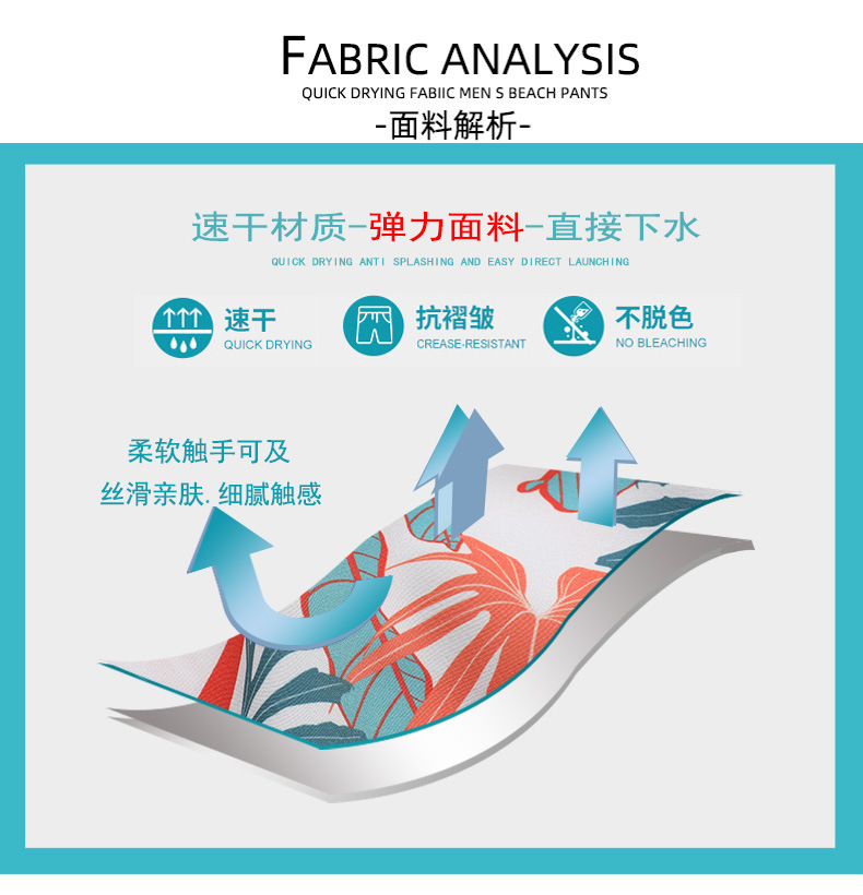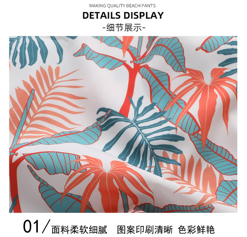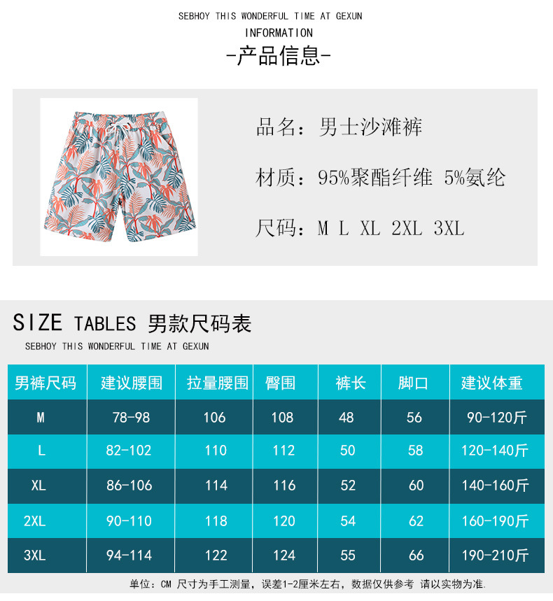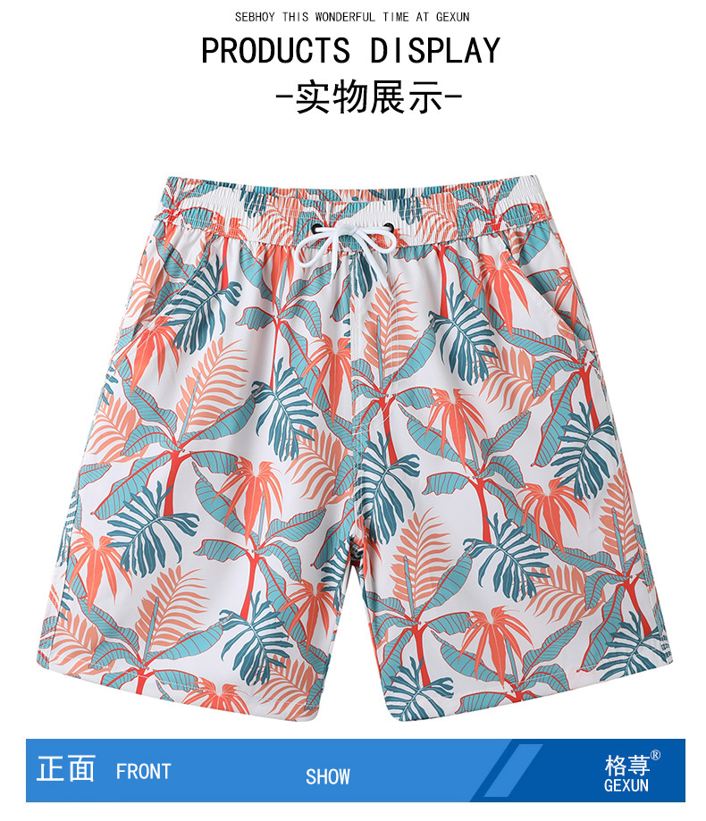 男士速干沙滩裤休闲运动五分裤度假宽松男短裤弹力印花温泉大裤衩
