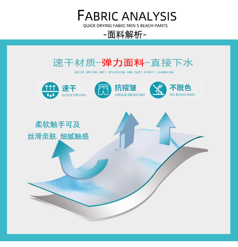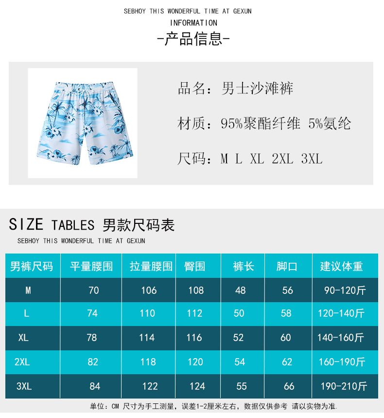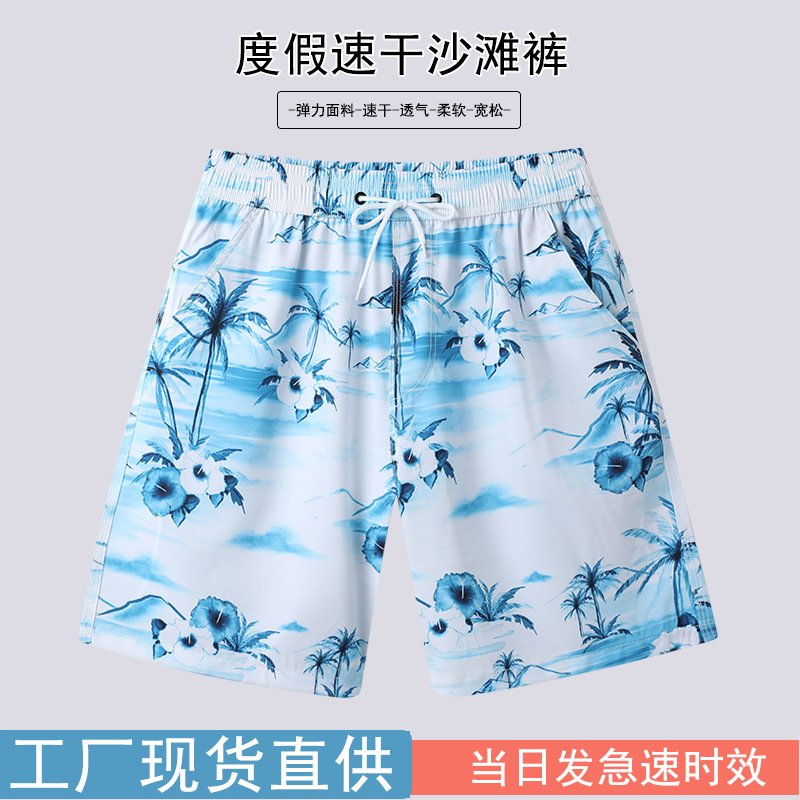 夏季男沙滩裤弹力面料海边冲浪裤休闲宽松五分裤运动跑步游泳短裤