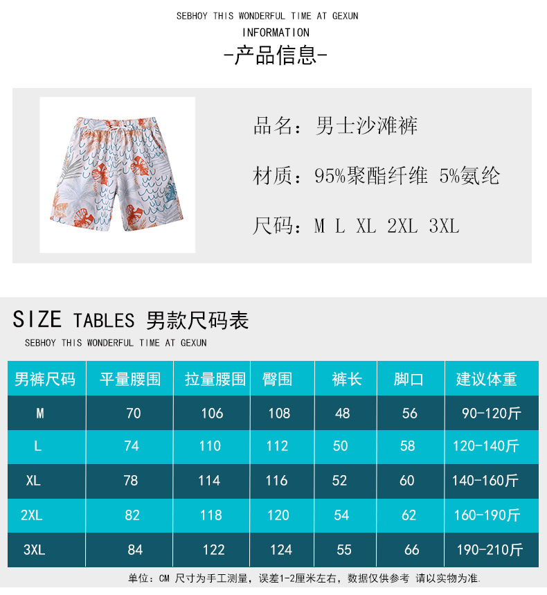 沙滩裤男速干可下水短裤海滩裤夏季冲浪裤温泉泳裤运动跑步快干裤