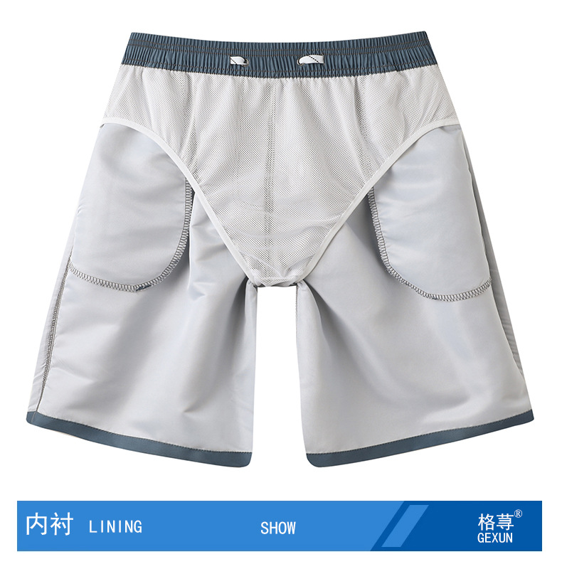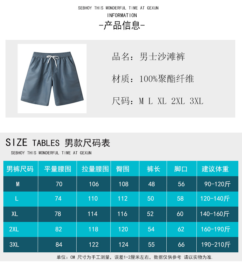 沙滩裤男速干下水防尴尬泳裤纯色跨境大码宽松休闲运动五分男短裤