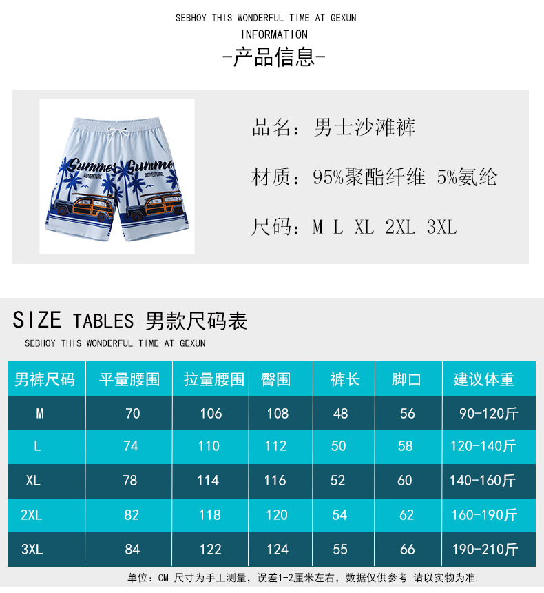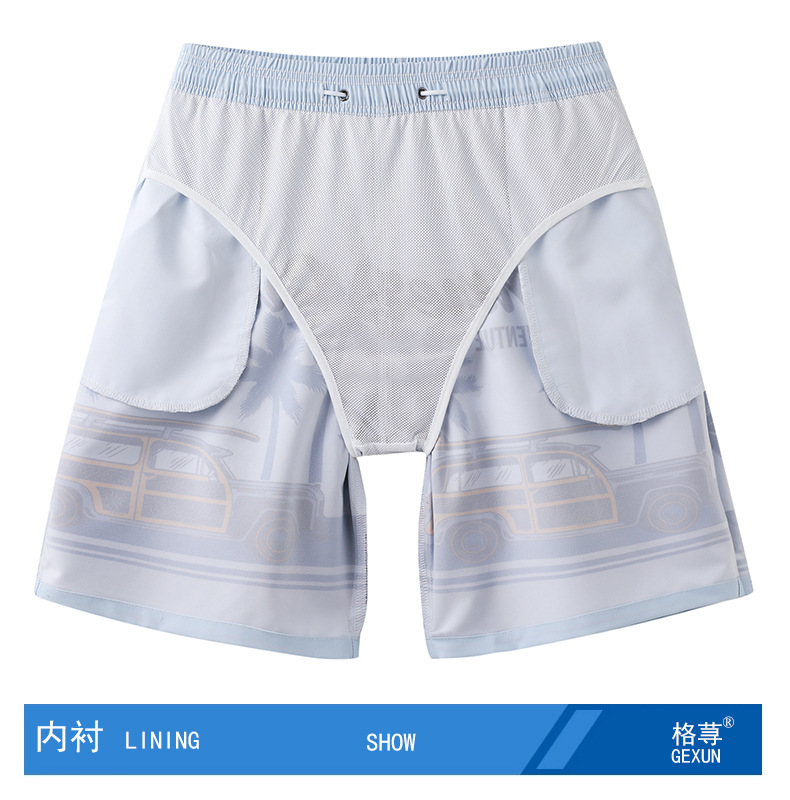 沙滩裤内衬款防尴尬宽松速干男游泳裤泡温泉冲浪五分短裤现货批发