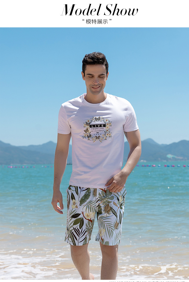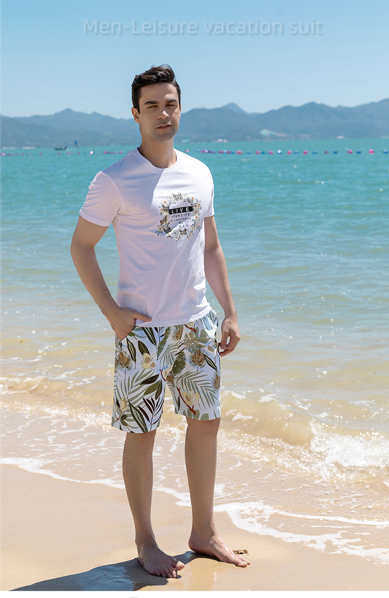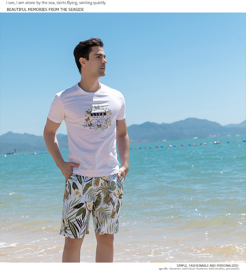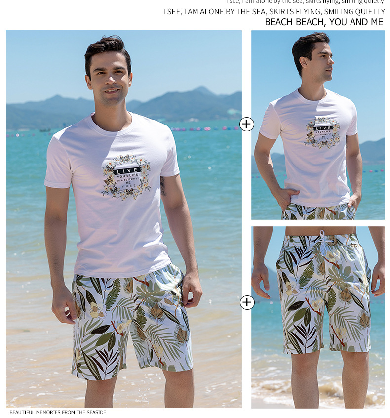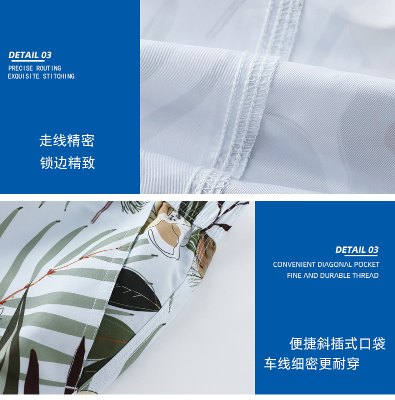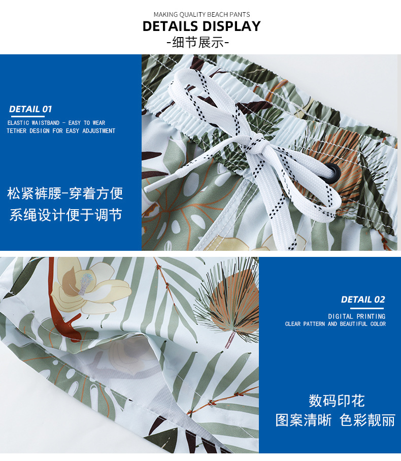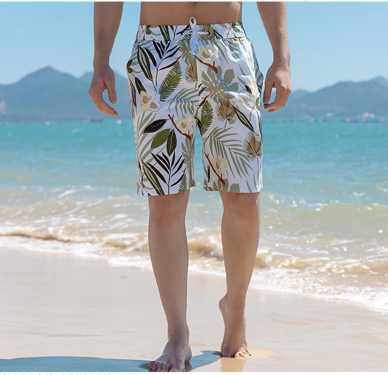 跨境沙滩裤男印花五分海滩短裤宽松沙滩裤可下水速干冲浪短裤代发