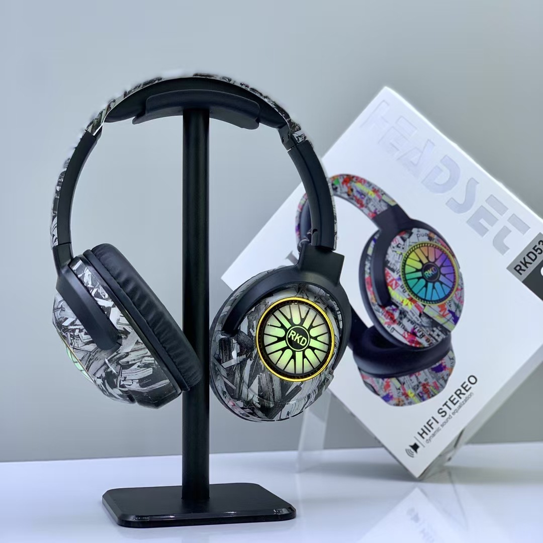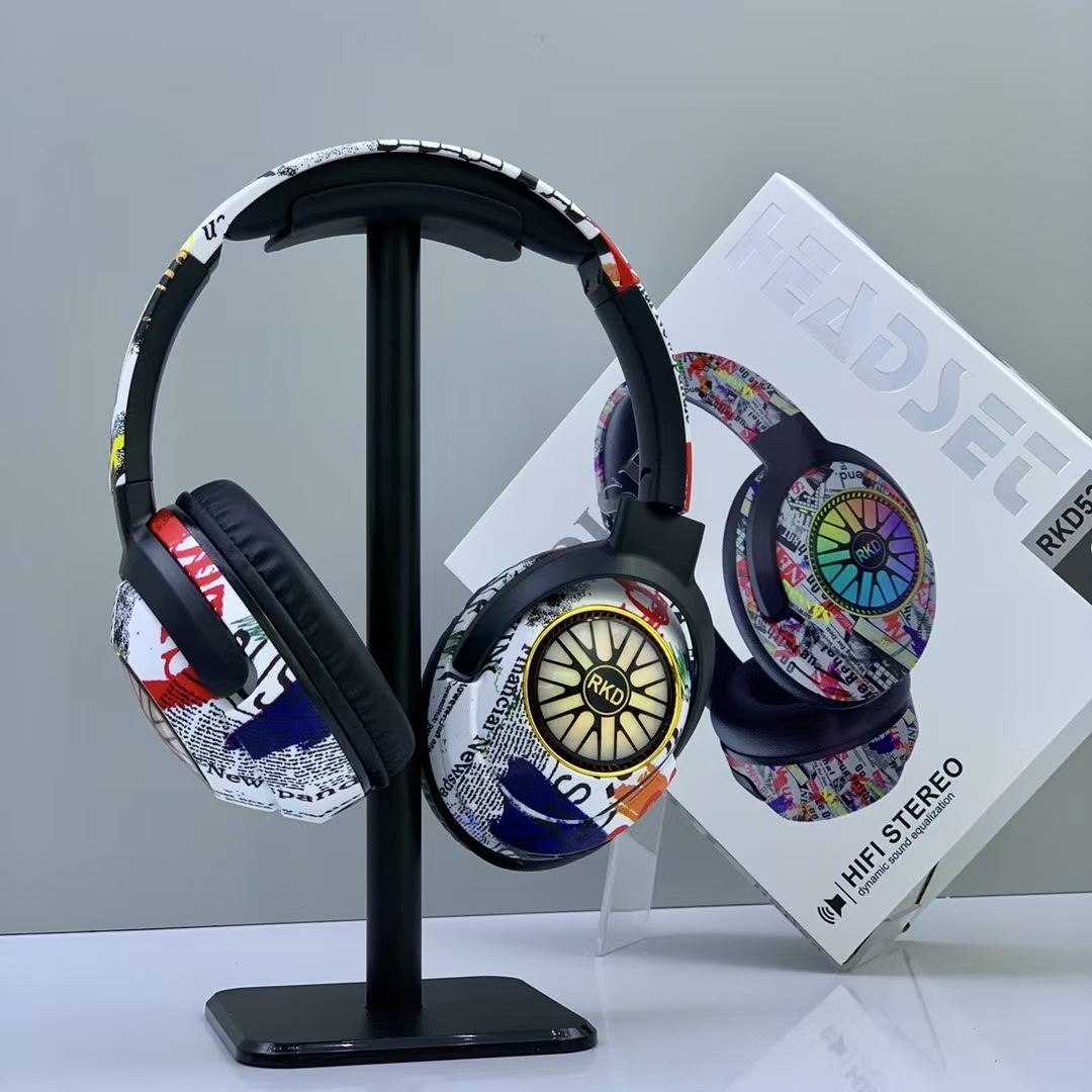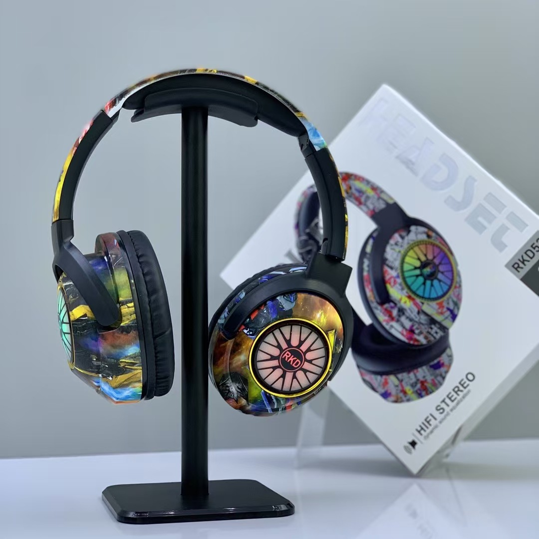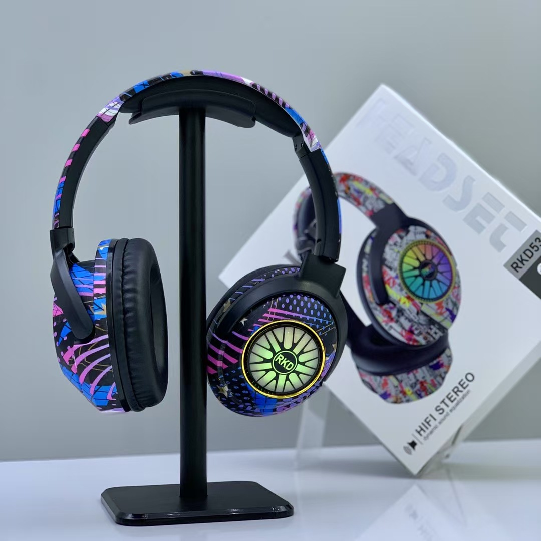 RKD53 跨境爆款涂鸦头戴式蓝牙耳机发光无线音乐运动耳麦通用耳机
