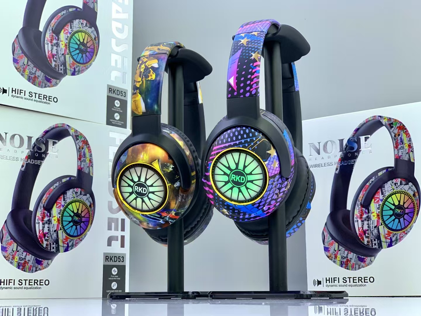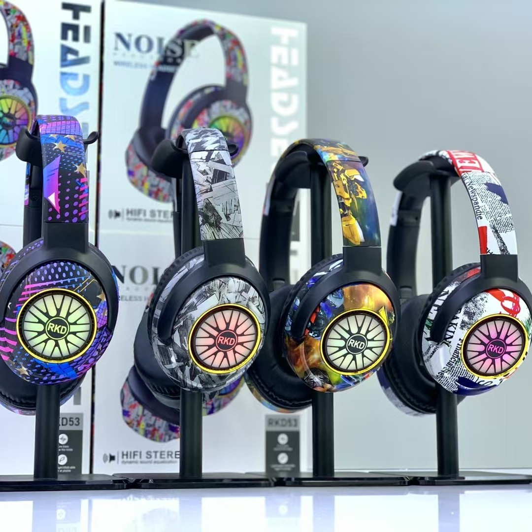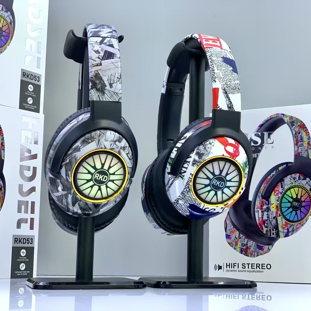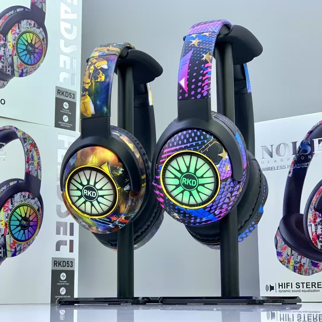 RKD53 跨境爆款涂鸦头戴式蓝牙耳机发光无线音乐运动耳麦通用耳机