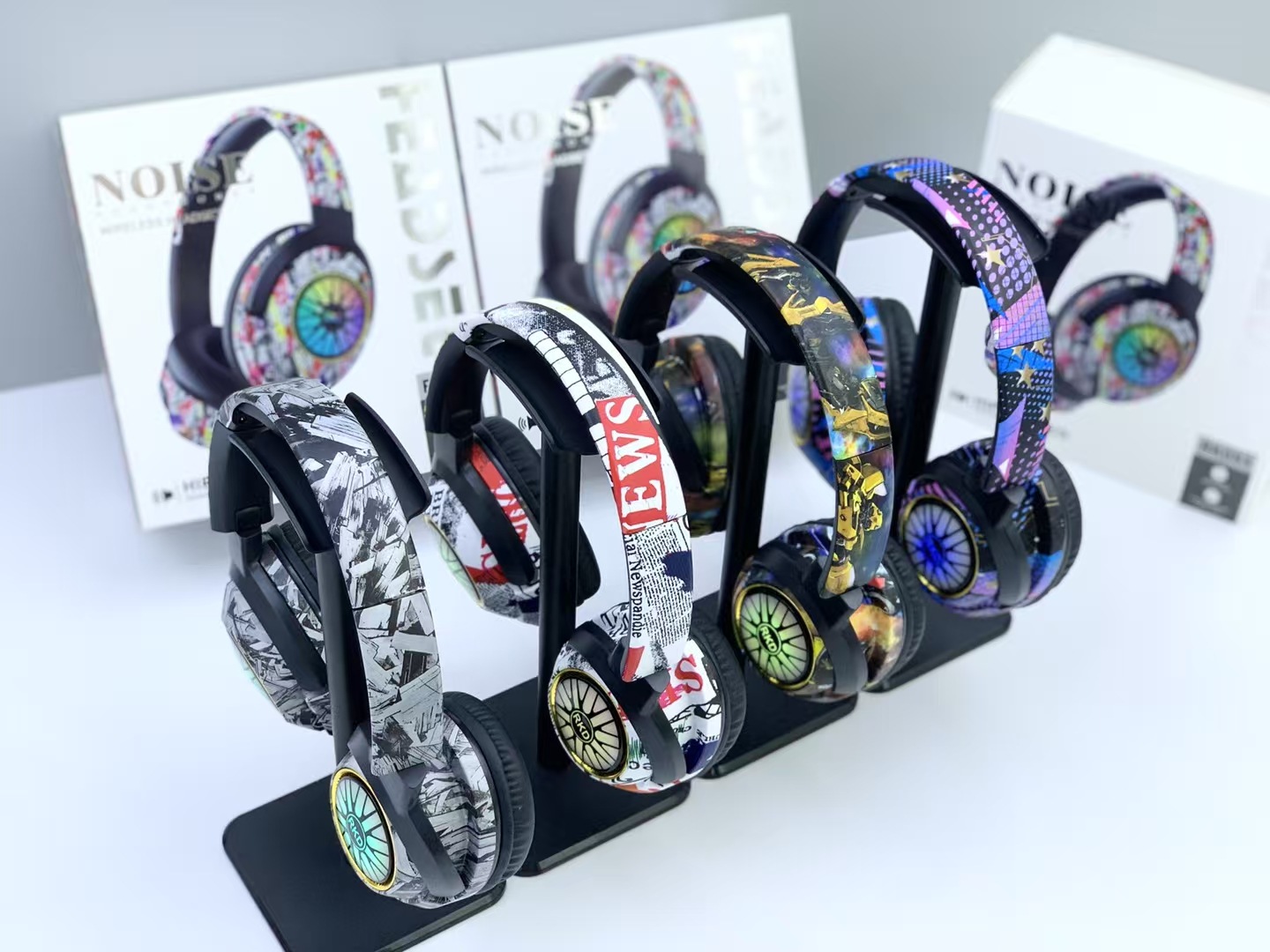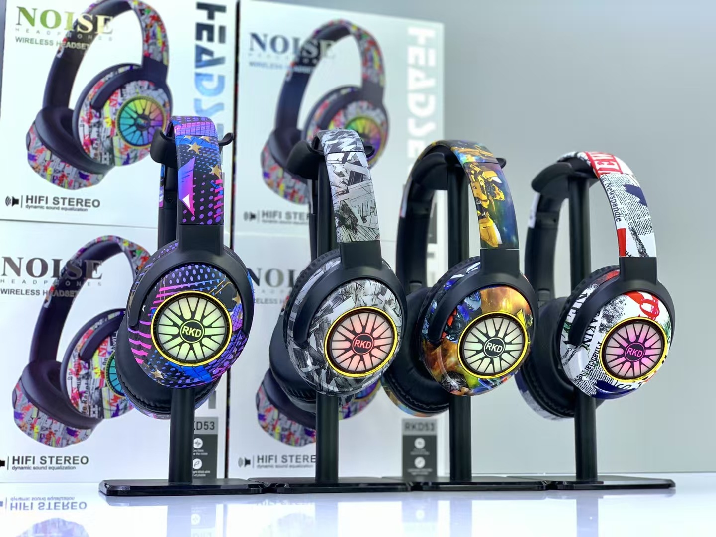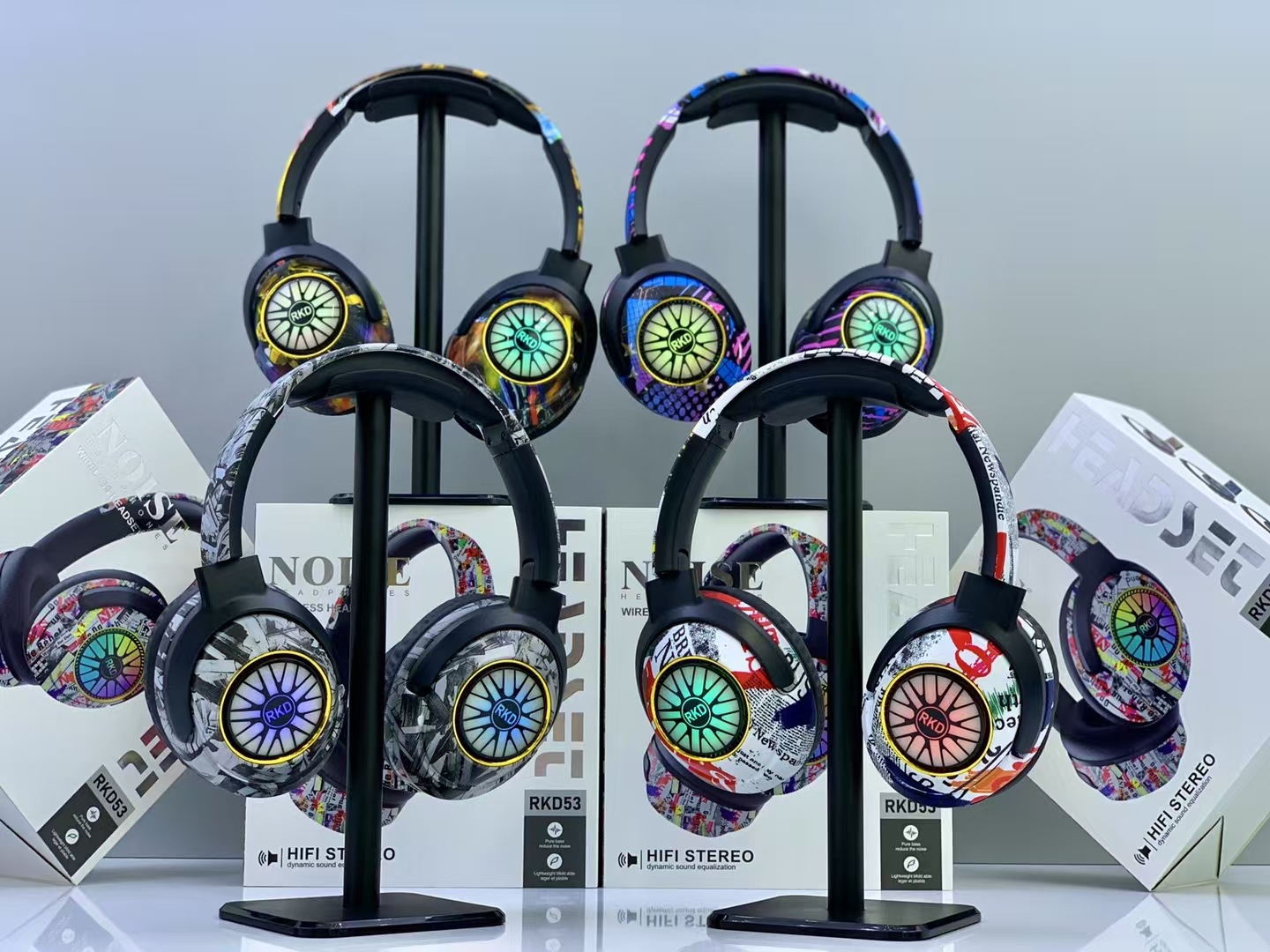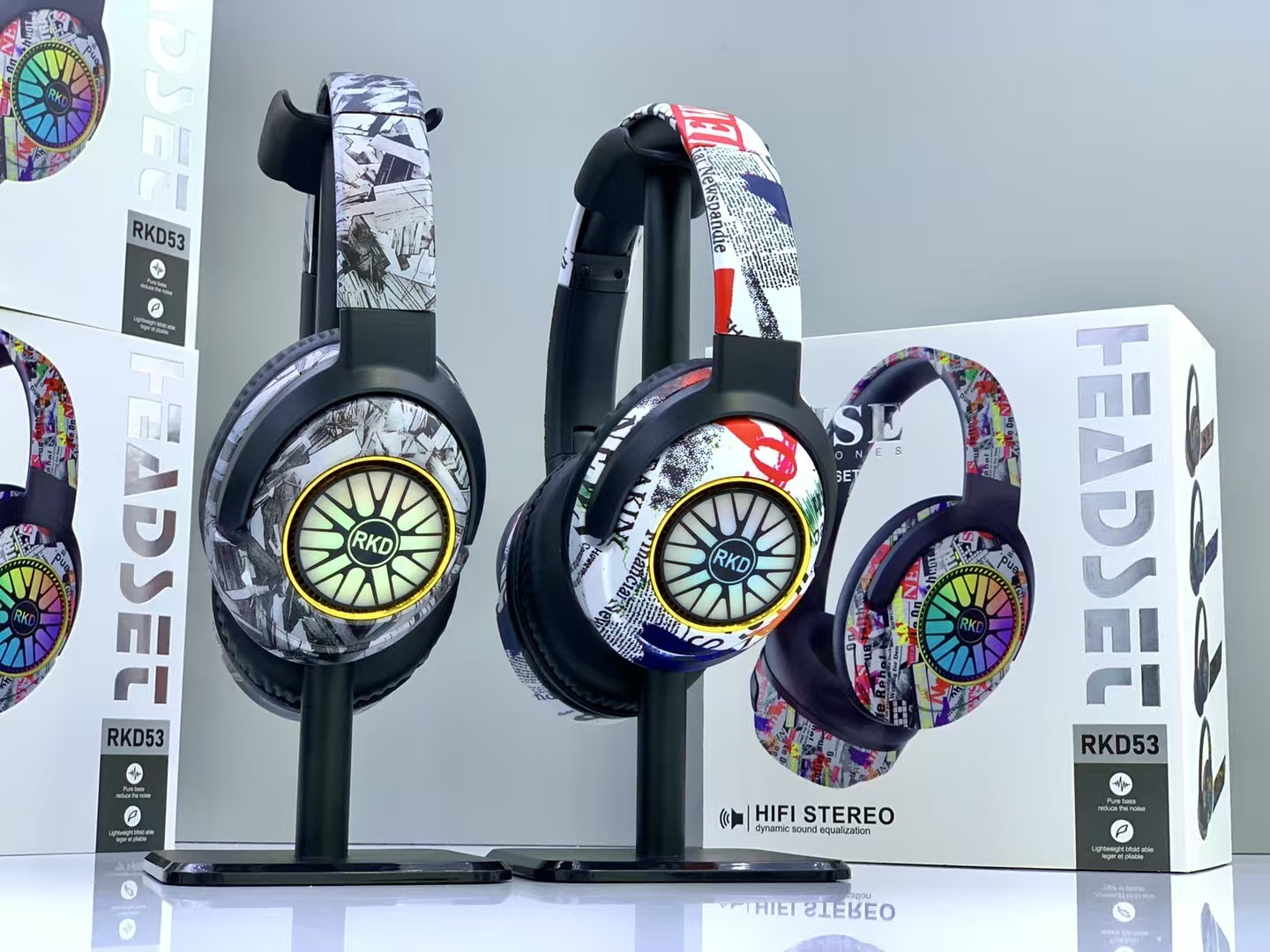RKD53 跨境爆款涂鸦头戴式蓝牙耳机发光无线音乐运动耳麦通用耳机