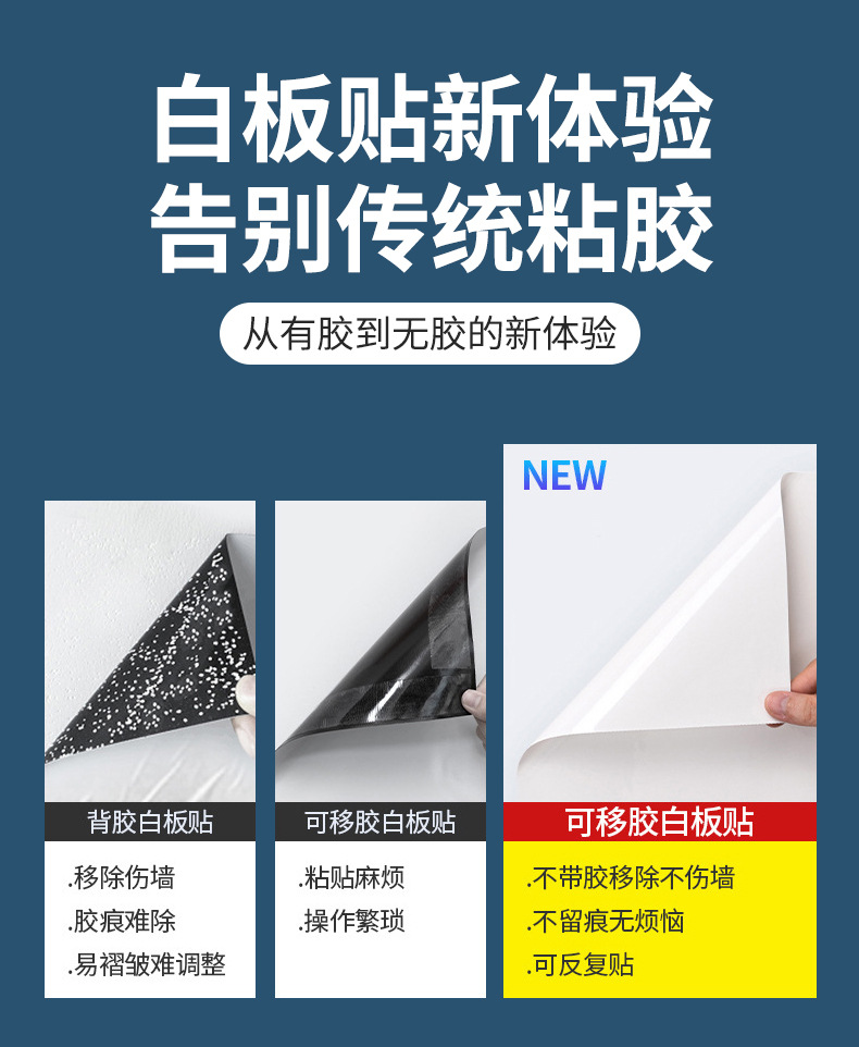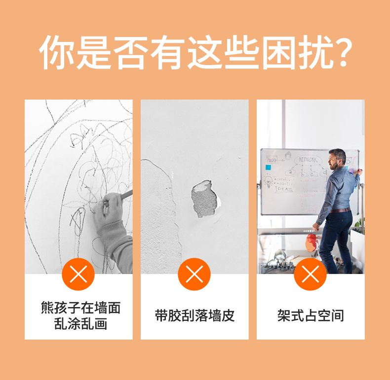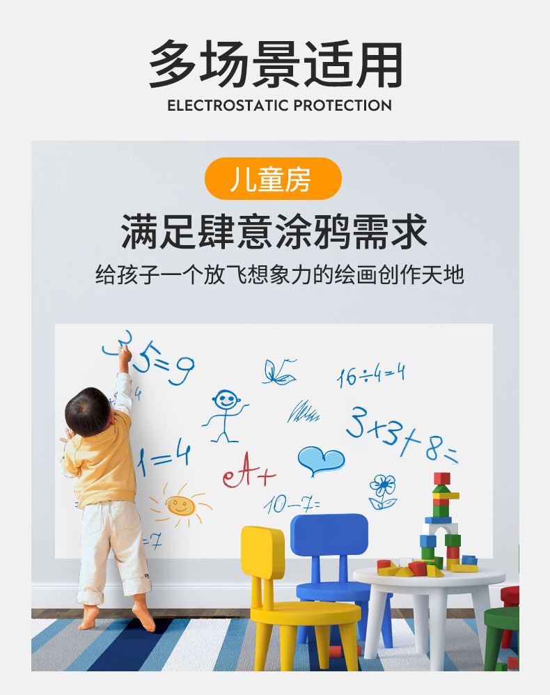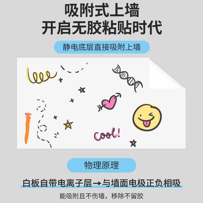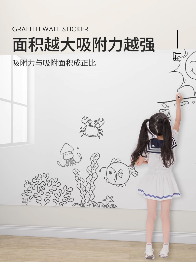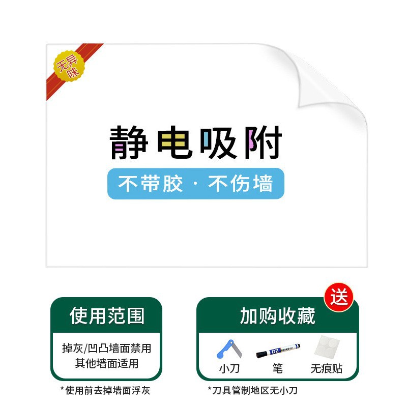 白板墙贴不伤墙教学儿童家用涂鸦画板可移除可擦写字板静电 白板