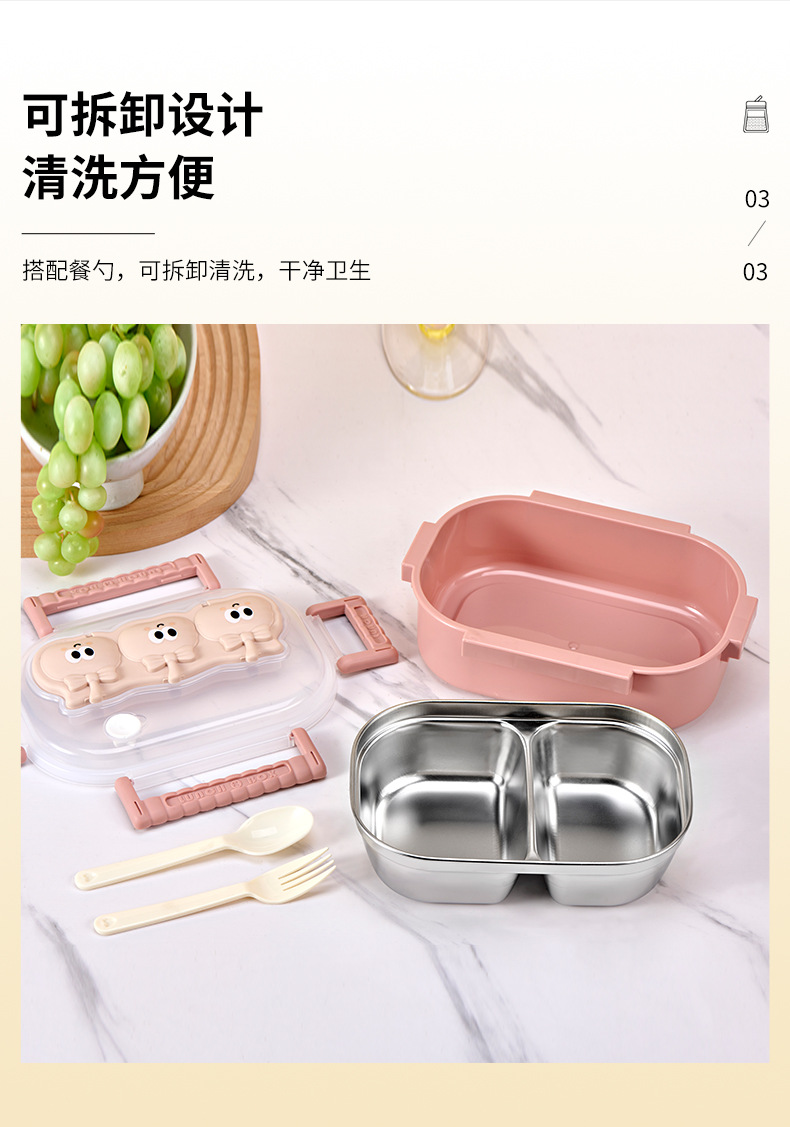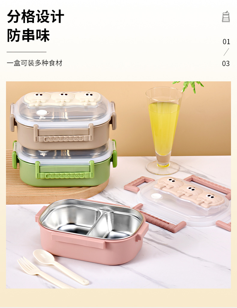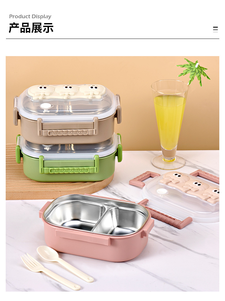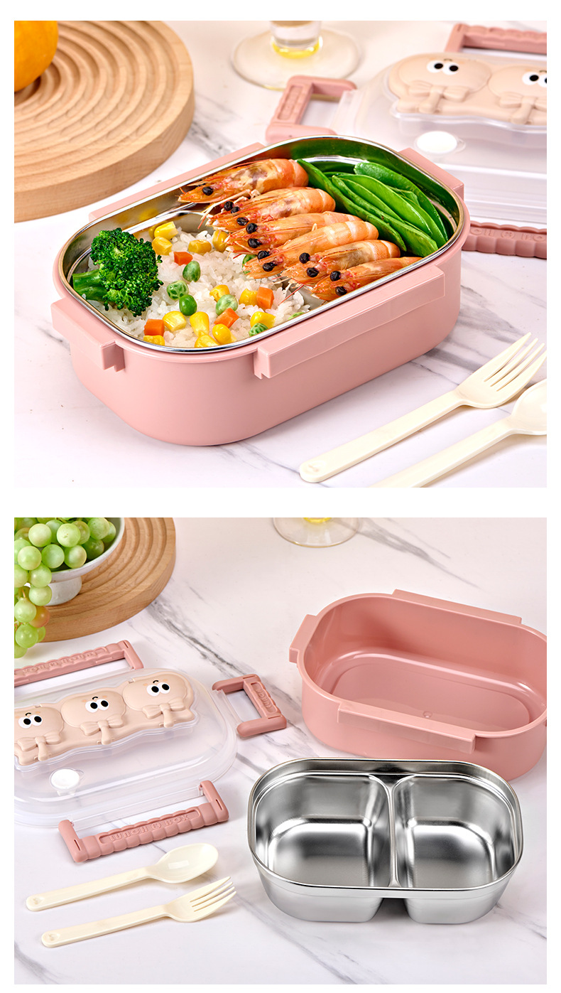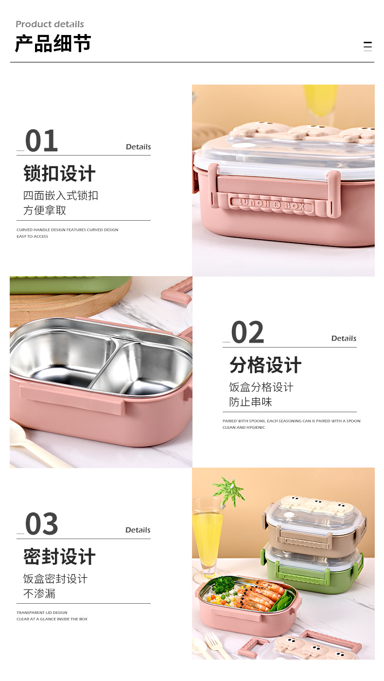不锈钢卡通保温饭盒学生食品级餐盘分格盒可微波炉加热午餐盒批发