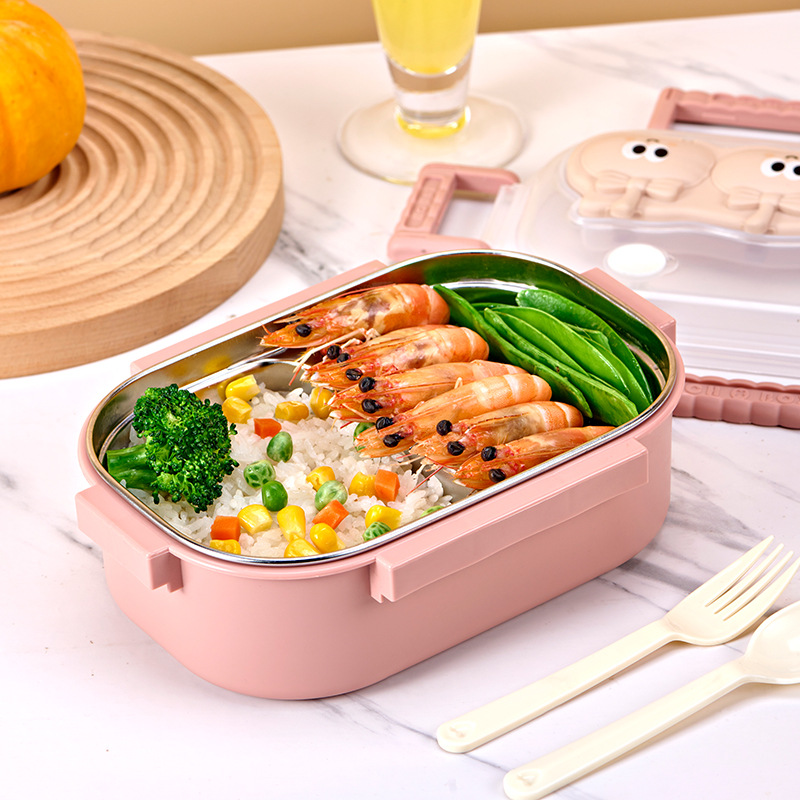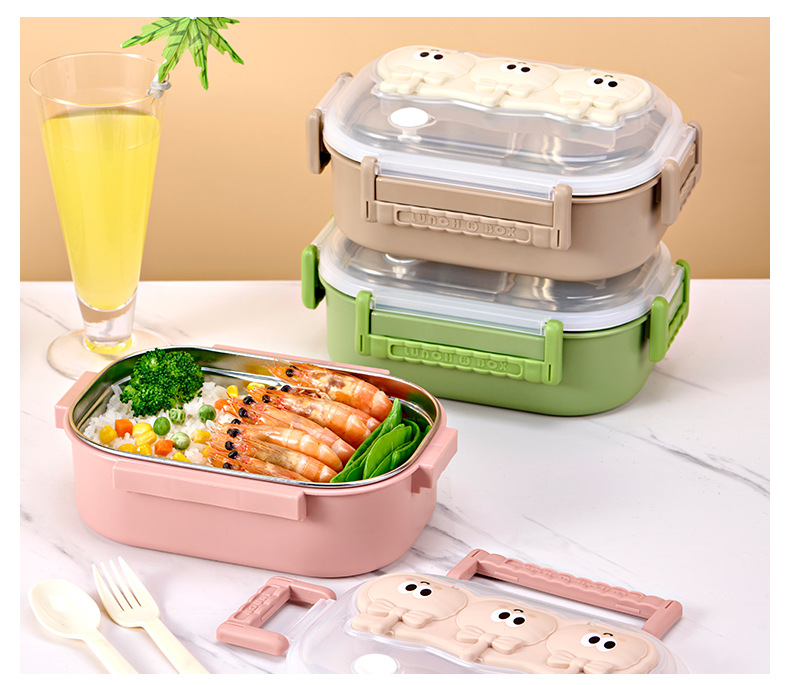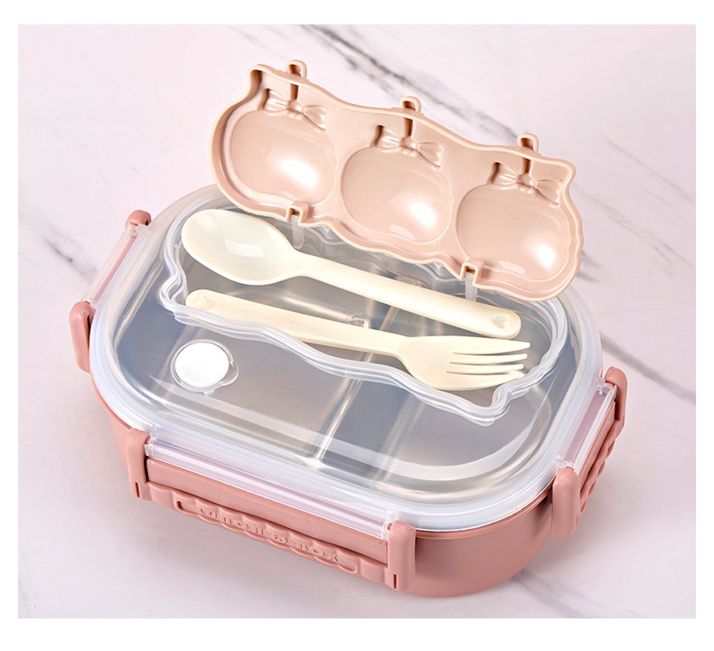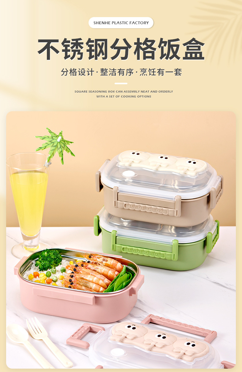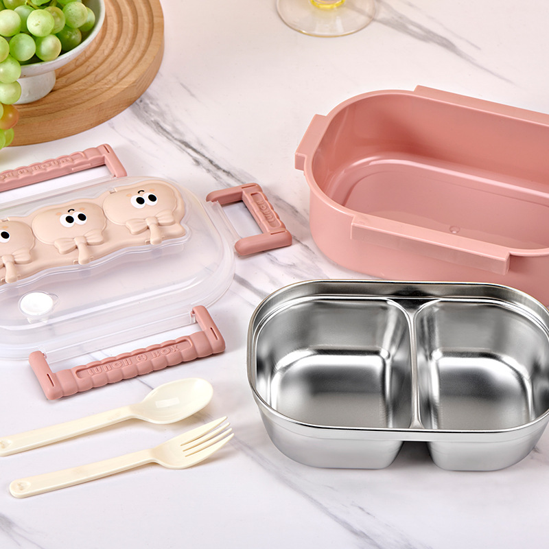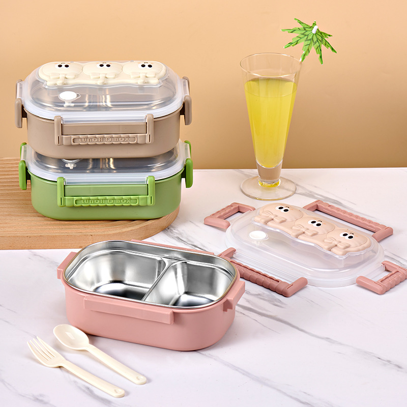 不锈钢卡通保温饭盒学生食品级餐盘分格盒可微波炉加热午餐盒批发