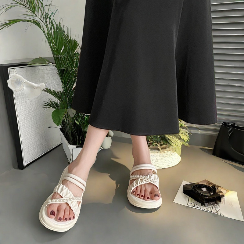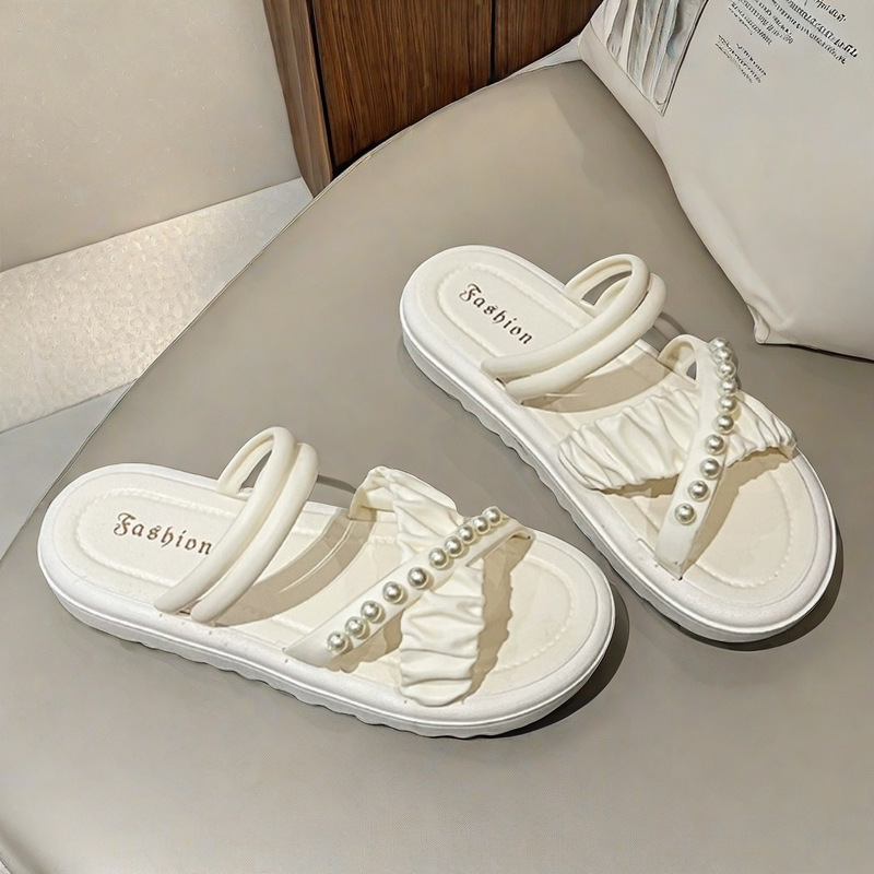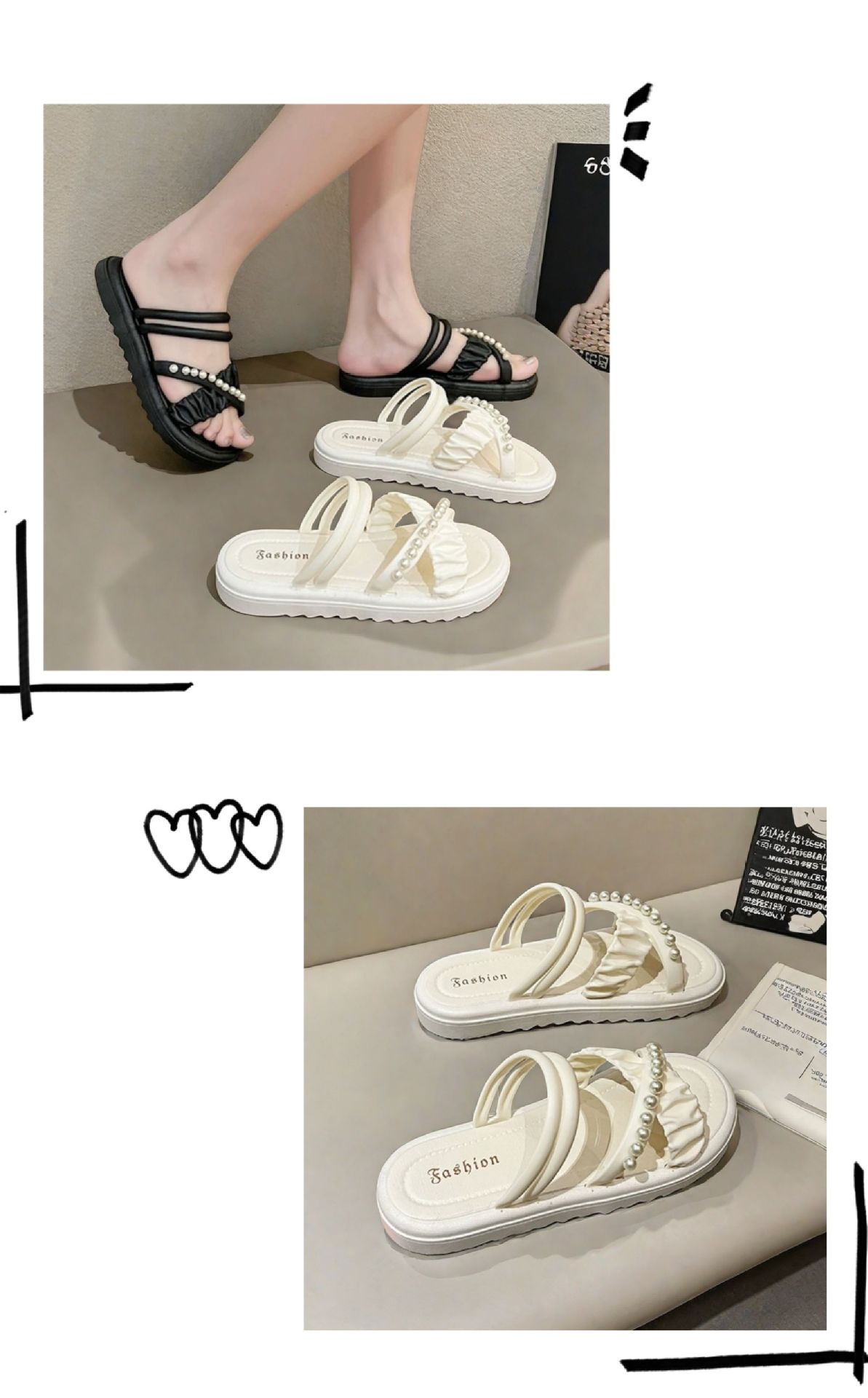 珍珠拖鞋女新款夏季百搭女士平底防滑外穿仙女两种穿法时尚凉拖鞋