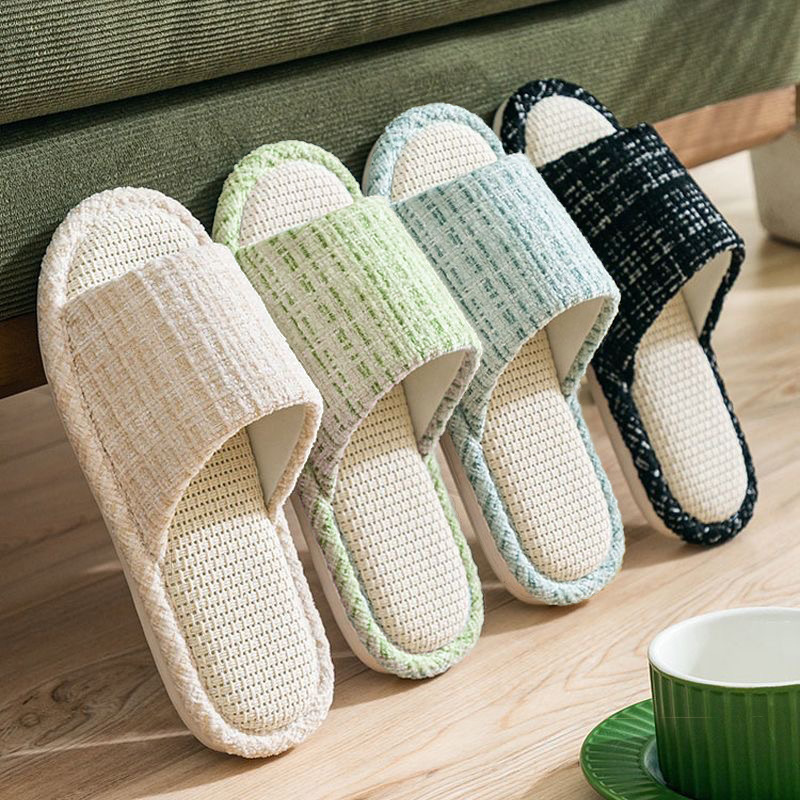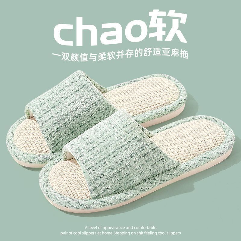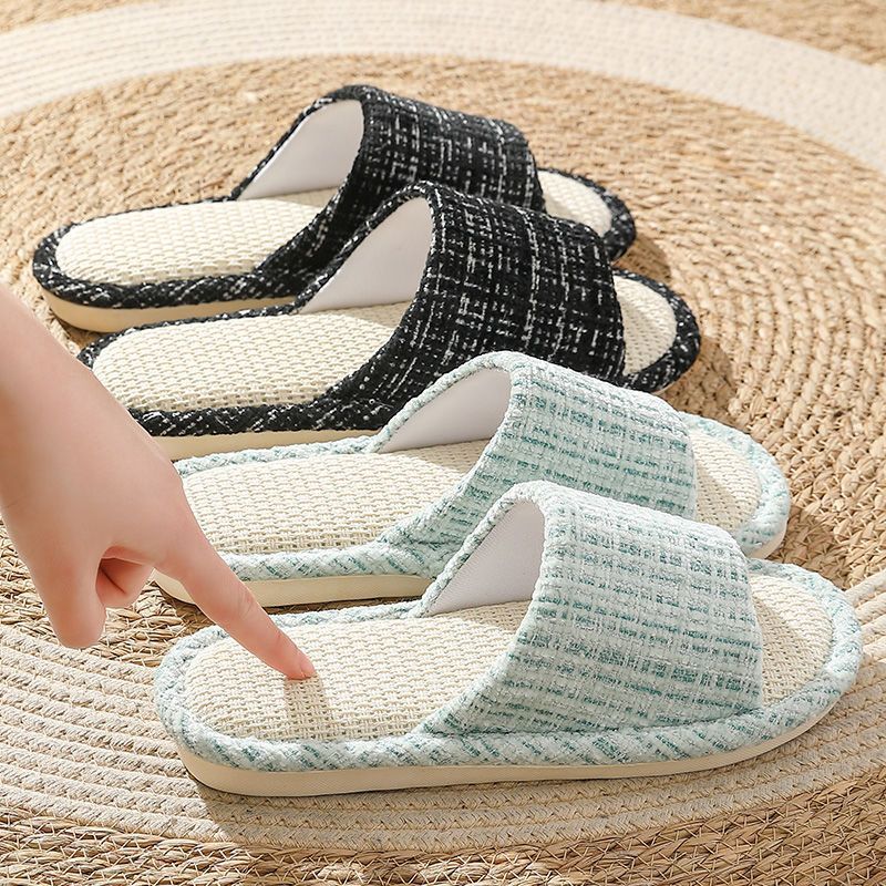 linen slippers for women spring and autumn silent anti-slip new home japanese style cotton soft bottom deodorant sandals for lovers in four seasons