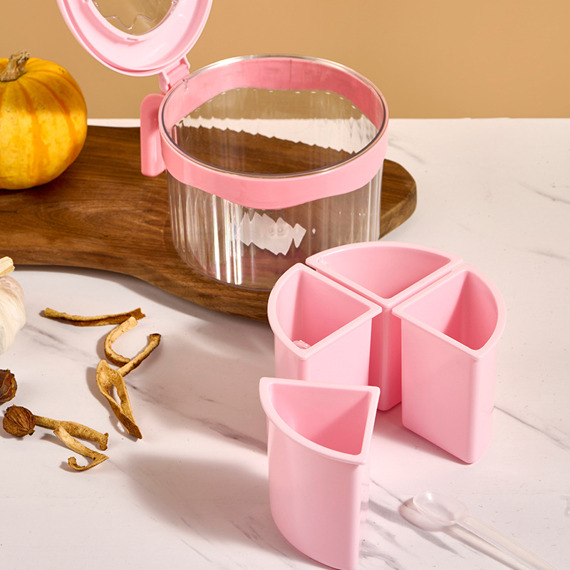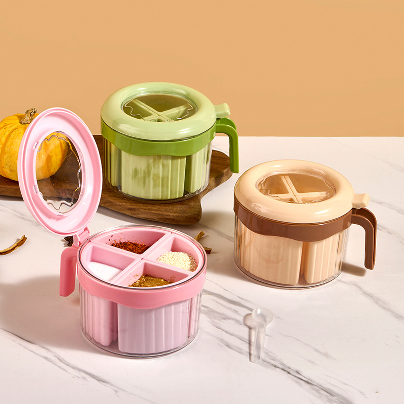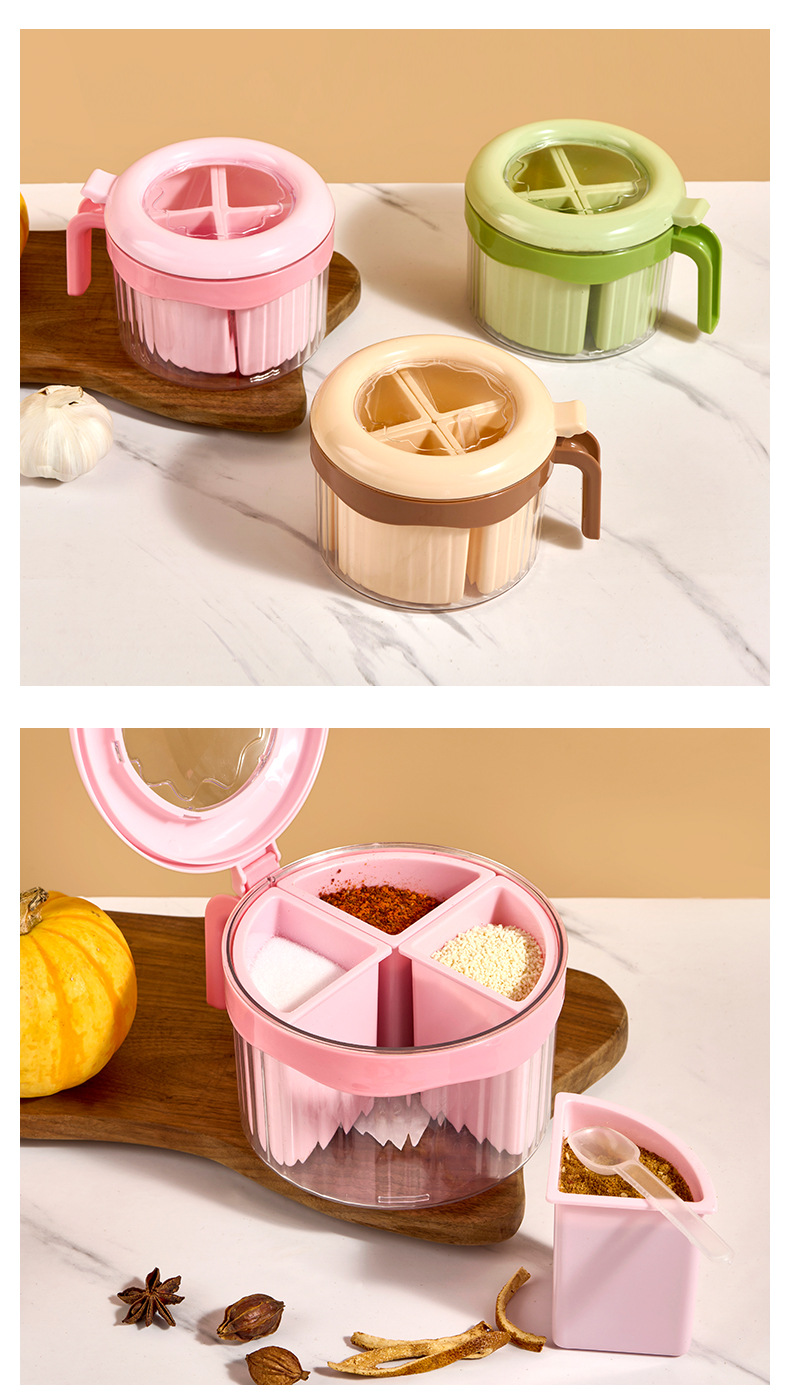 家用四格调味盒 厨房调味罐组合装 塑料一体多格盐味精胡椒佐料瓶