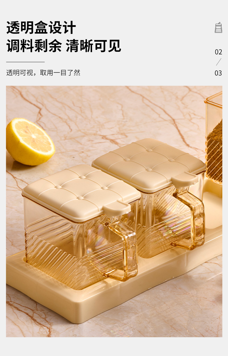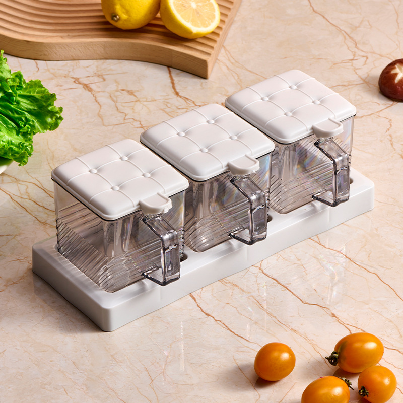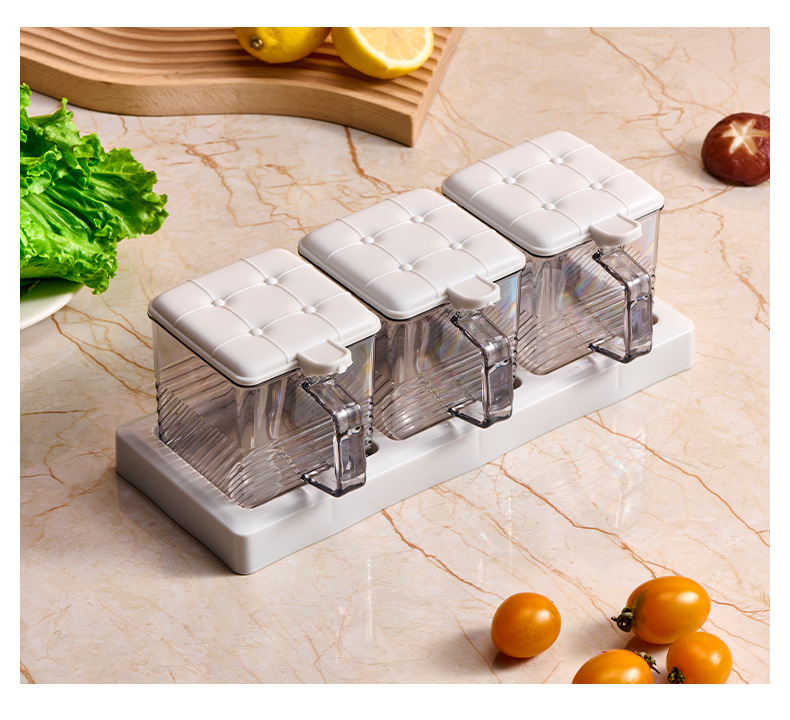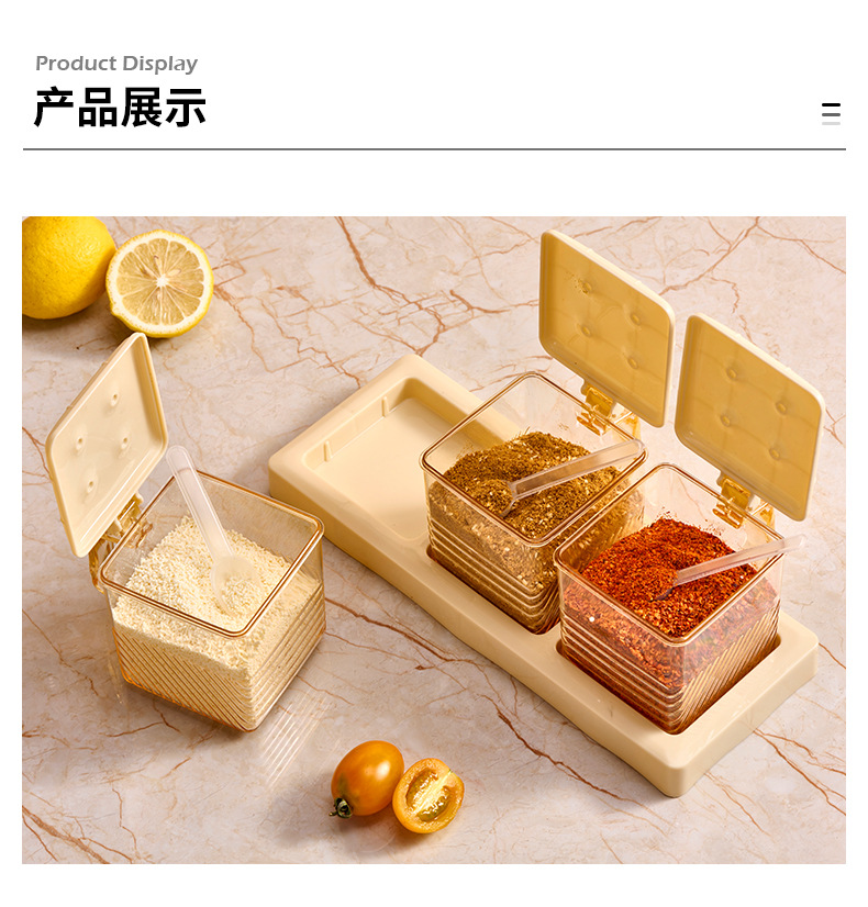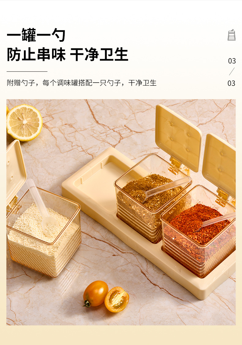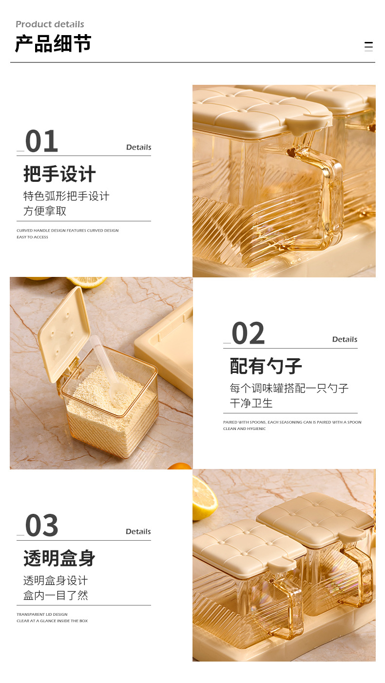 日式弹盖防潮调料罐家用透明带勺子调料盒塑料厨房盐糖密封调味罐