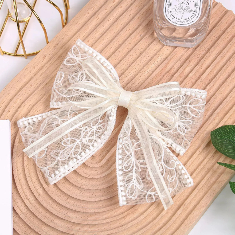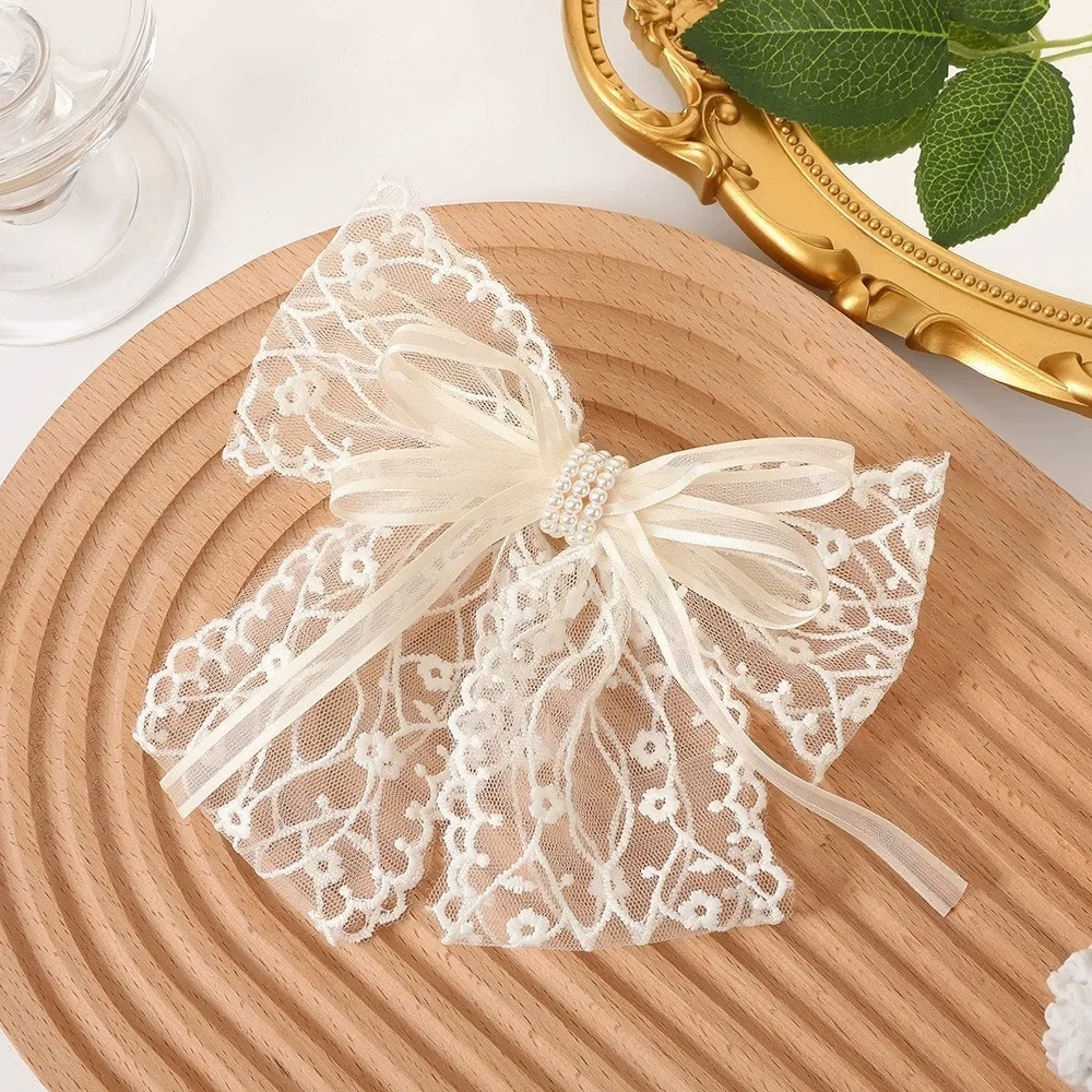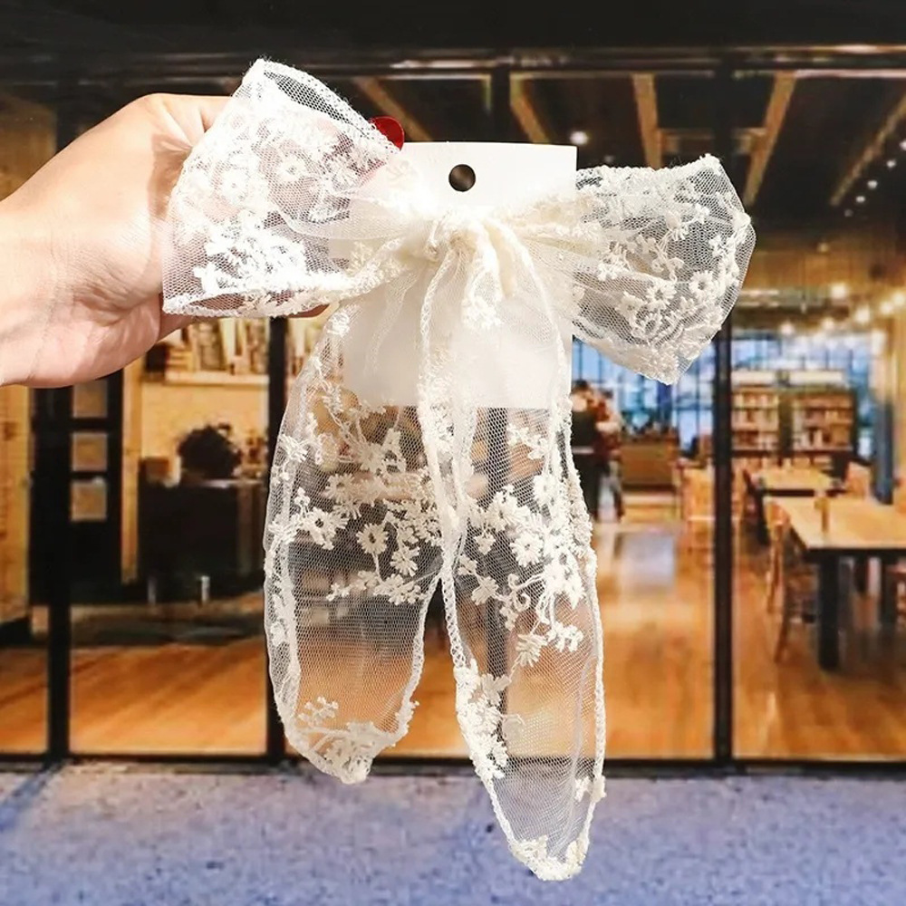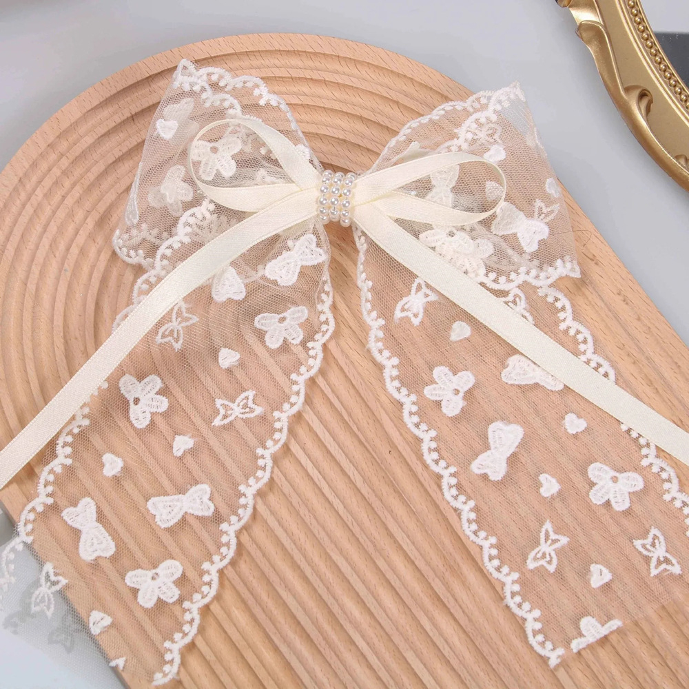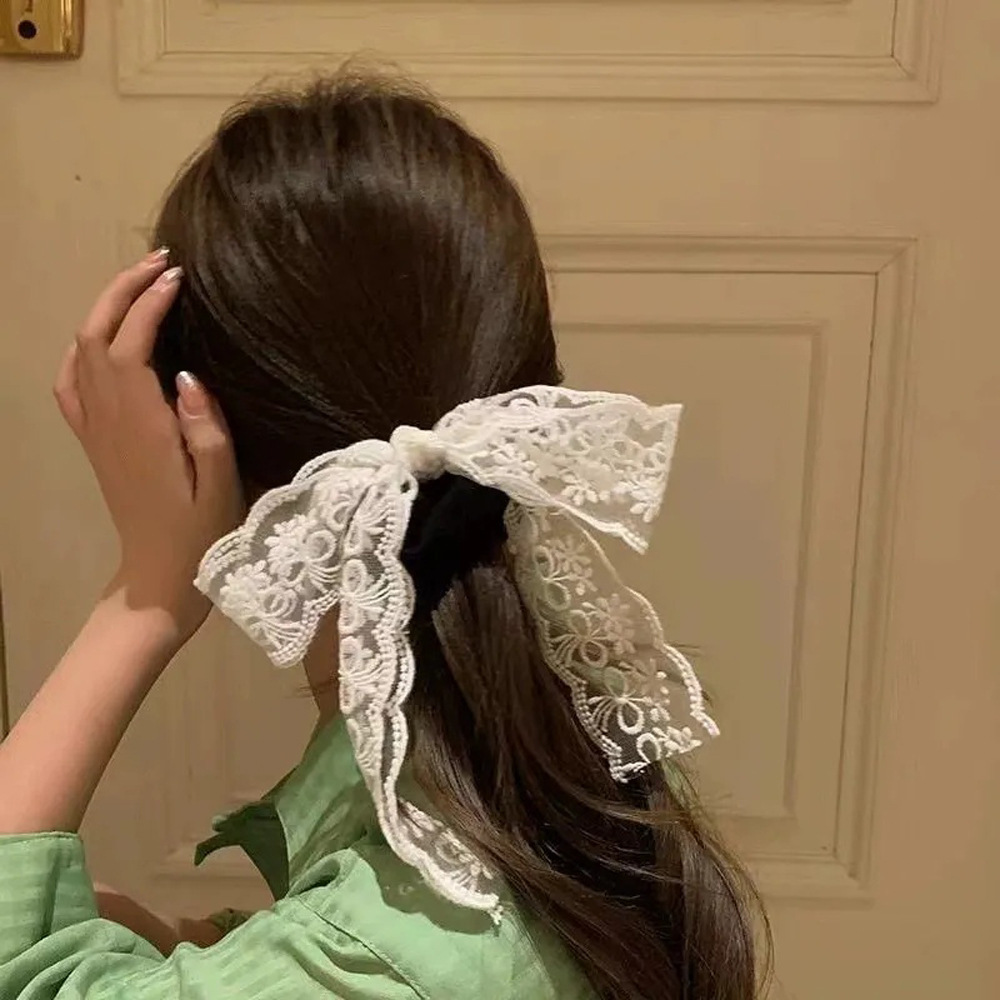 超仙蕾丝蝴蝶结飘带发夹发饰网红甜美后脑勺夹子头饰发卡弹簧夹