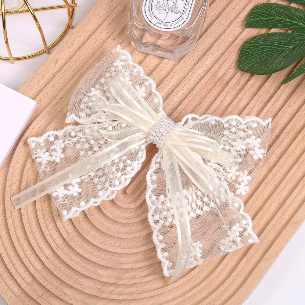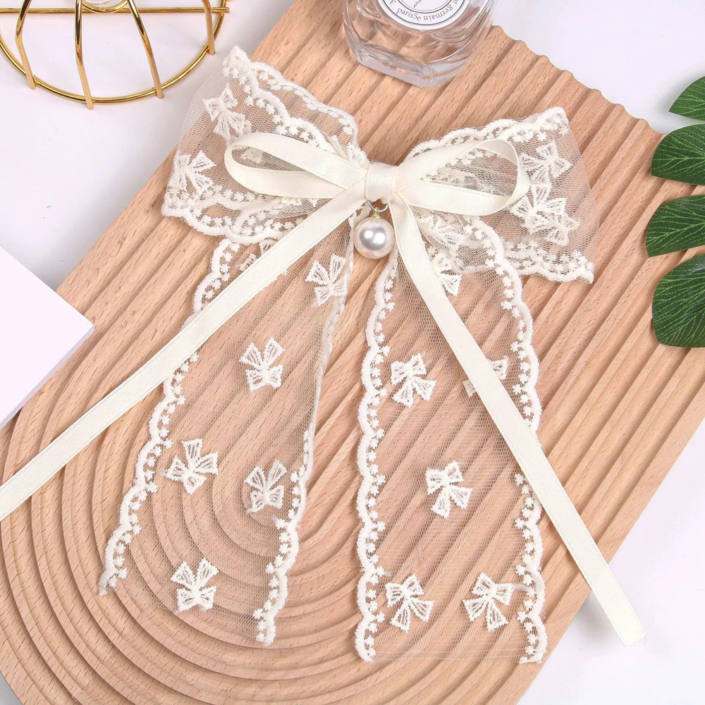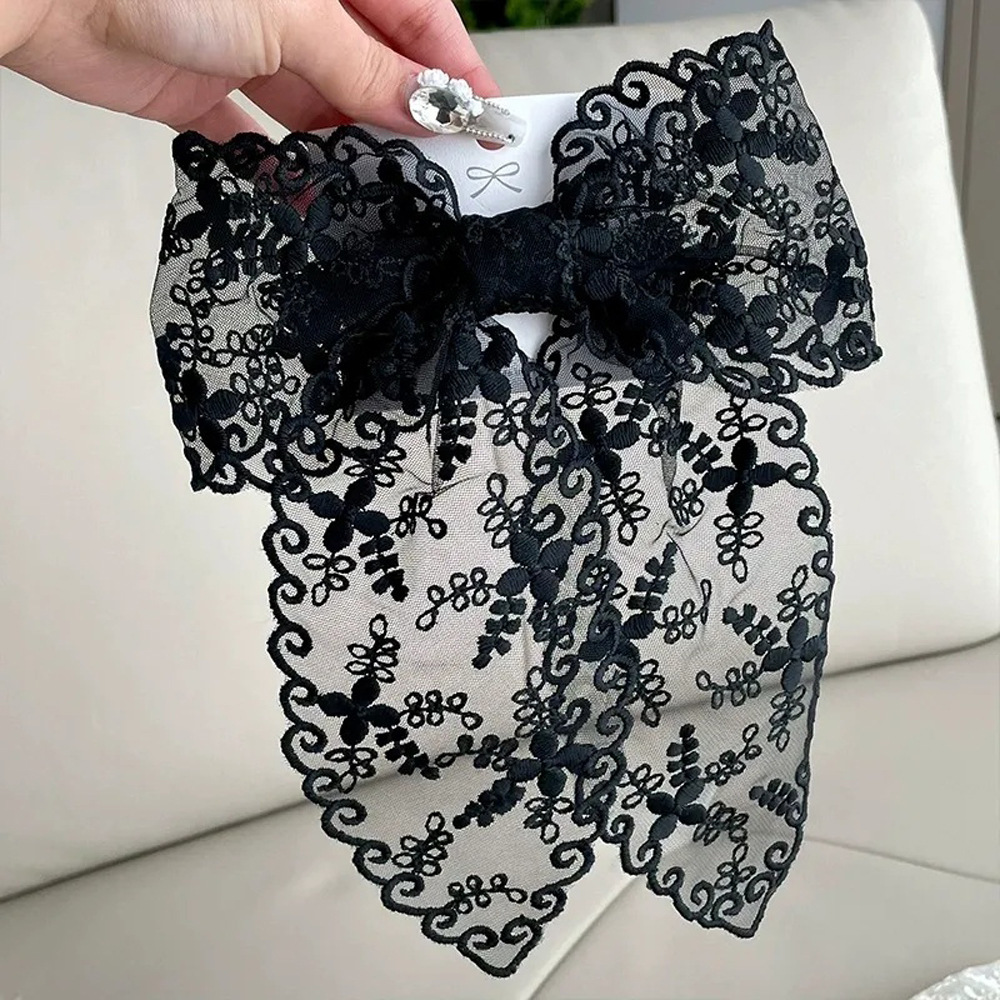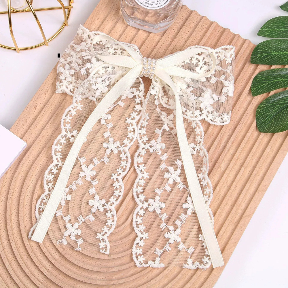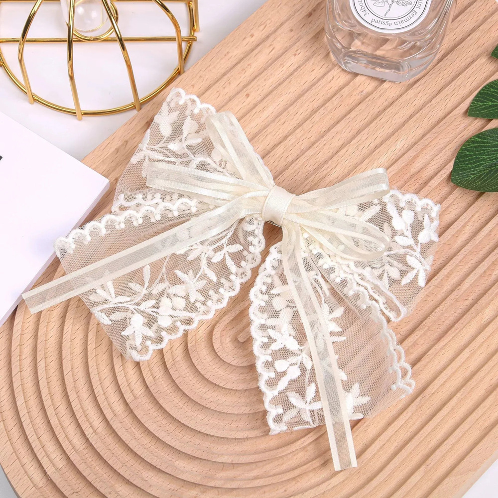 超仙蕾丝蝴蝶结飘带发夹发饰网红甜美后脑勺夹子头饰发卡弹簧夹