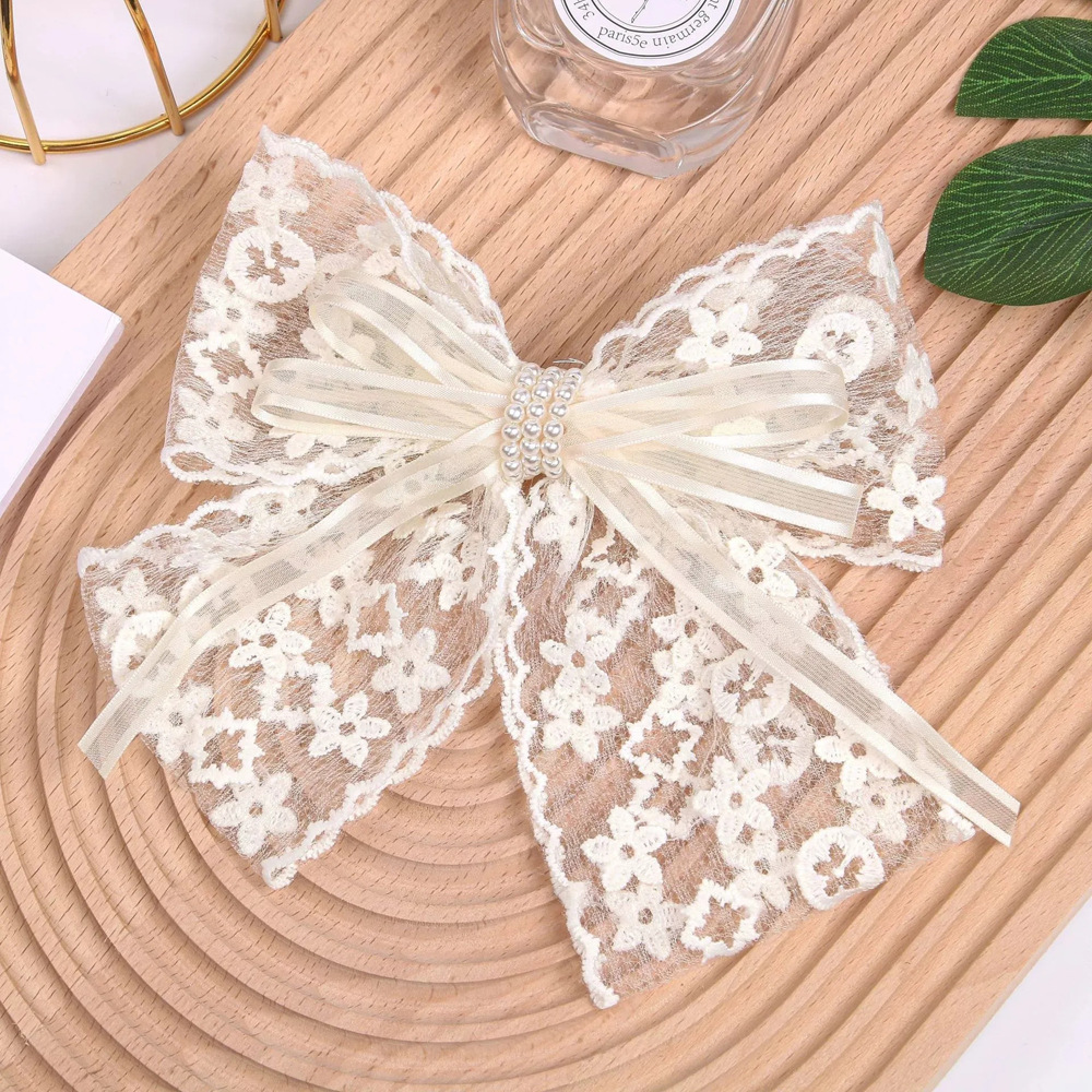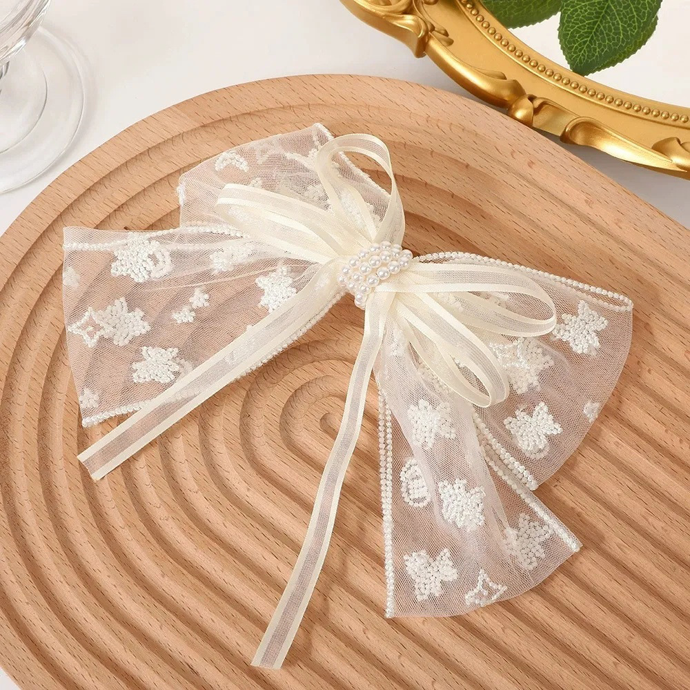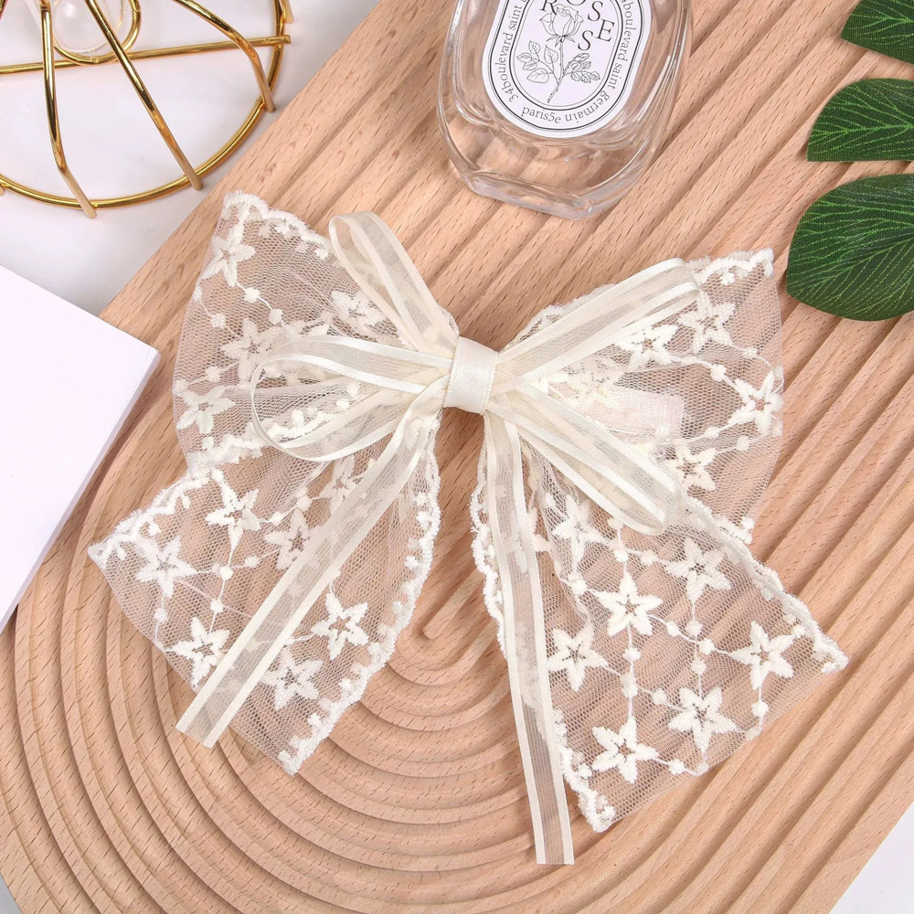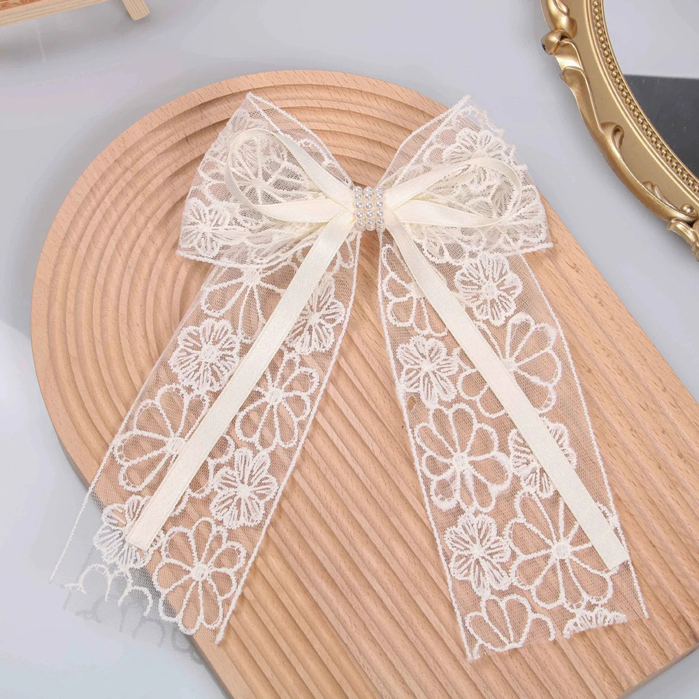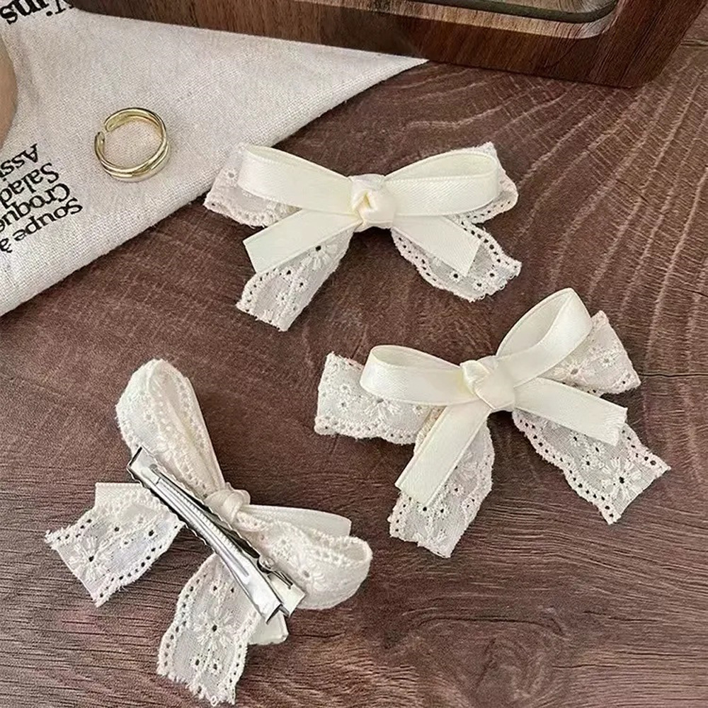 超仙蕾丝蝴蝶结飘带发夹发饰网红甜美后脑勺夹子头饰发卡弹簧夹