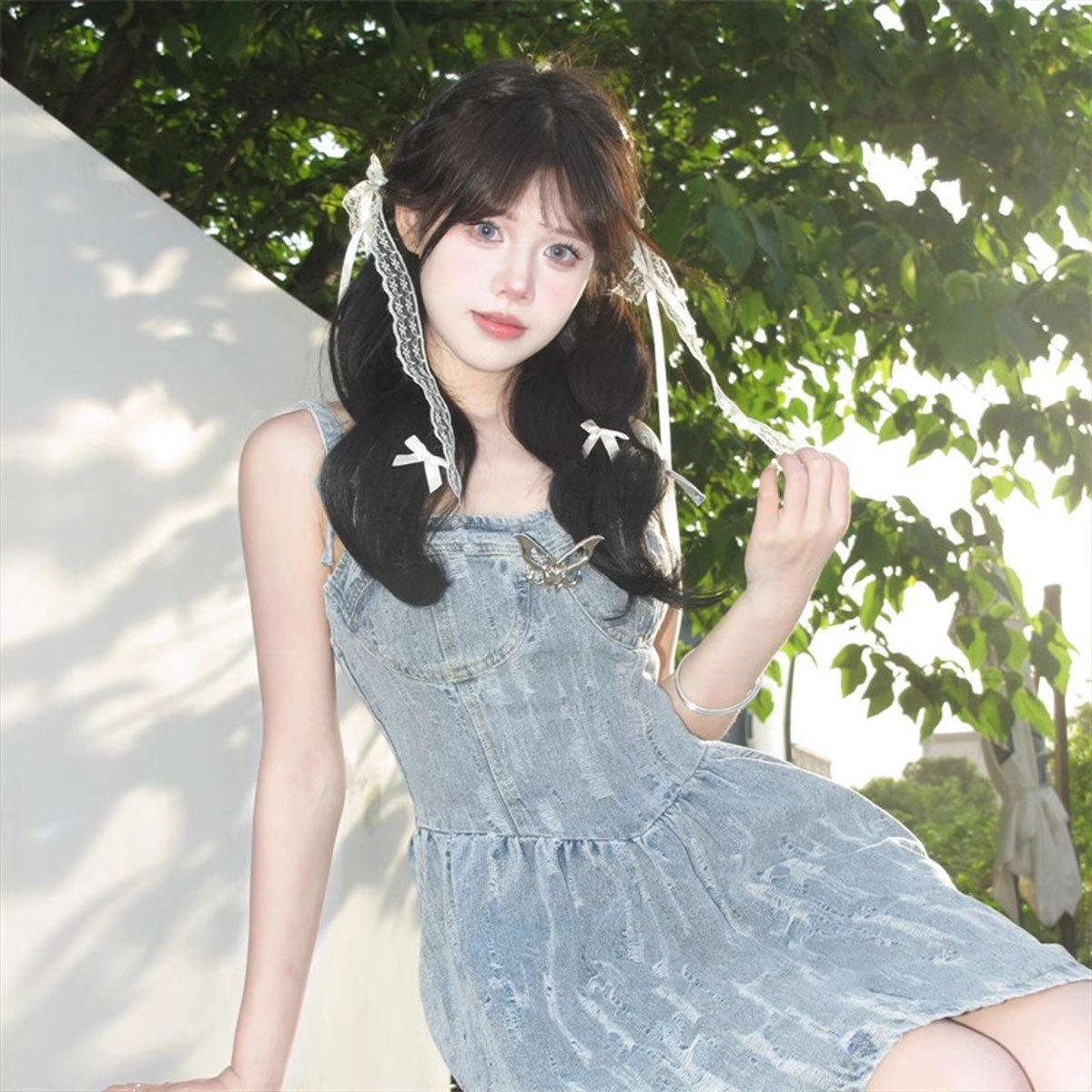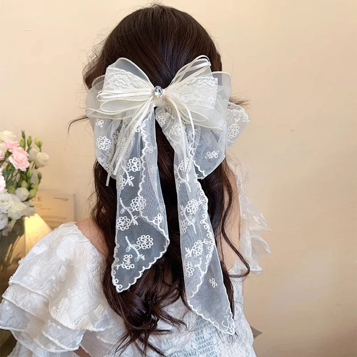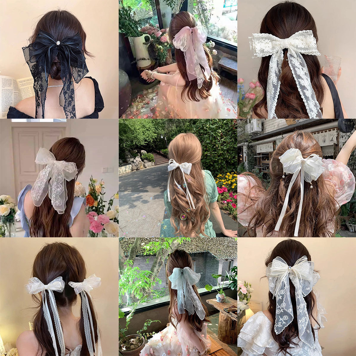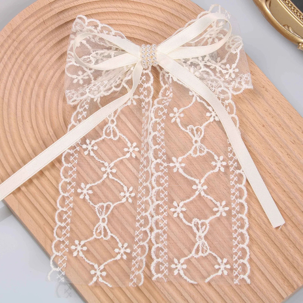 超仙蕾丝蝴蝶结飘带发夹发饰网红甜美后脑勺夹子头饰发卡弹簧夹