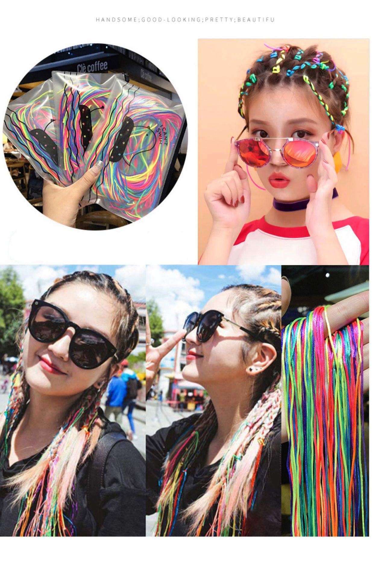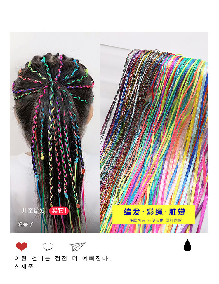 儿童编发彩绳粗细脏脏辫女童七彩色头绳彩带藏族辫子发绳丝带头饰