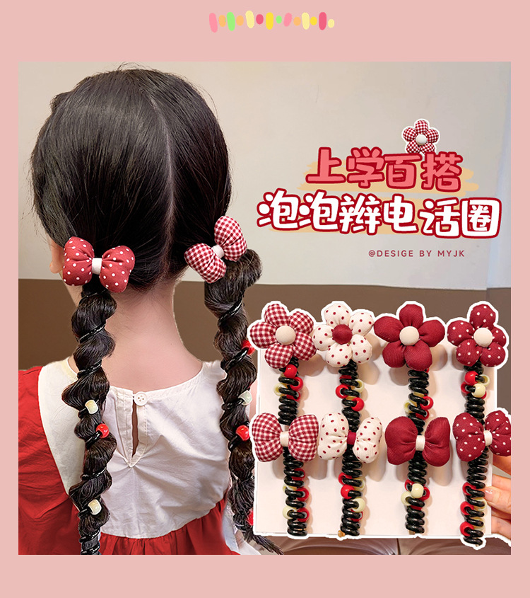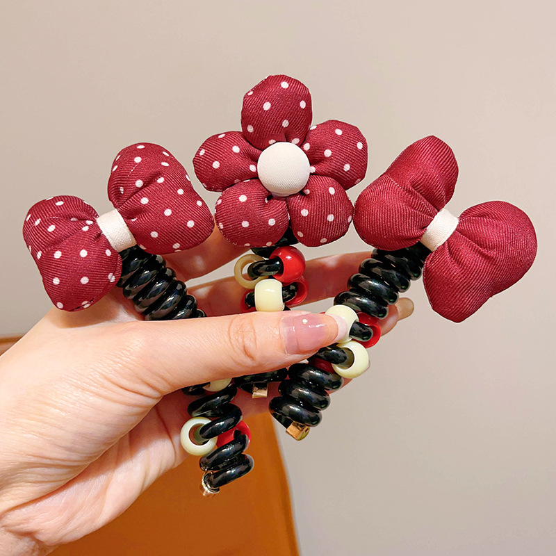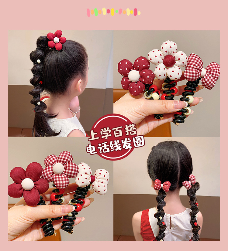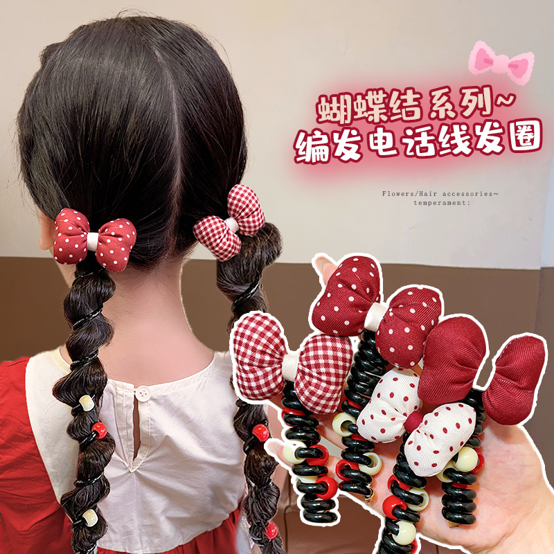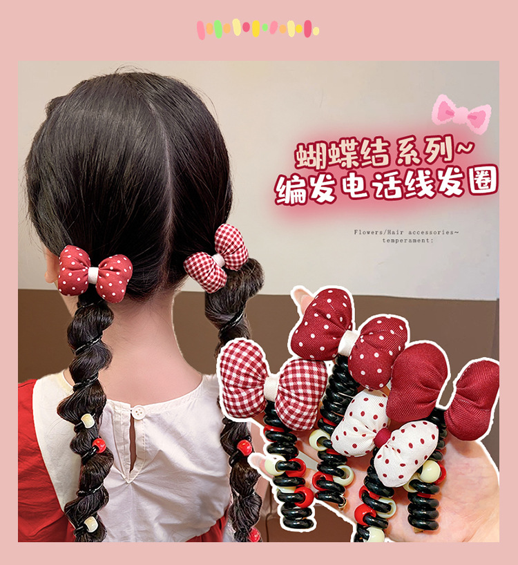 甜美韩系蝴蝶结电话线头绳发圈马尾皮筋不伤发宝宝泡泡辫花朵发绳
