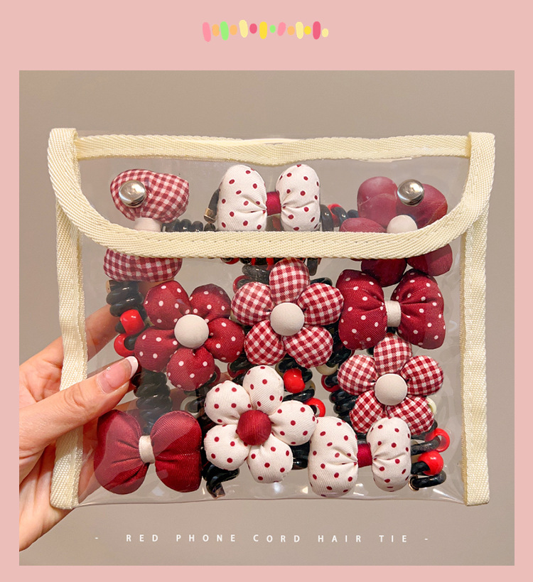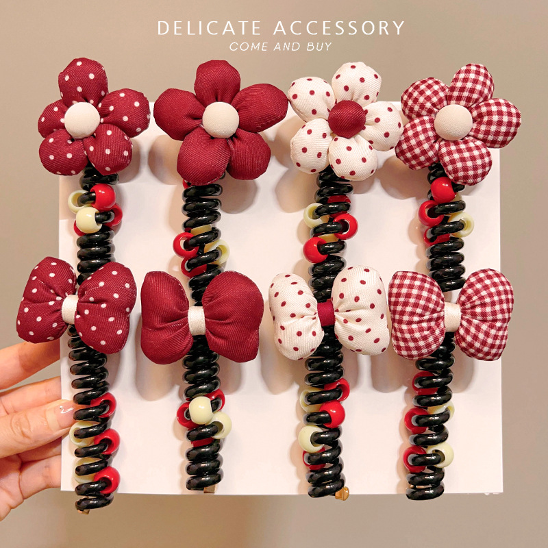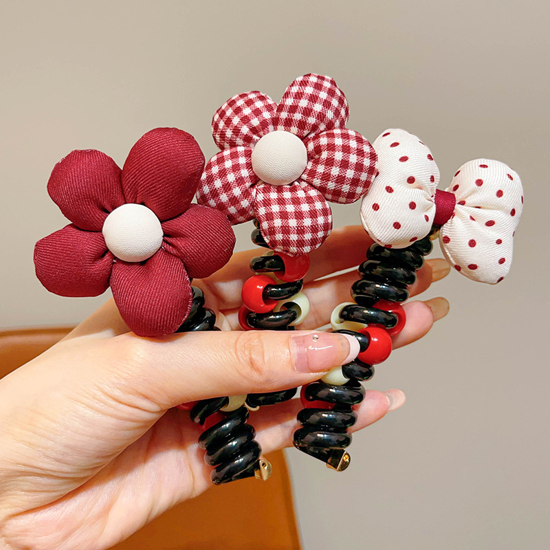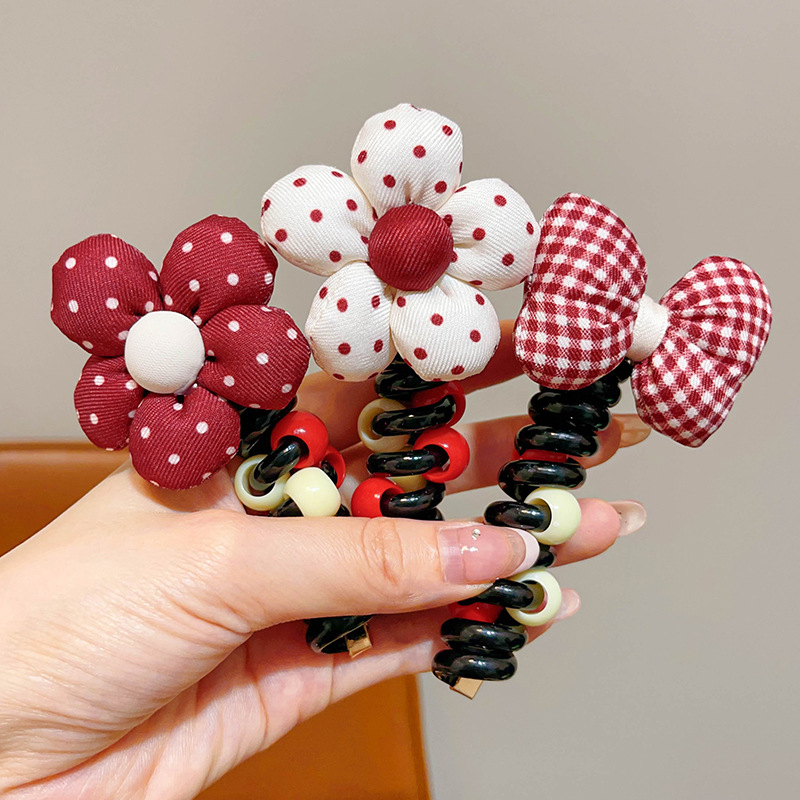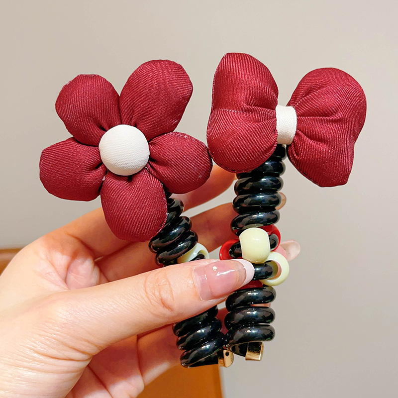 甜美韩系蝴蝶结电话线头绳发圈马尾皮筋不伤发宝宝泡泡辫花朵发绳
