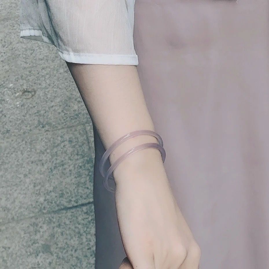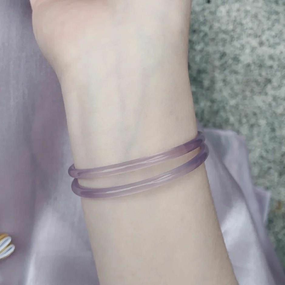 超仙温柔葡萄紫细条手镯叮当镯一步一响玻璃仿玉镯紫色镯子饰品..
