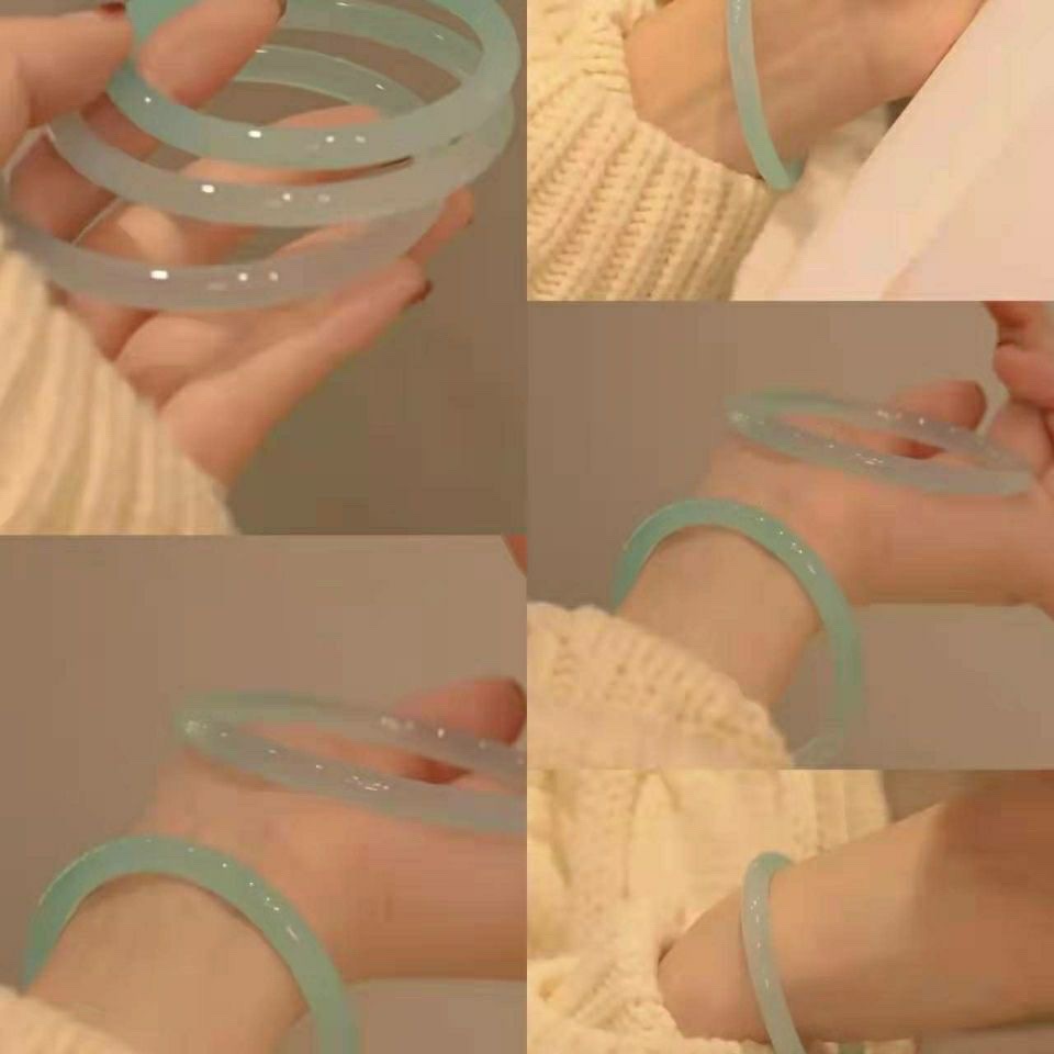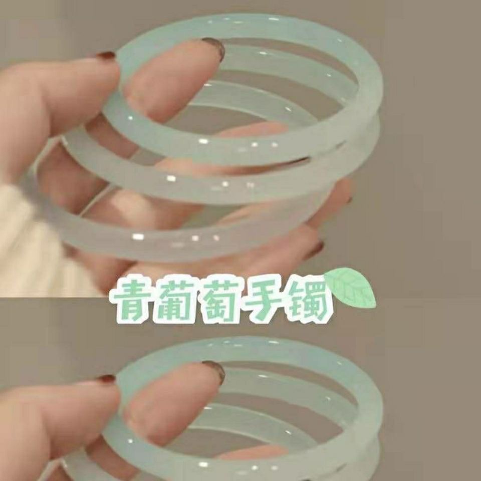 青提子玻璃仿玉叮当铃铛镯细条手镯青葡萄汉服配件少女闺蜜镯子潮