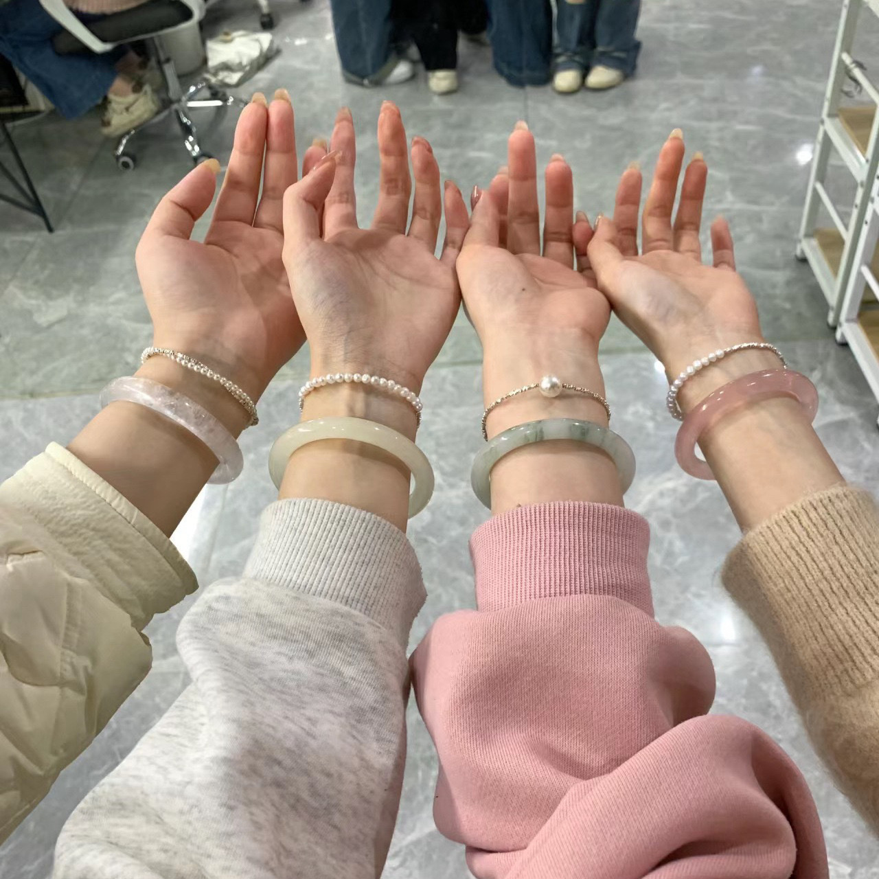 厂家玻璃仿玉10mm粗款圆条手镯一步一响叮当镯闺蜜款女镯小红书潮