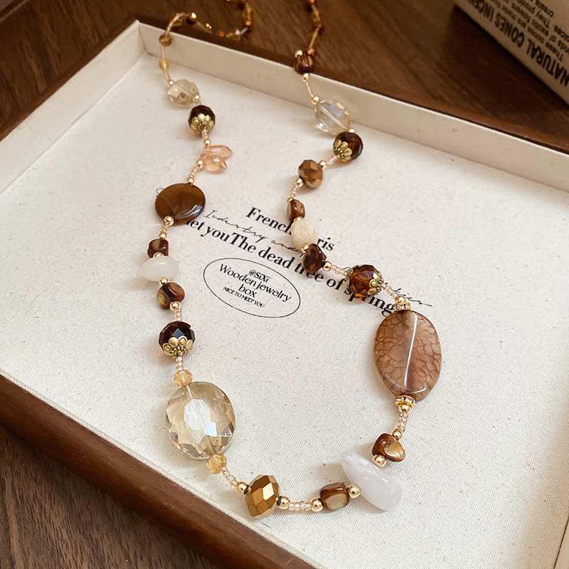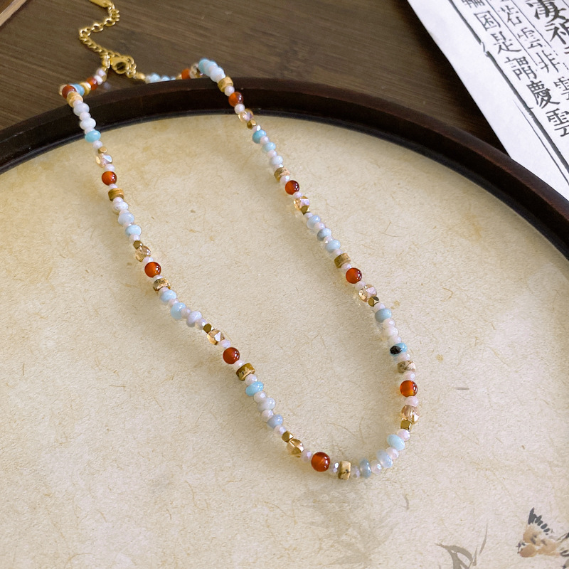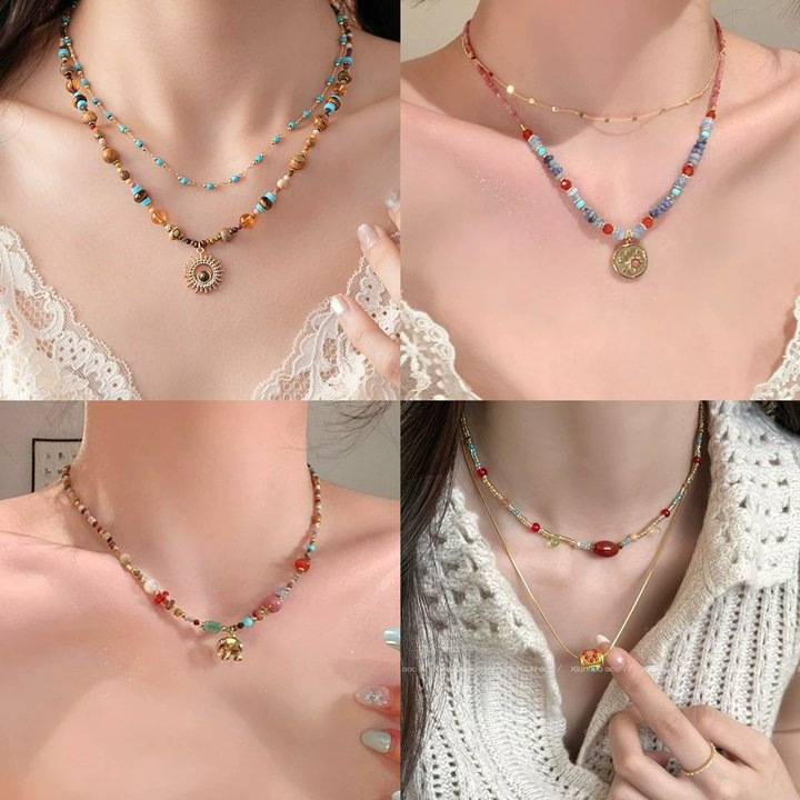 饰品珠子项链串珠民族风配饰波西米亚复古叠戴项链锁骨链太阳吊坠