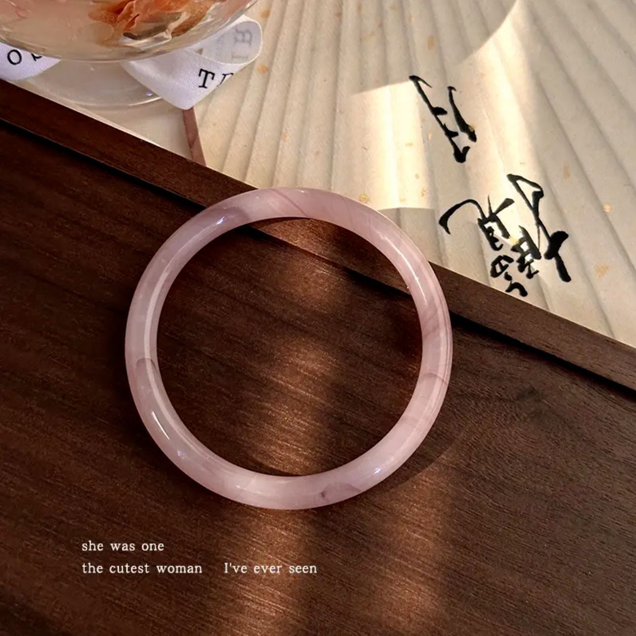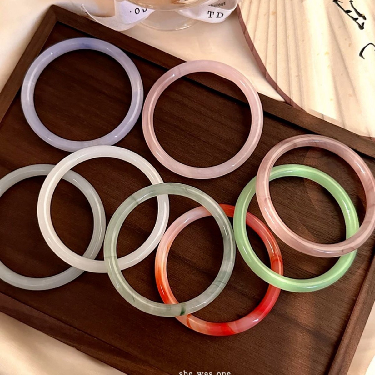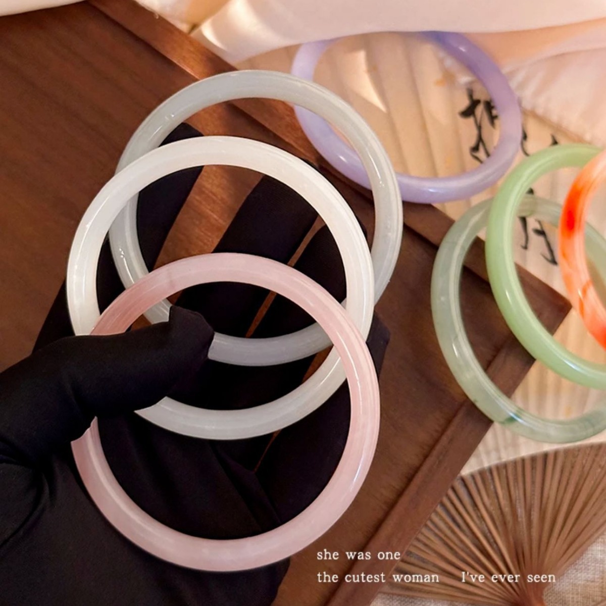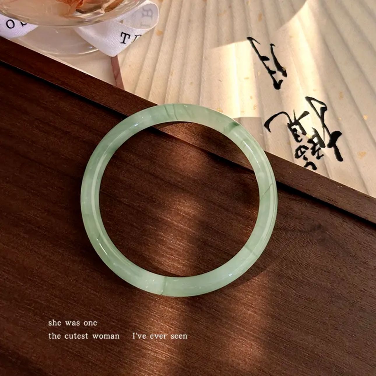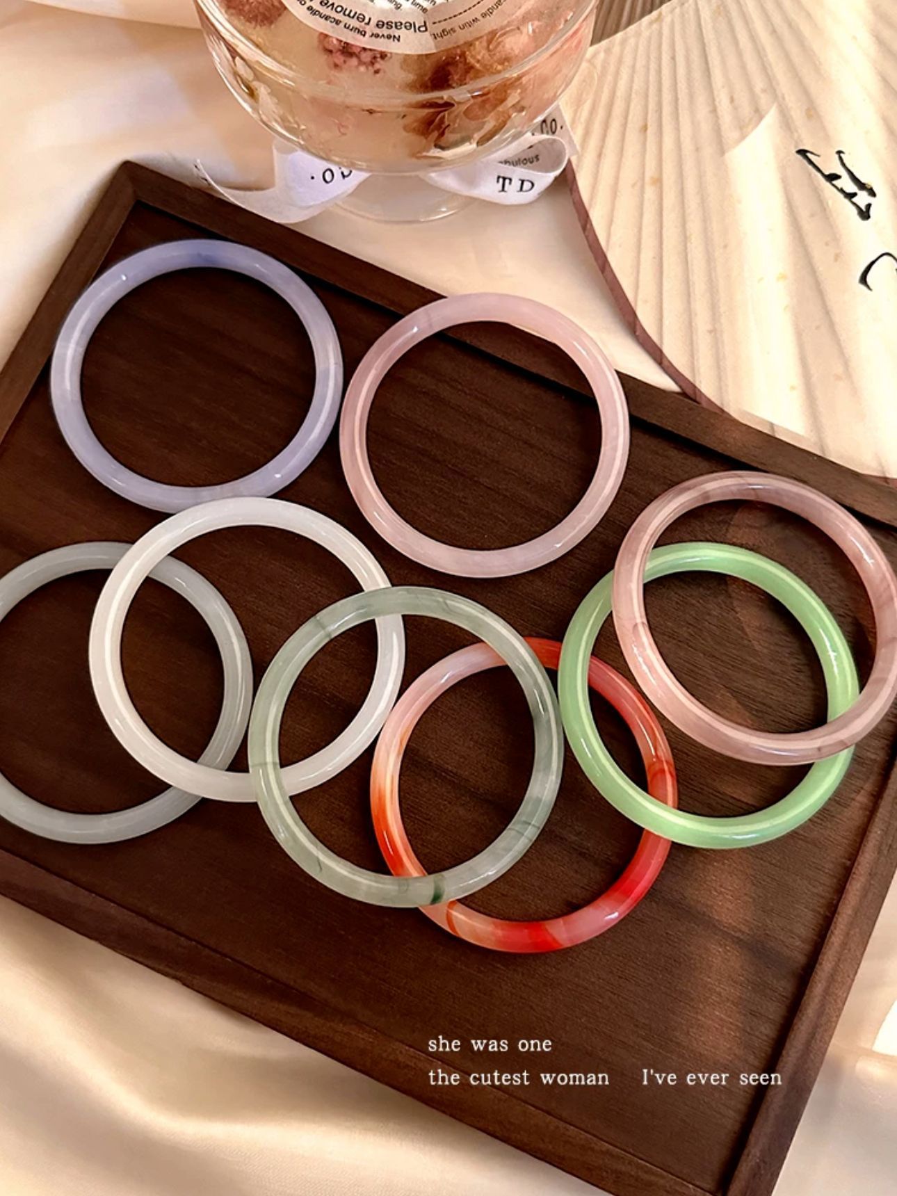 小红书仿玉同款叮当圆条粗款玻璃叮当手镯镯闺蜜干枯玫瑰汉服女潮