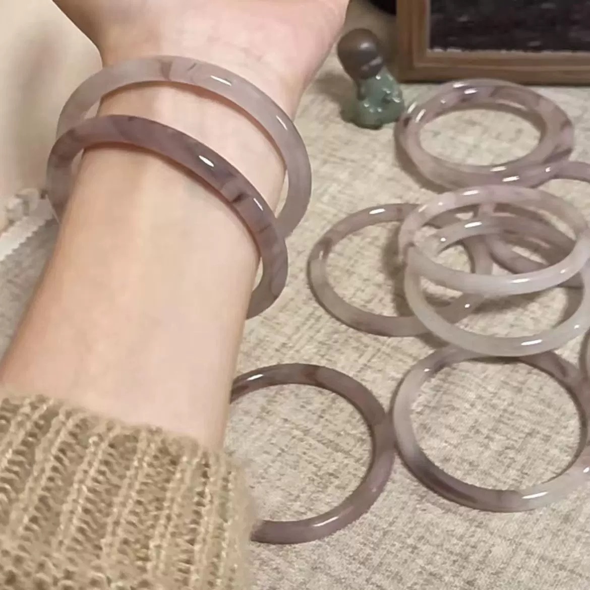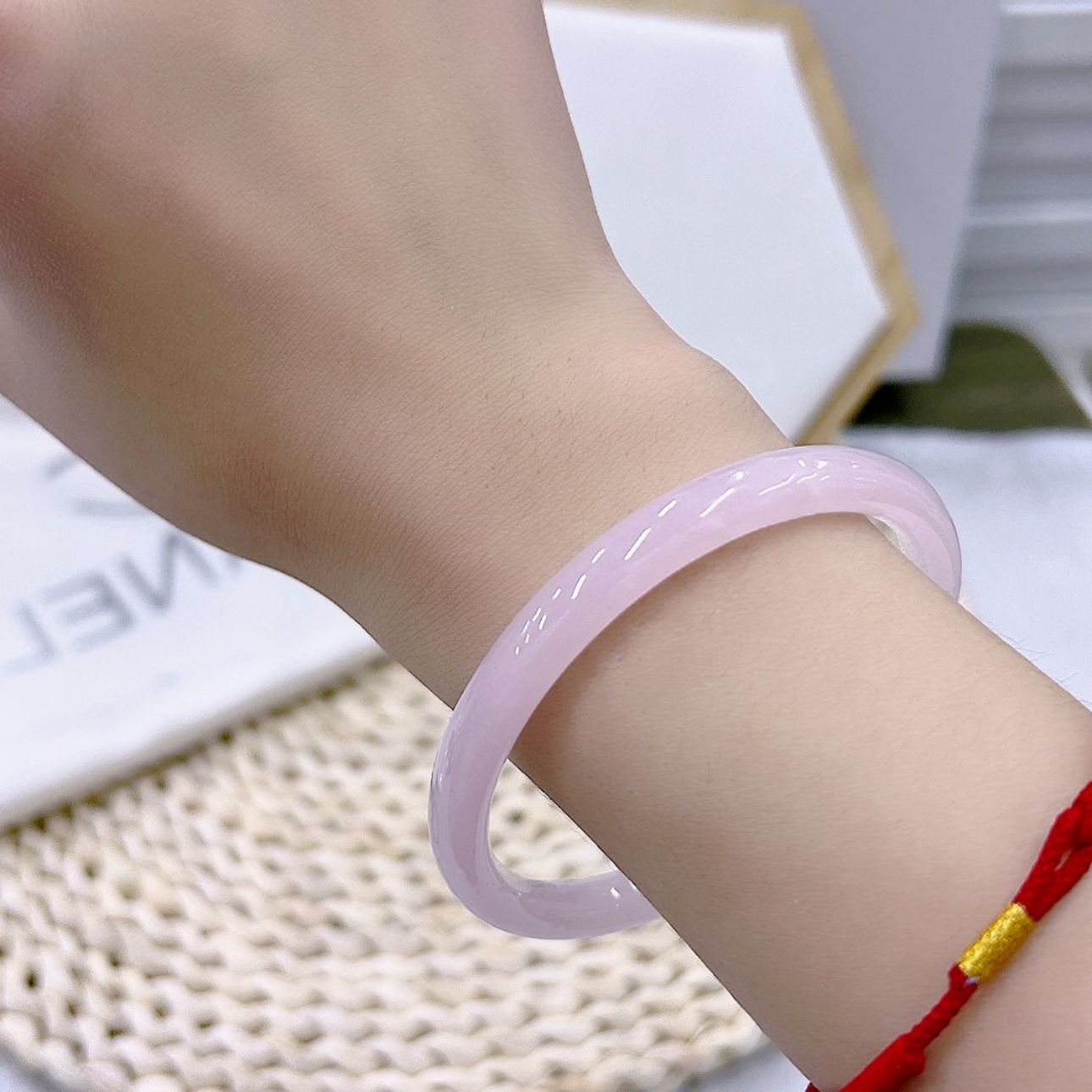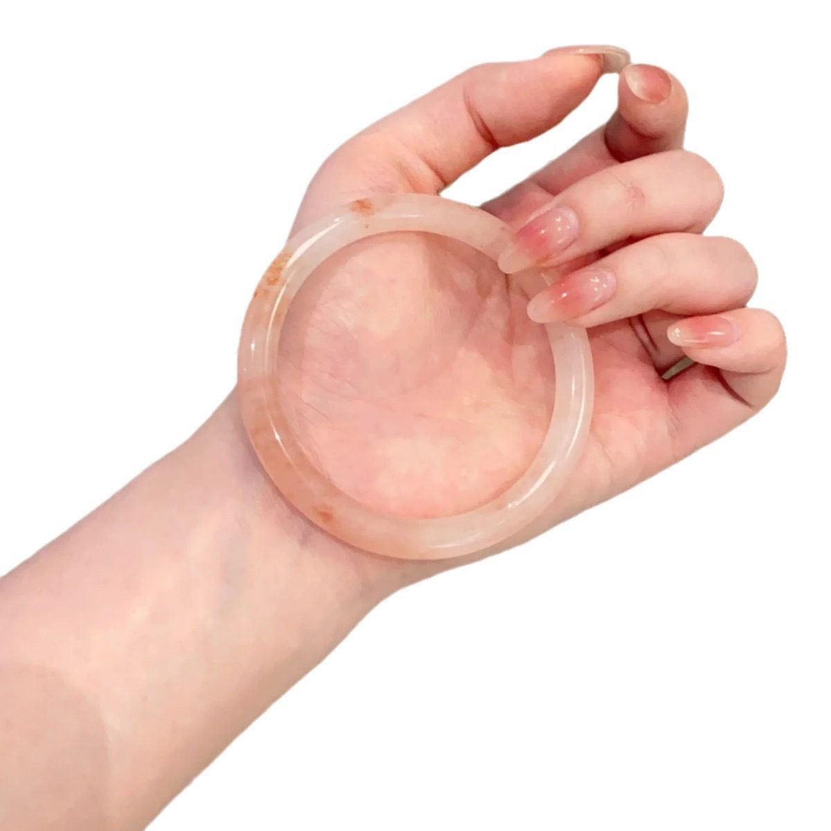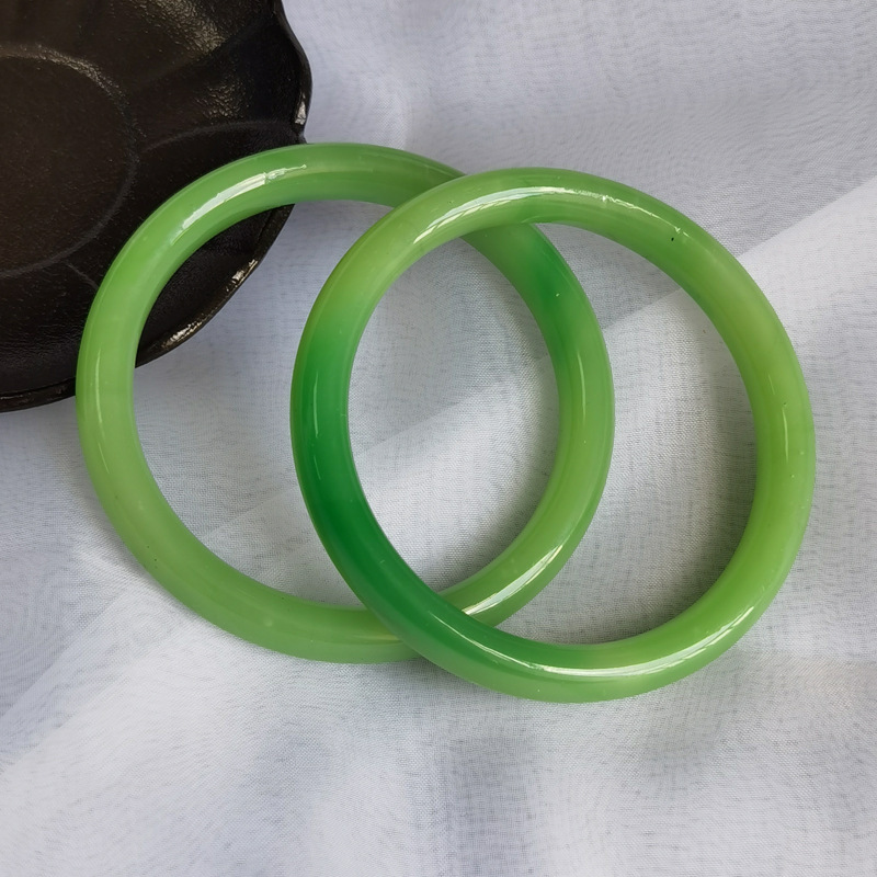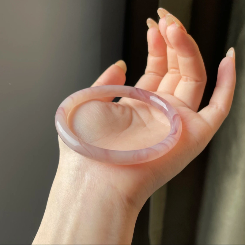 小红书仿玉镯同款叮当圆条粗款玻璃一步响叮当手镯镯闺蜜桃花酿