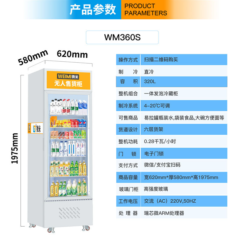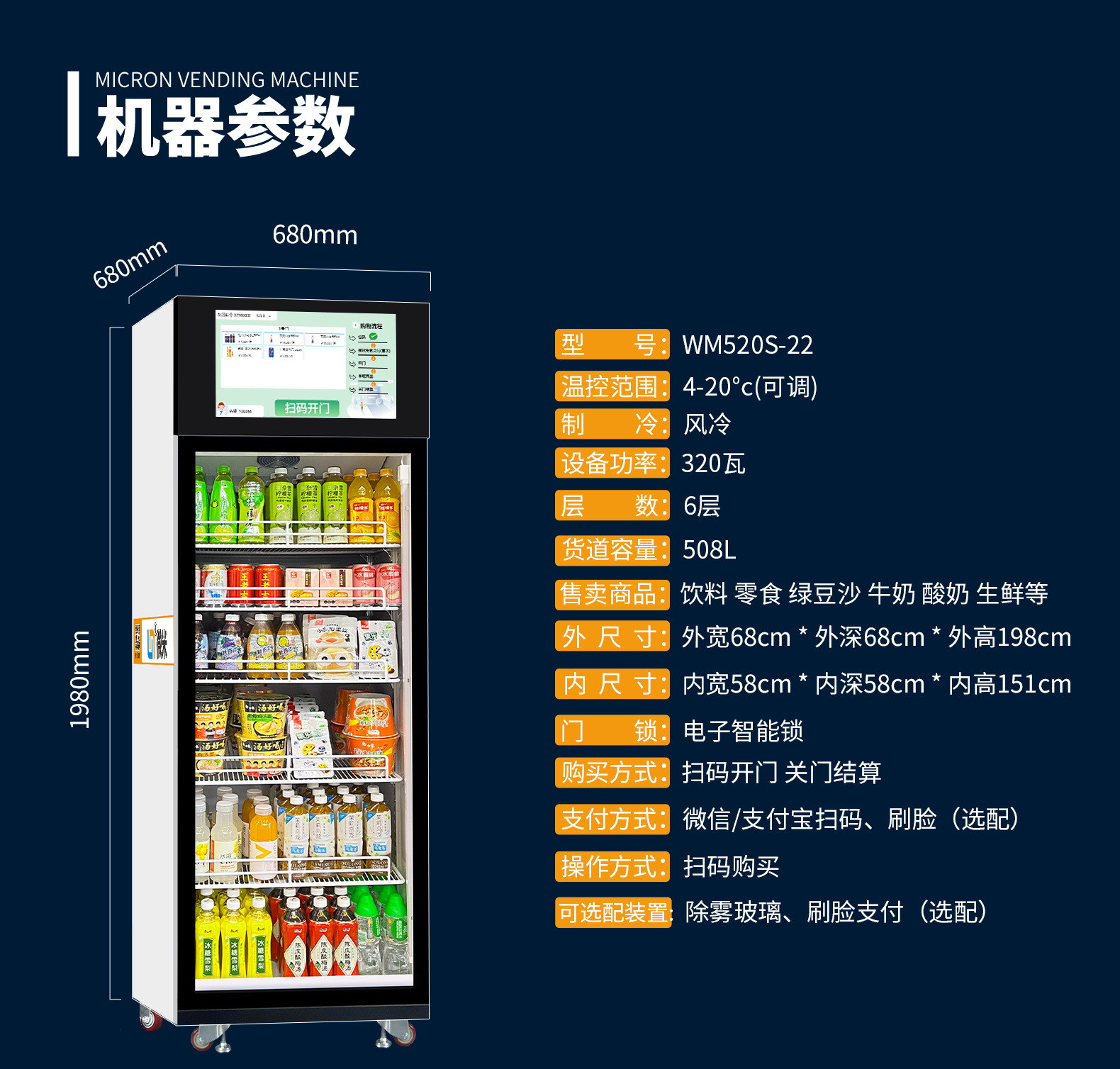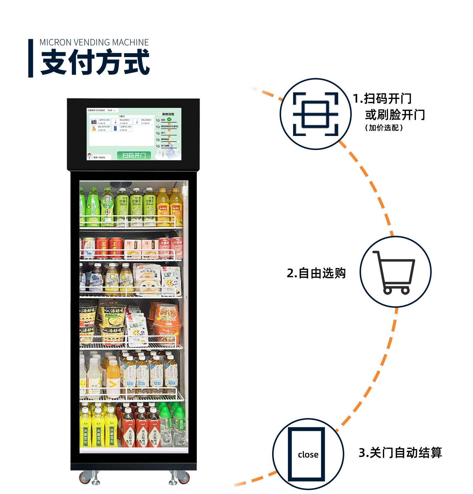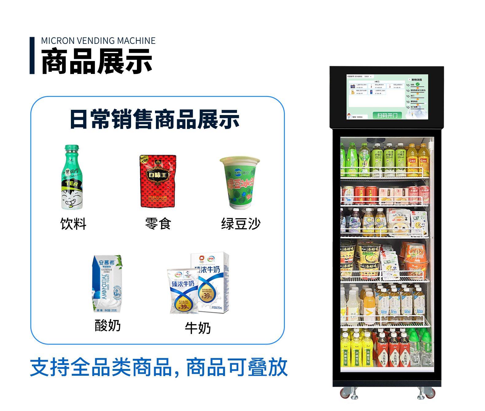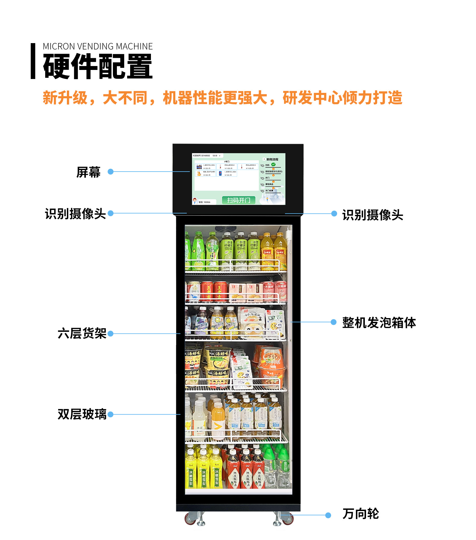 微米饮料自动售货机AI动态视觉柜带屏无人售卖机智能柜开门售货柜
