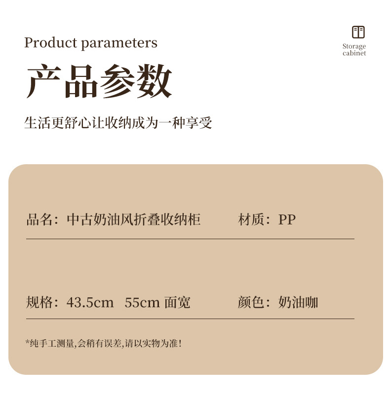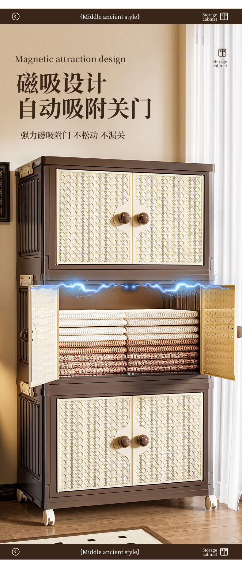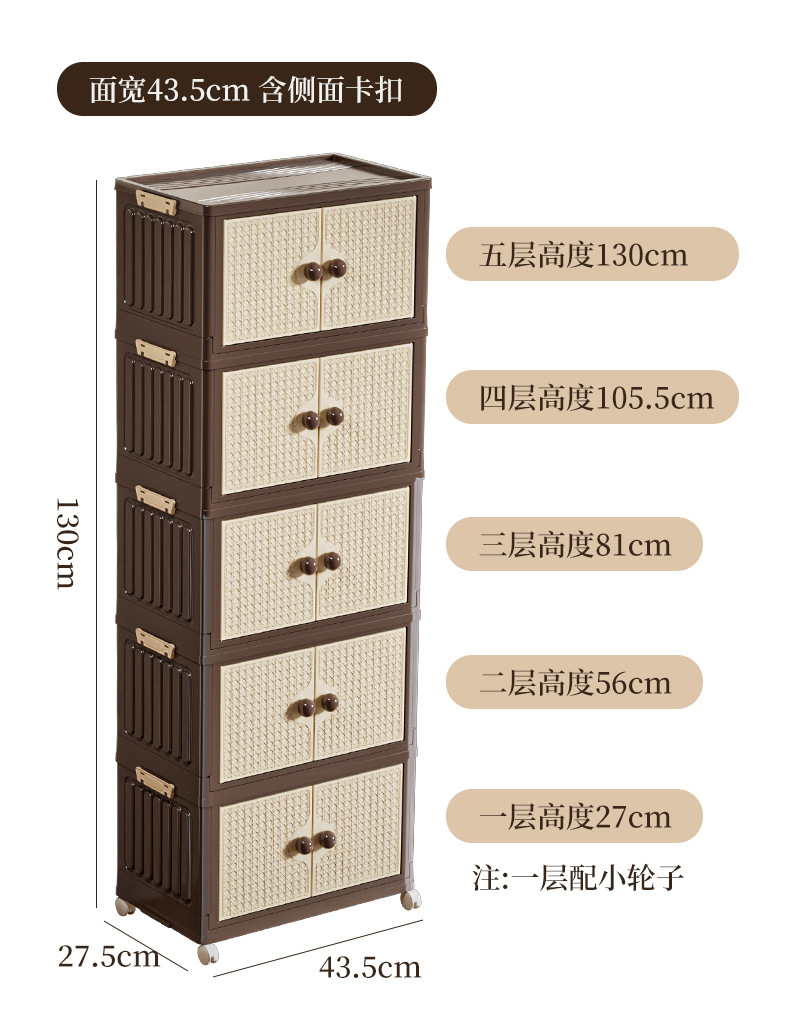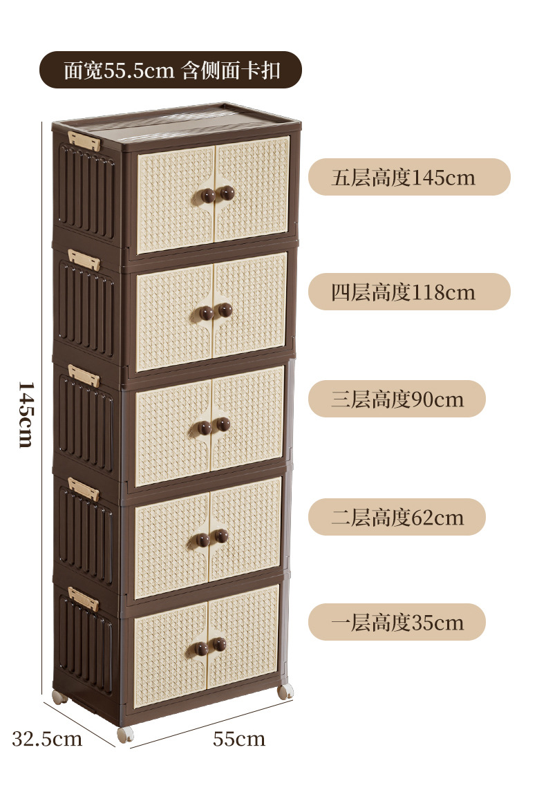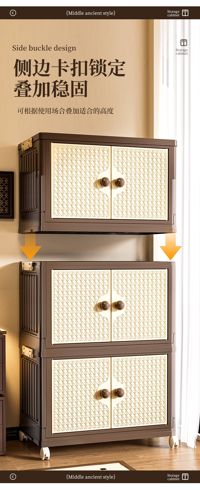 家用收纳柜可折叠带滑轮中古风置物柜大容量卧室多层可叠加储物柜