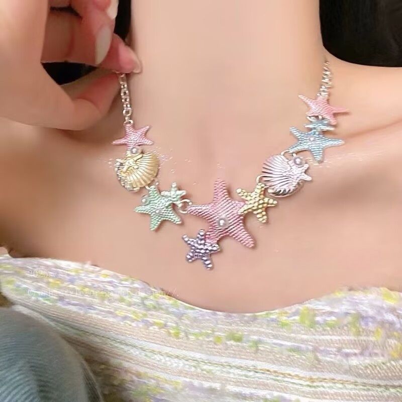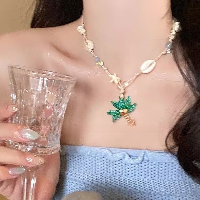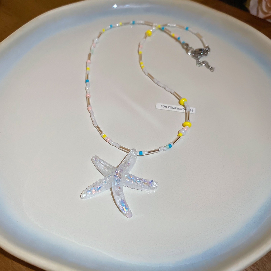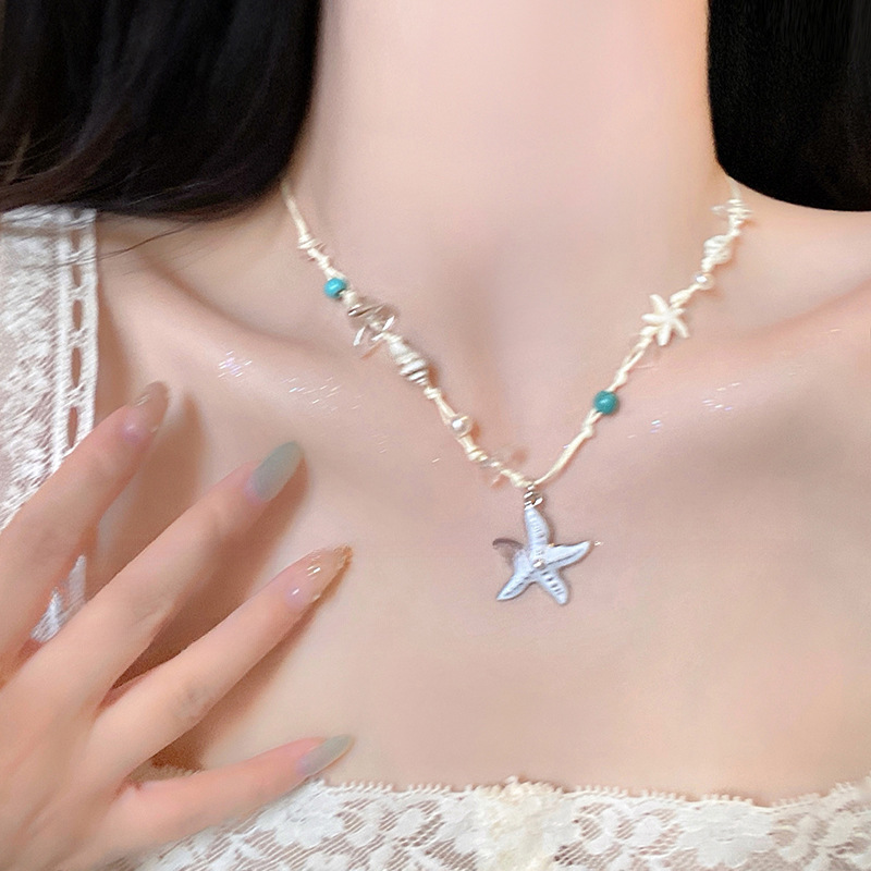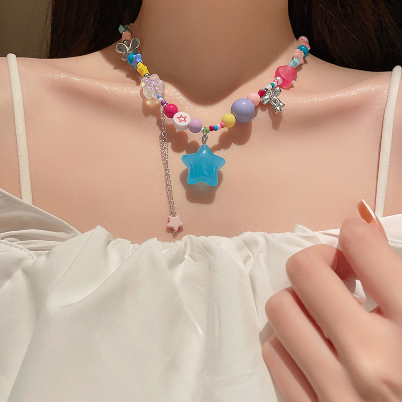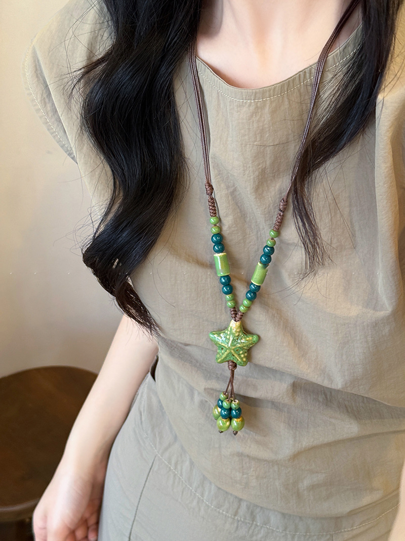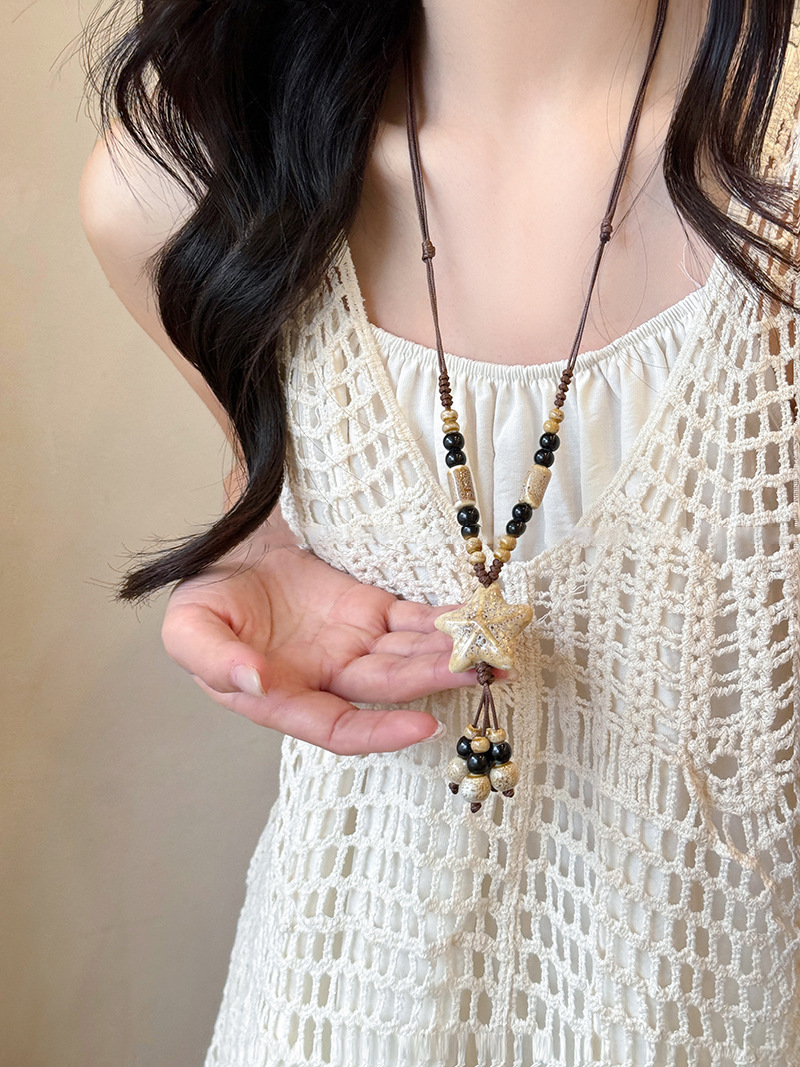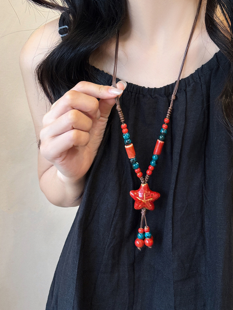 项链波西米亚复古锁骨链夏季度假风项饰陶瓷星星串珠流苏项链女
