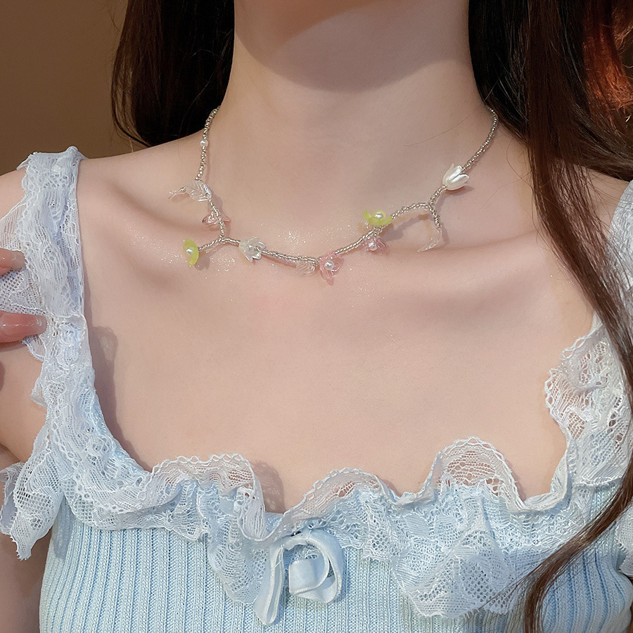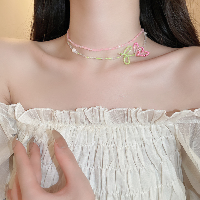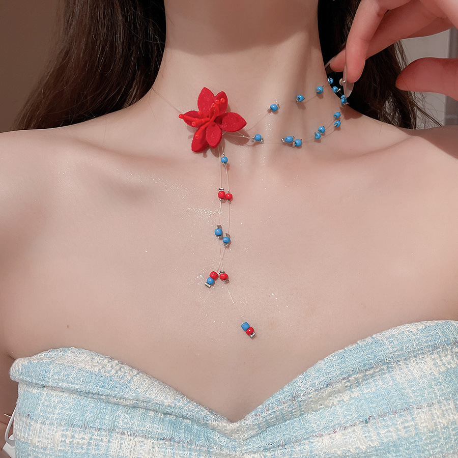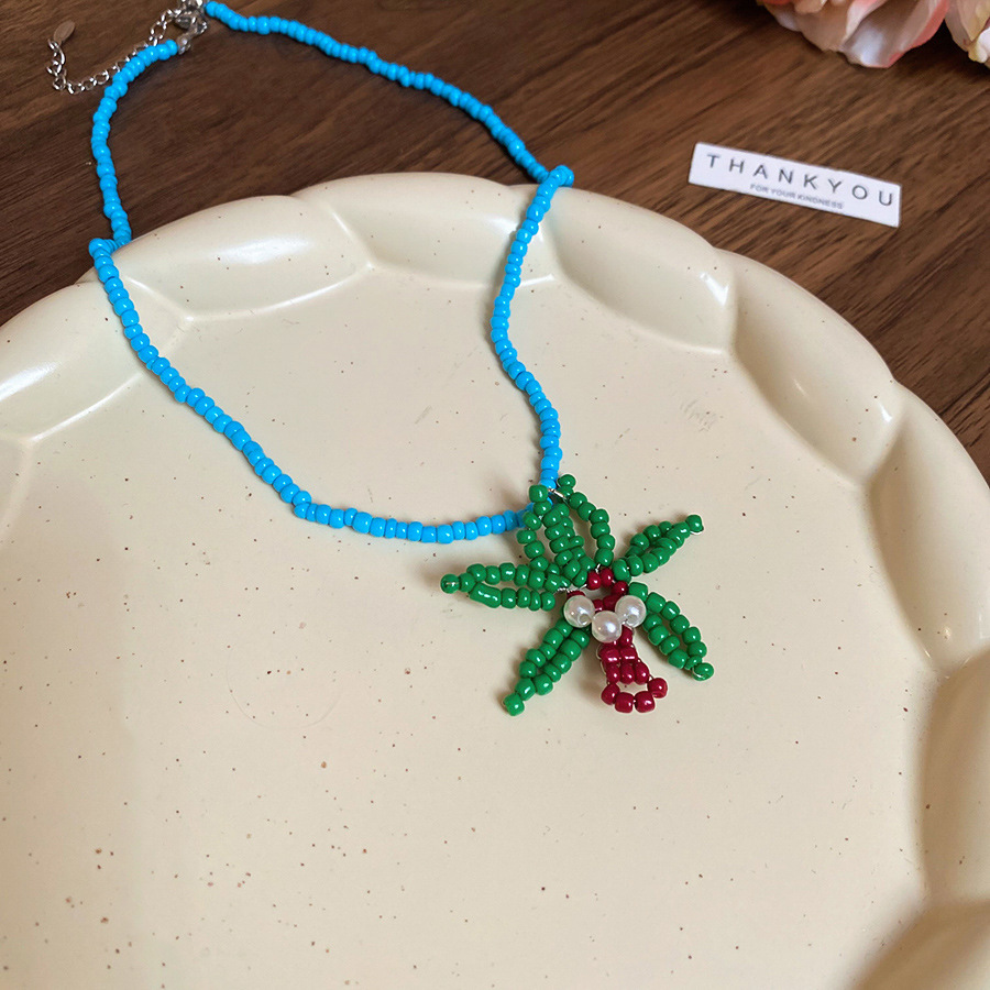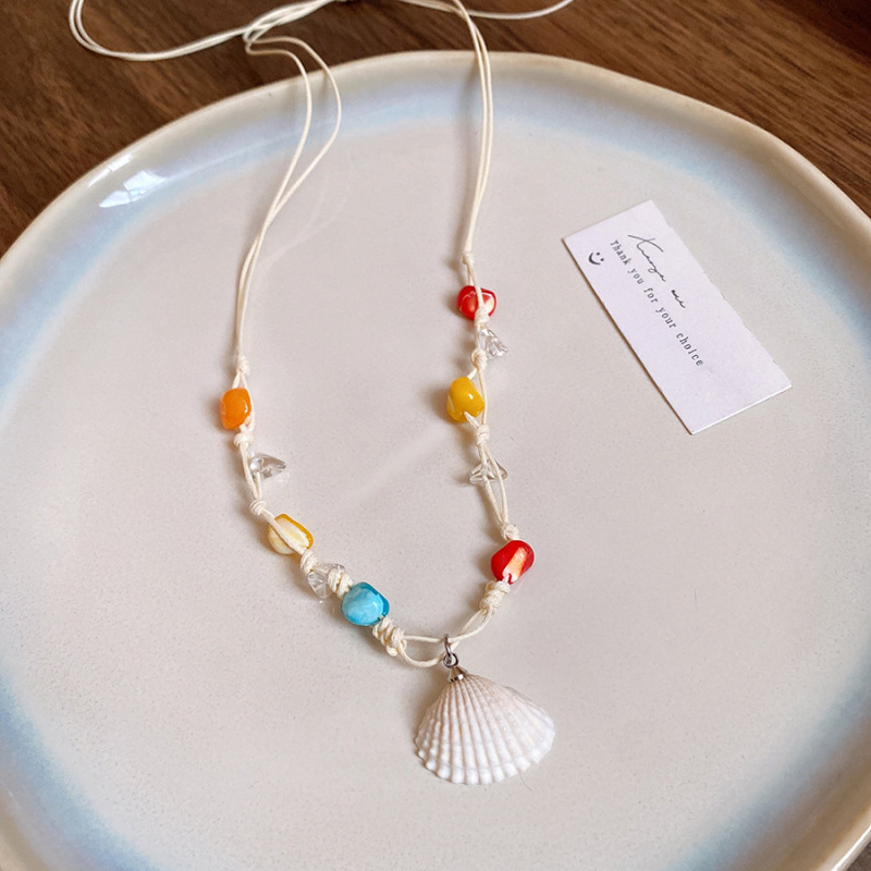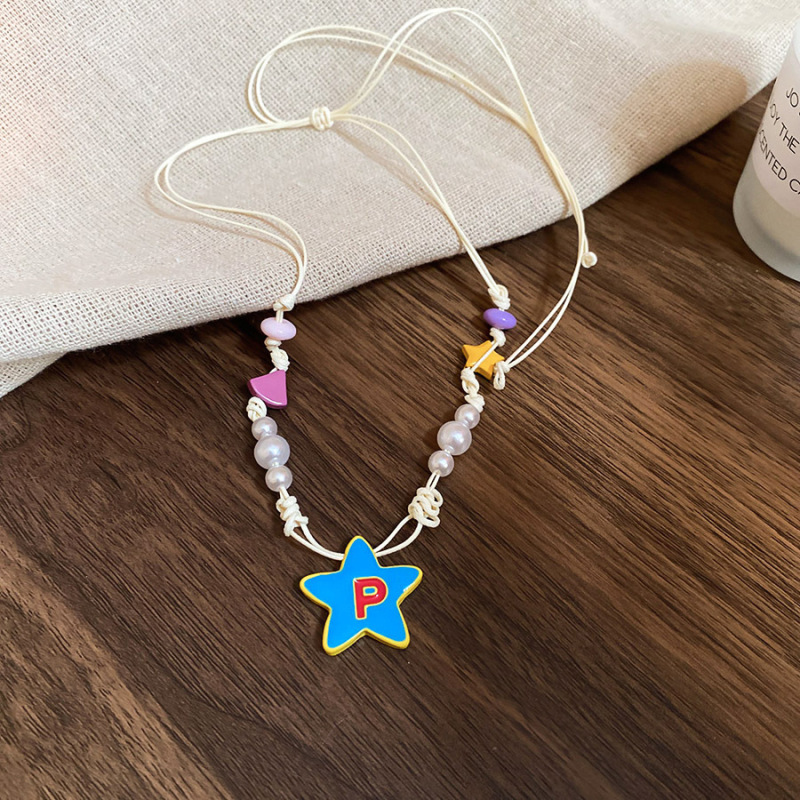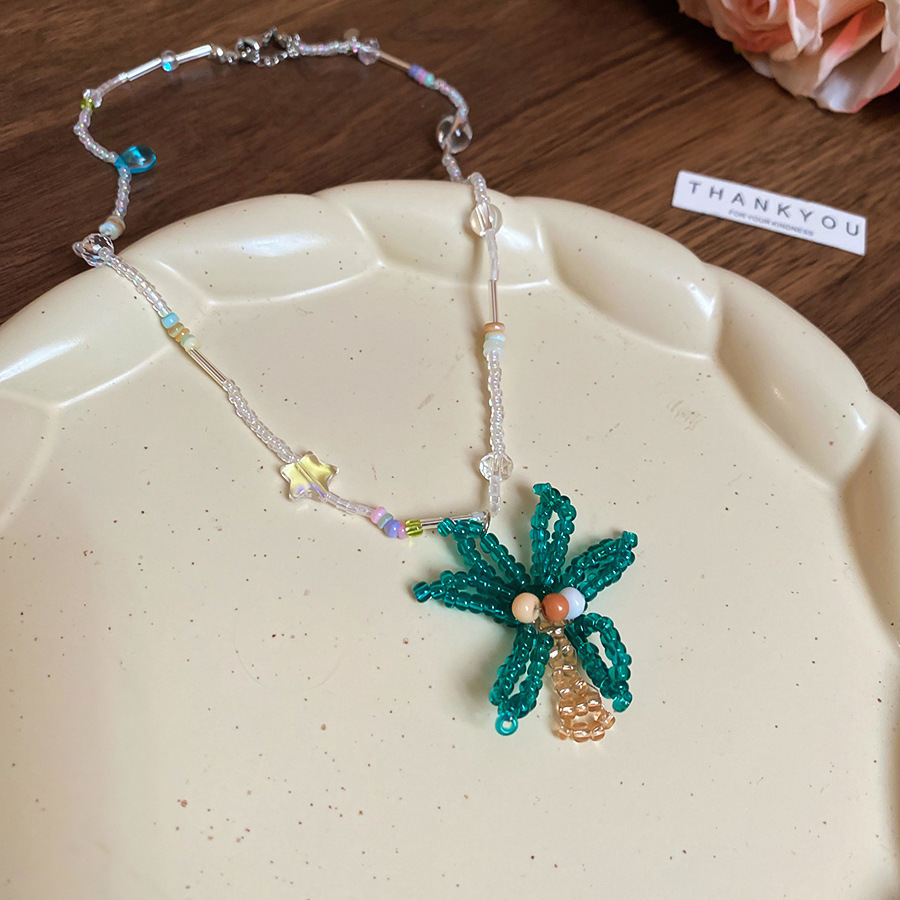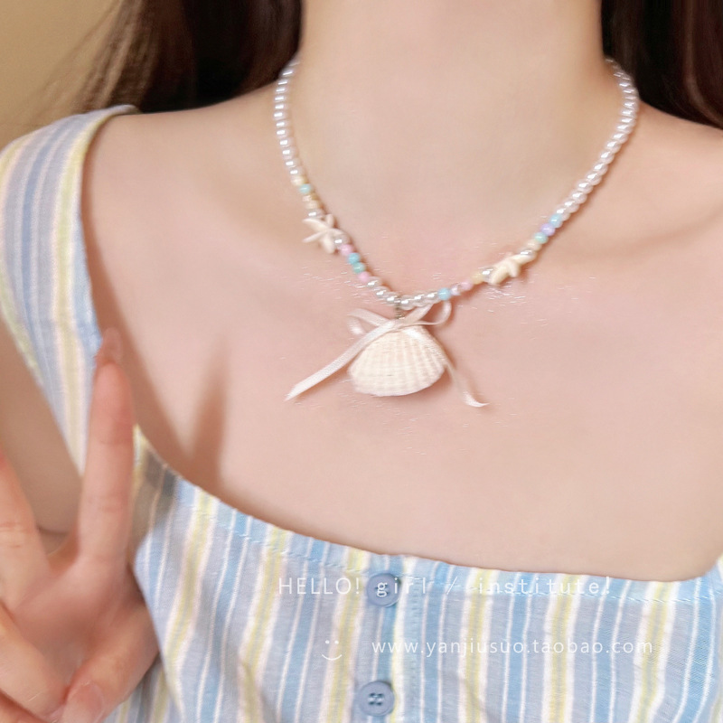 项链波西米亚复古锁骨链夏季度假风项饰陶瓷星星串珠流苏项链女