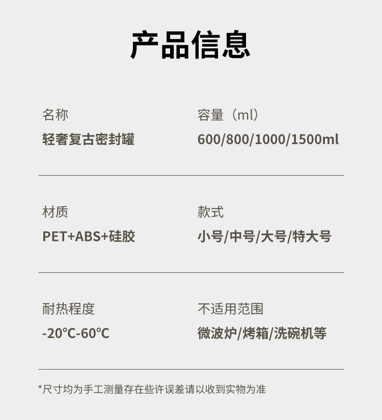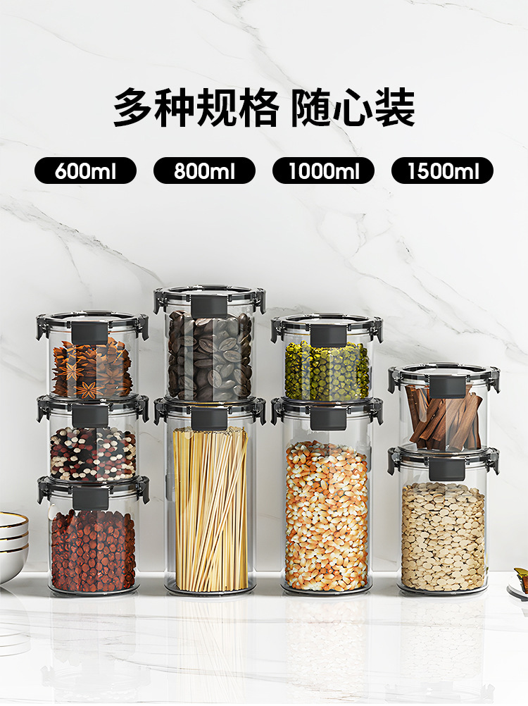 密封罐PET储物罐密封轻奢复古收纳罐食品香料储存无铅密封罐